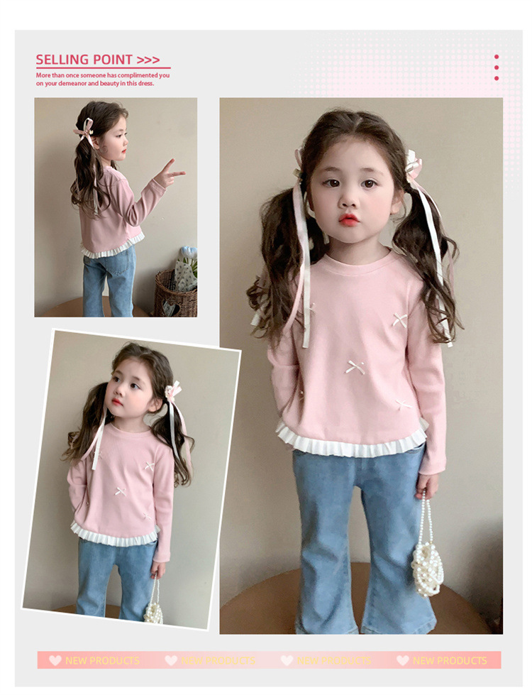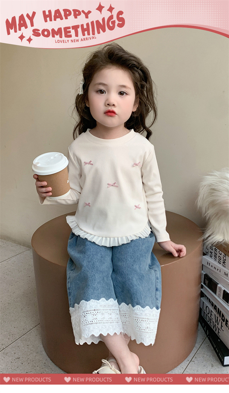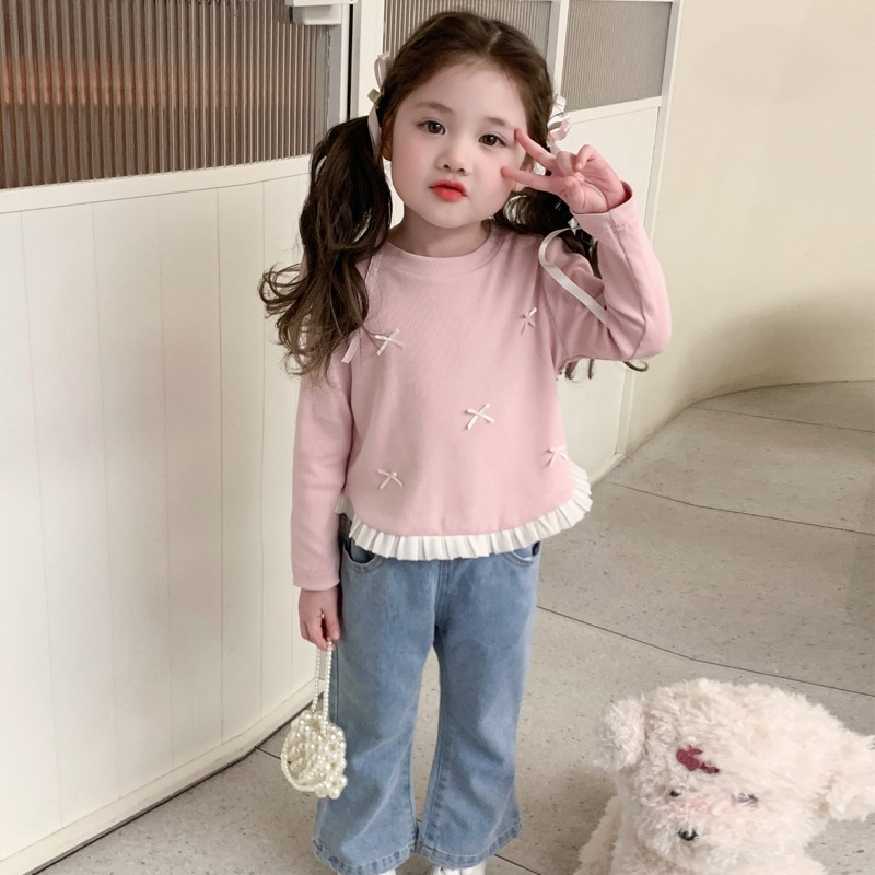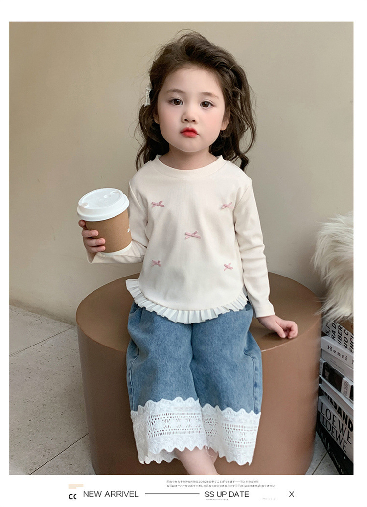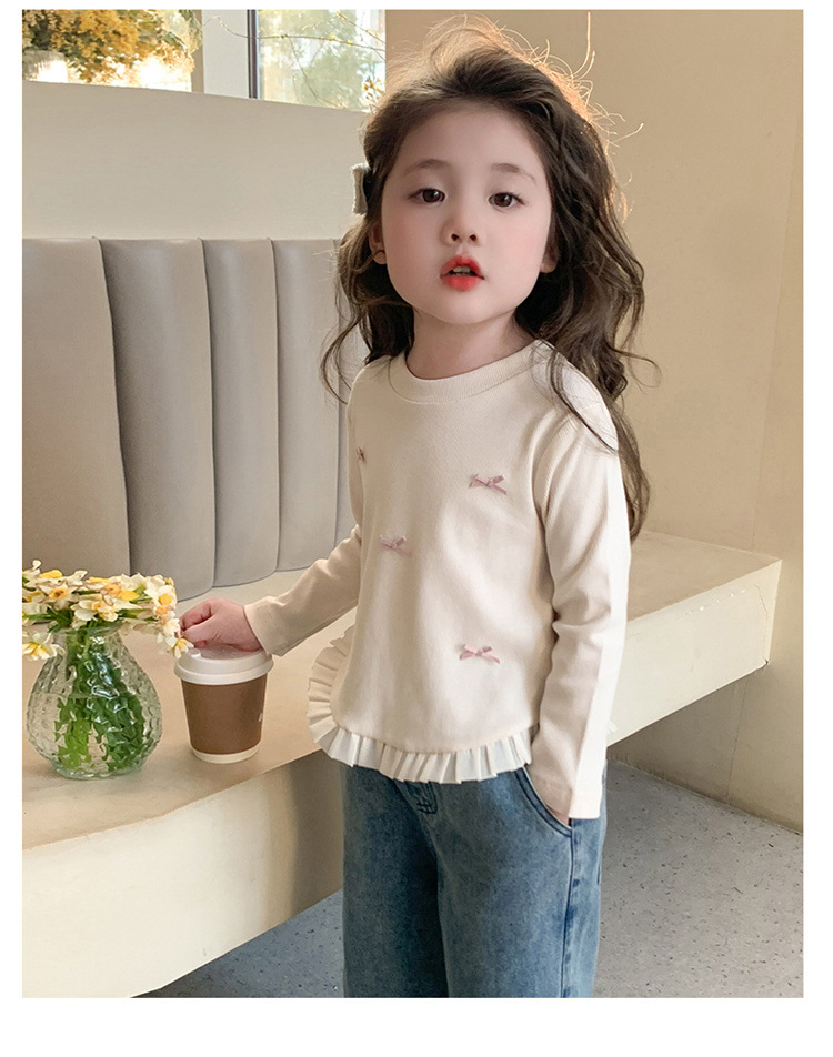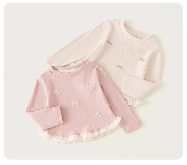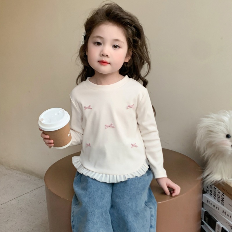 소녀 긴팔 티셔츠 봄과 가을 2025 새로운 스타일 아동베이스 셔츠 아기 소녀의 봄 레이스 탑스토어 가기