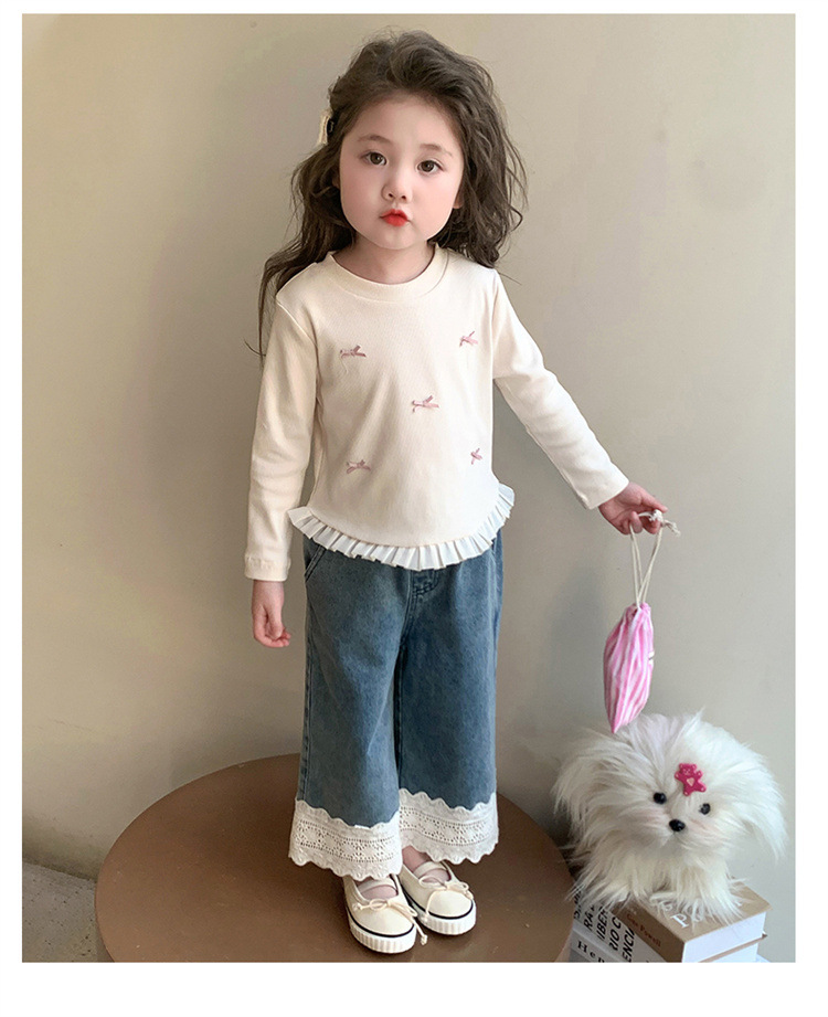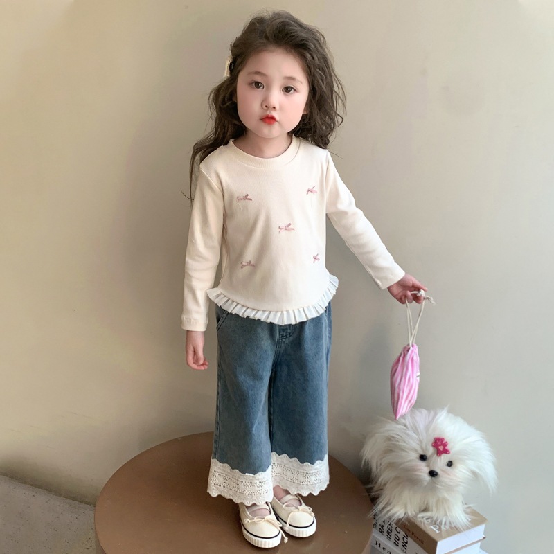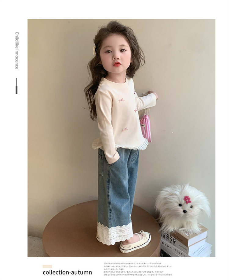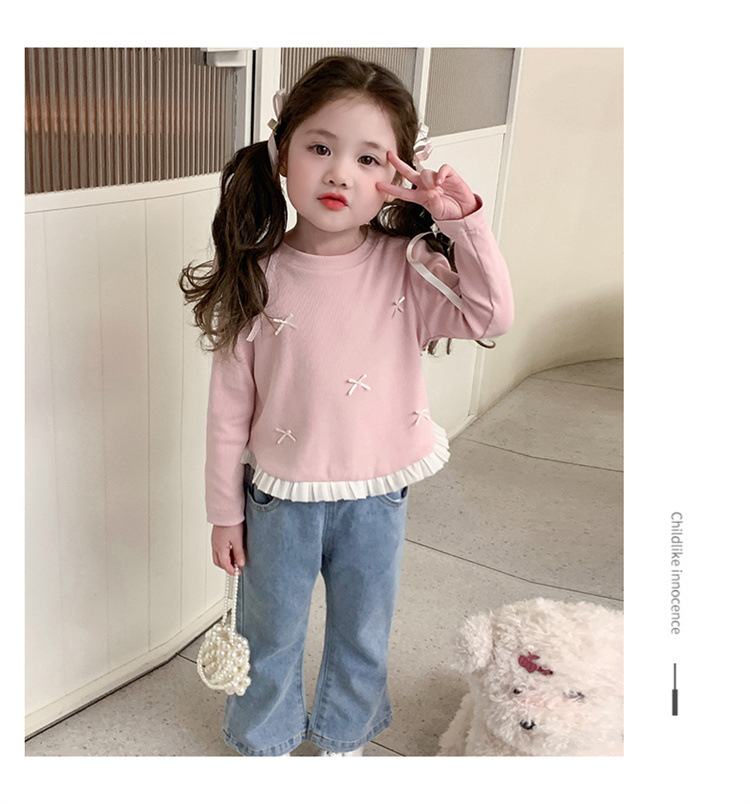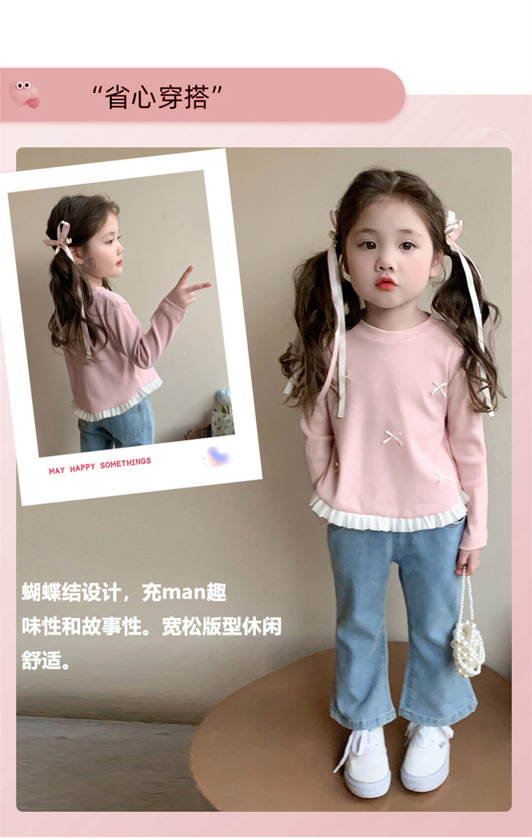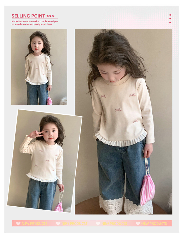 소녀 긴팔 티셔츠 봄과 가을 2025 새로운 스타일 아동베이스 셔츠 아기 소녀의 봄 레이스 탑스토어 가기