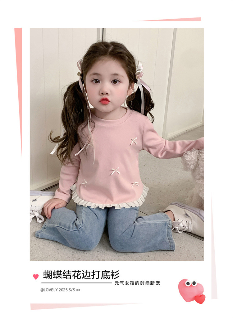 소녀 긴팔 티셔츠 봄과 가을 2025 새로운 스타일 아동베이스 셔츠 아기 소녀의 봄 레이스 탑