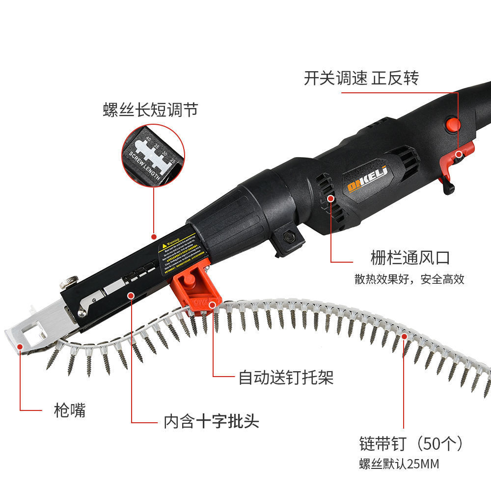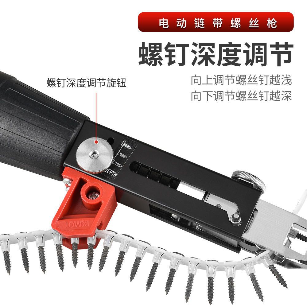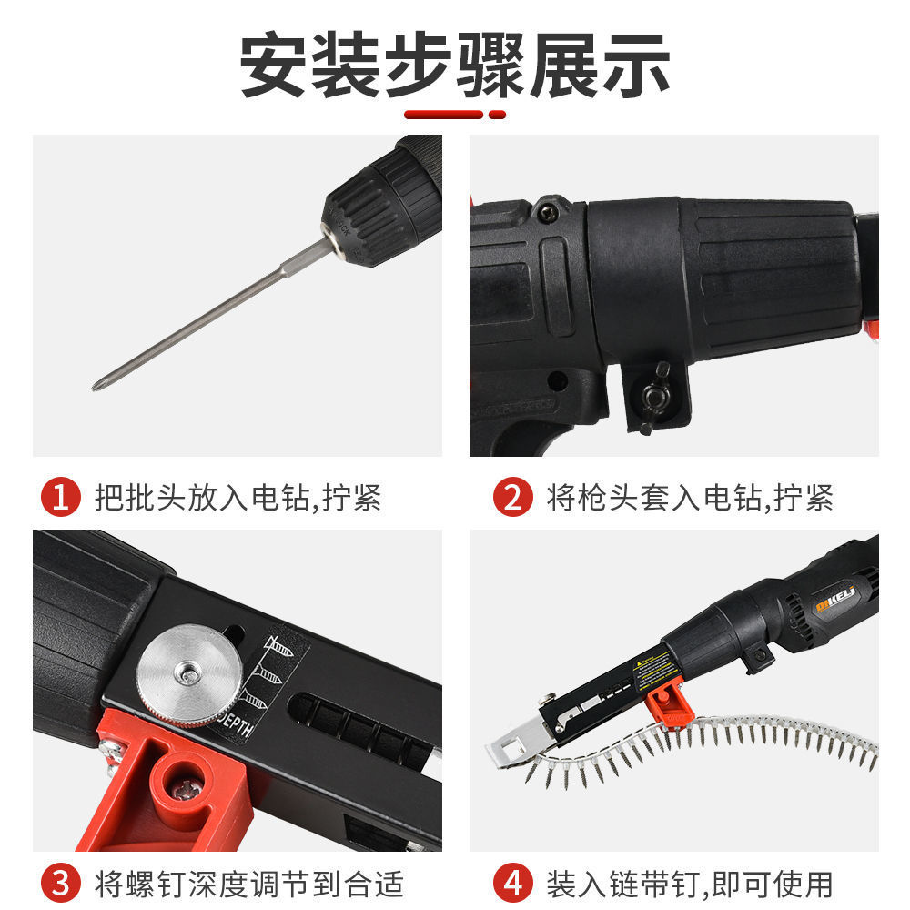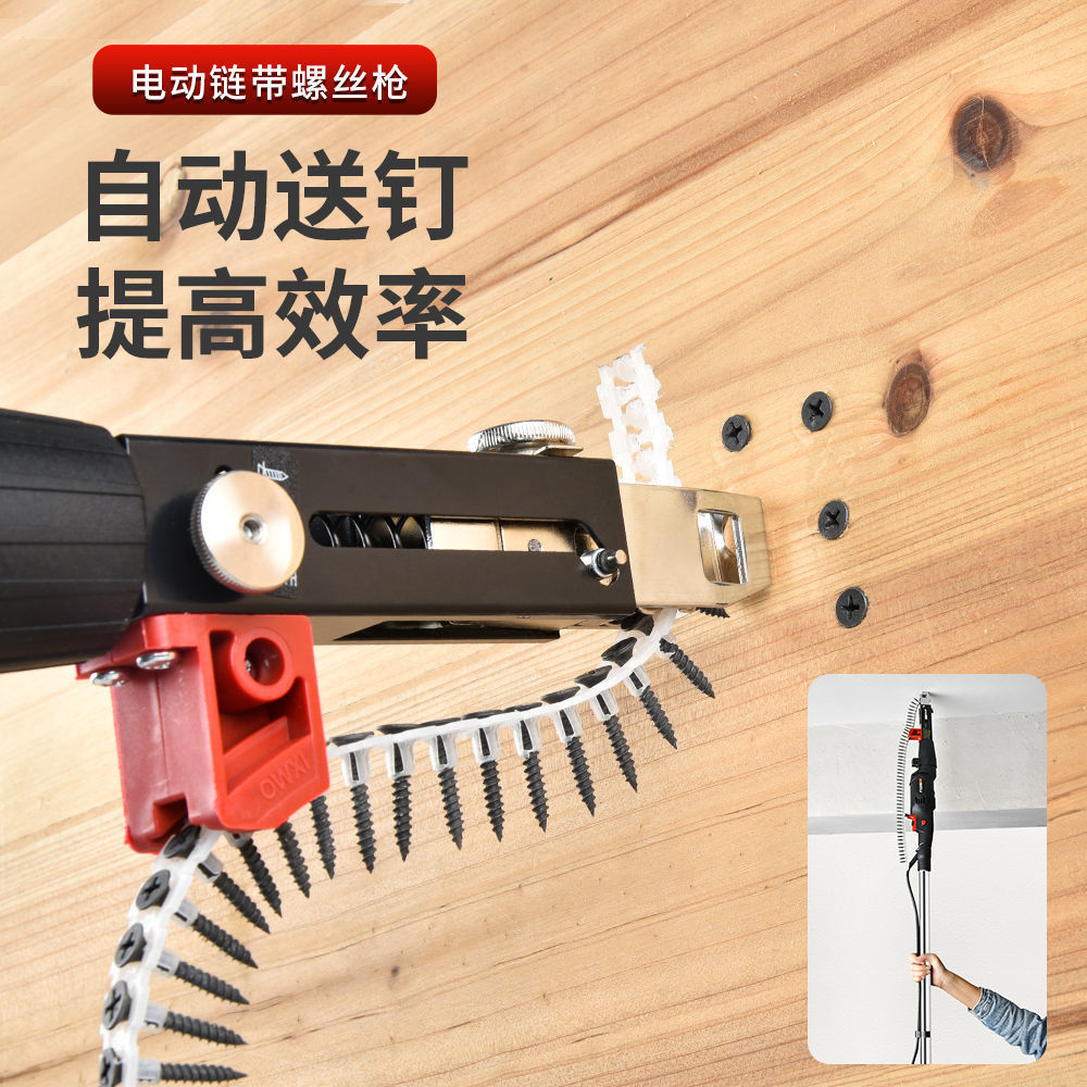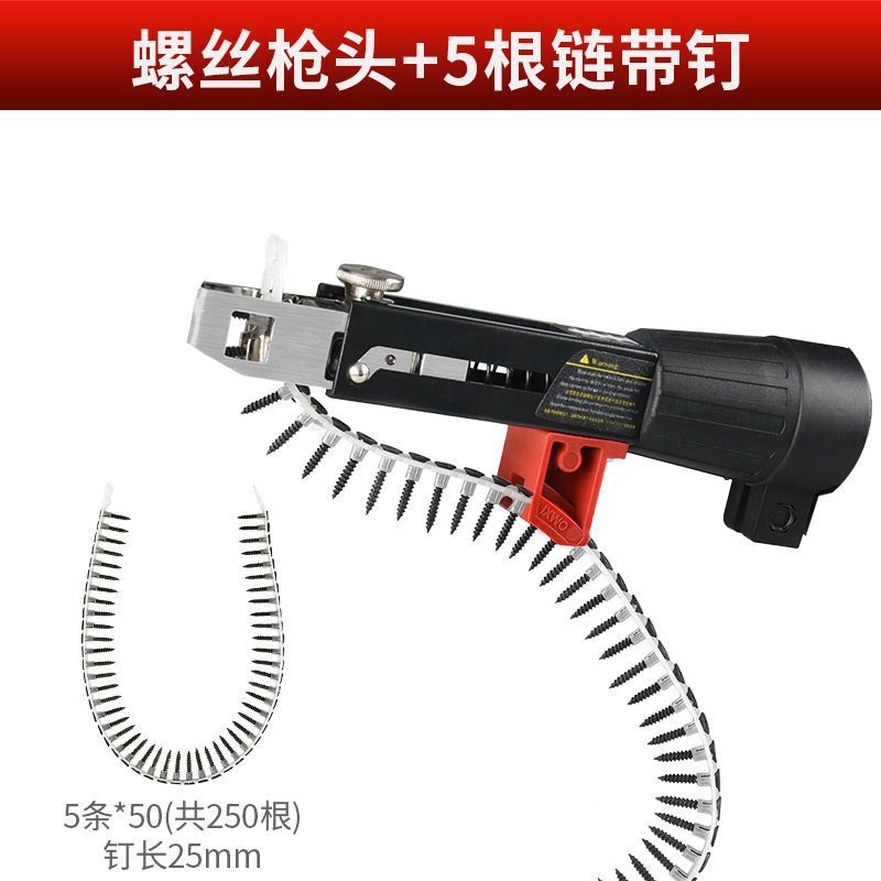 스크류 건 헤드 자동 네일 건 전기 배치 목공 장식 충전식 석고 보드 셀프 태핑 배치 헤드가있는 체인