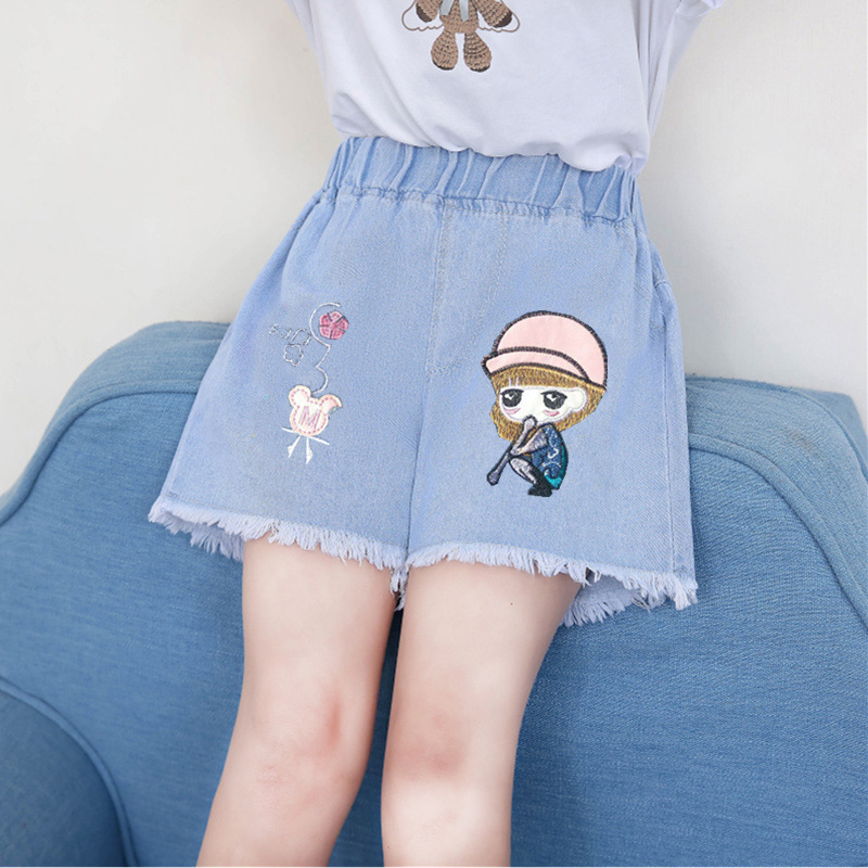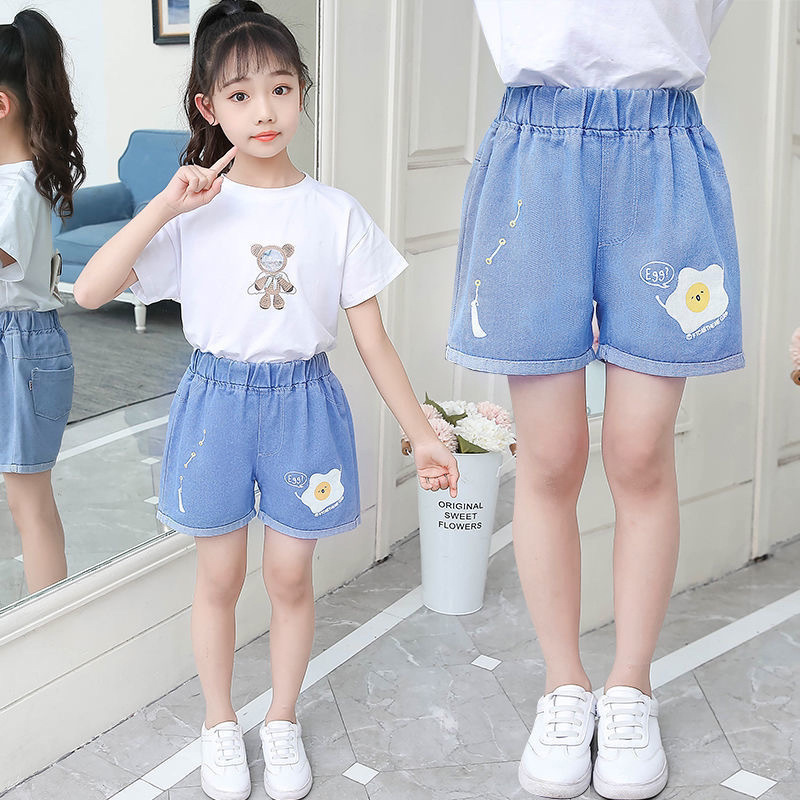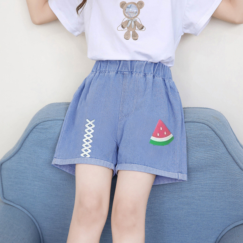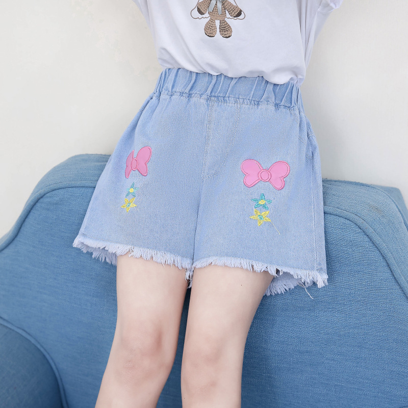 재고 있음 아동복 도매 여아 반바지 여름 중대형 아동 스타일 얇은 한국식 어린 소녀 베이비 데님 반바지스토어 가기