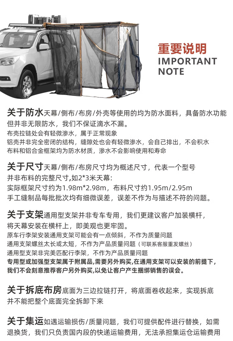 • 2*2m 측면 차양 천 2개(캐노피 제외)