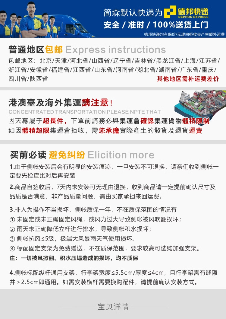 • 2*2m 측면 차양 천 1개(캐노피 제외)