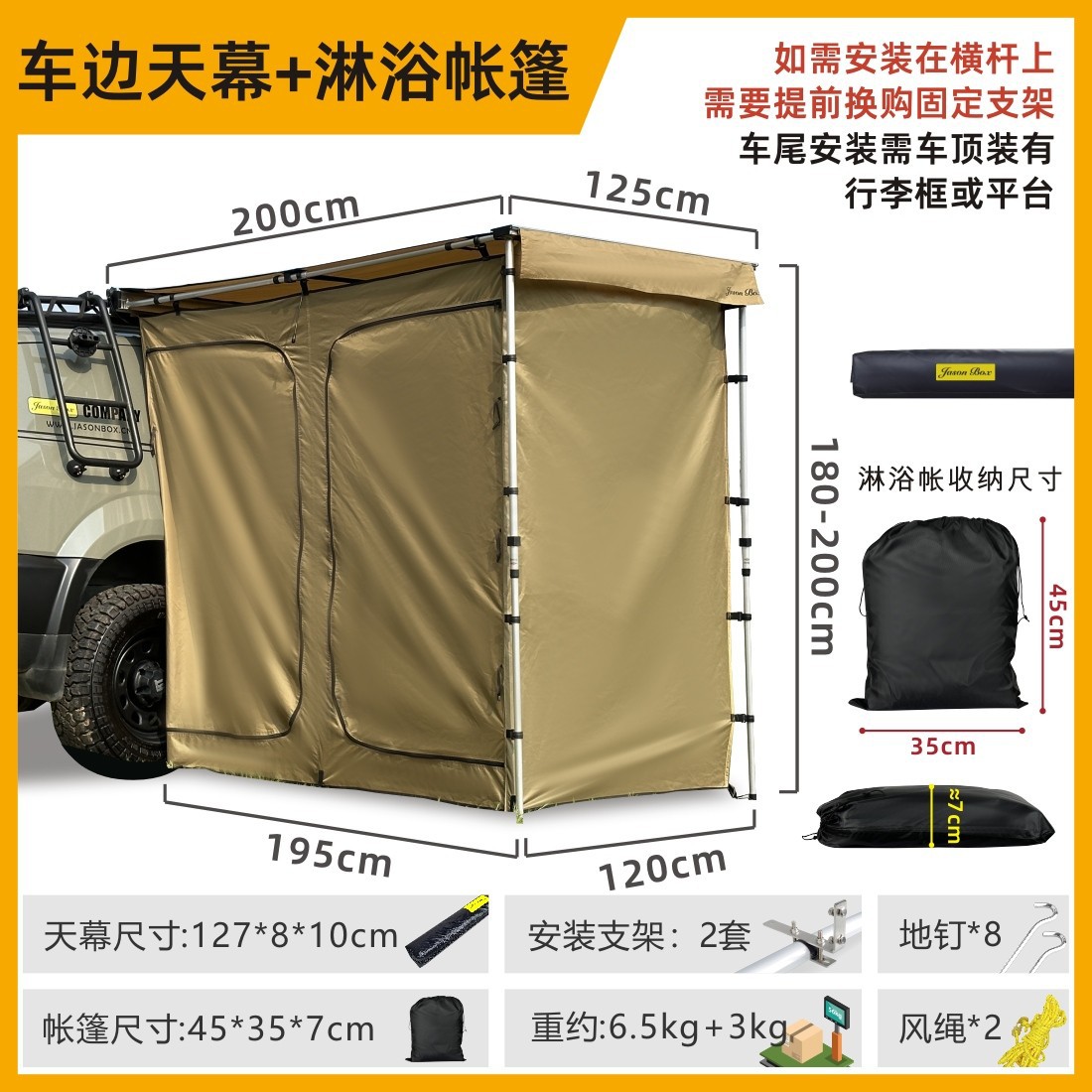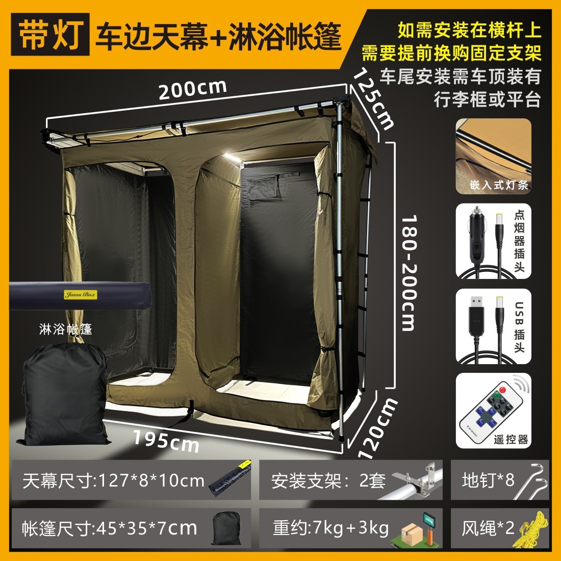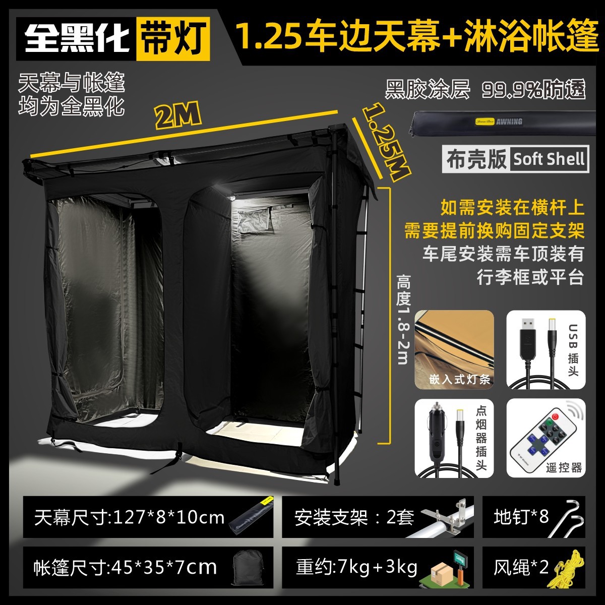 • [조명으로 올블랙] 1.25 자동차 사이드 캐노피 + 샤워텐트