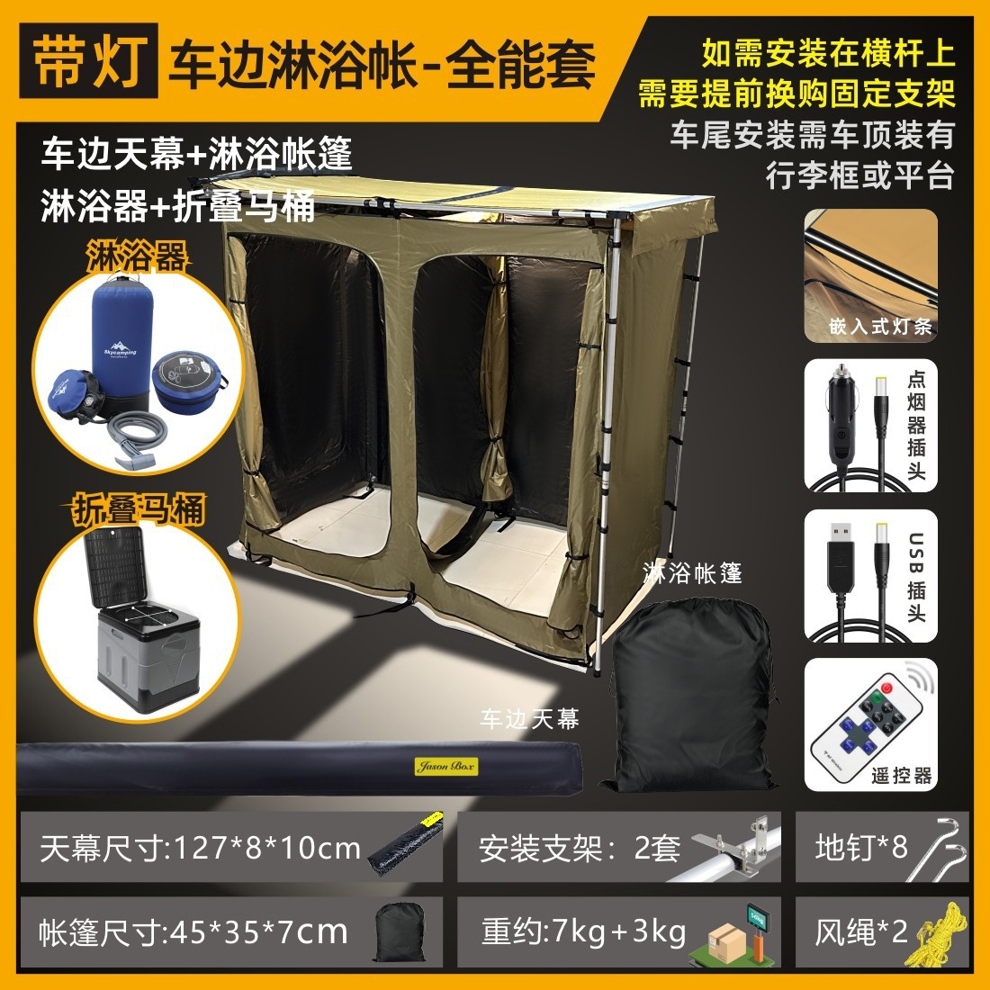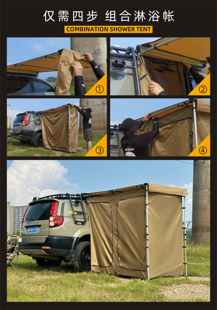 Jensen 야외 자동차 사이드 샤워 계정 자동차 스카이 커튼 사이드 텐트 캠핑 화장실 습식 및 드라이 드레싱 룸 욕조 화장실