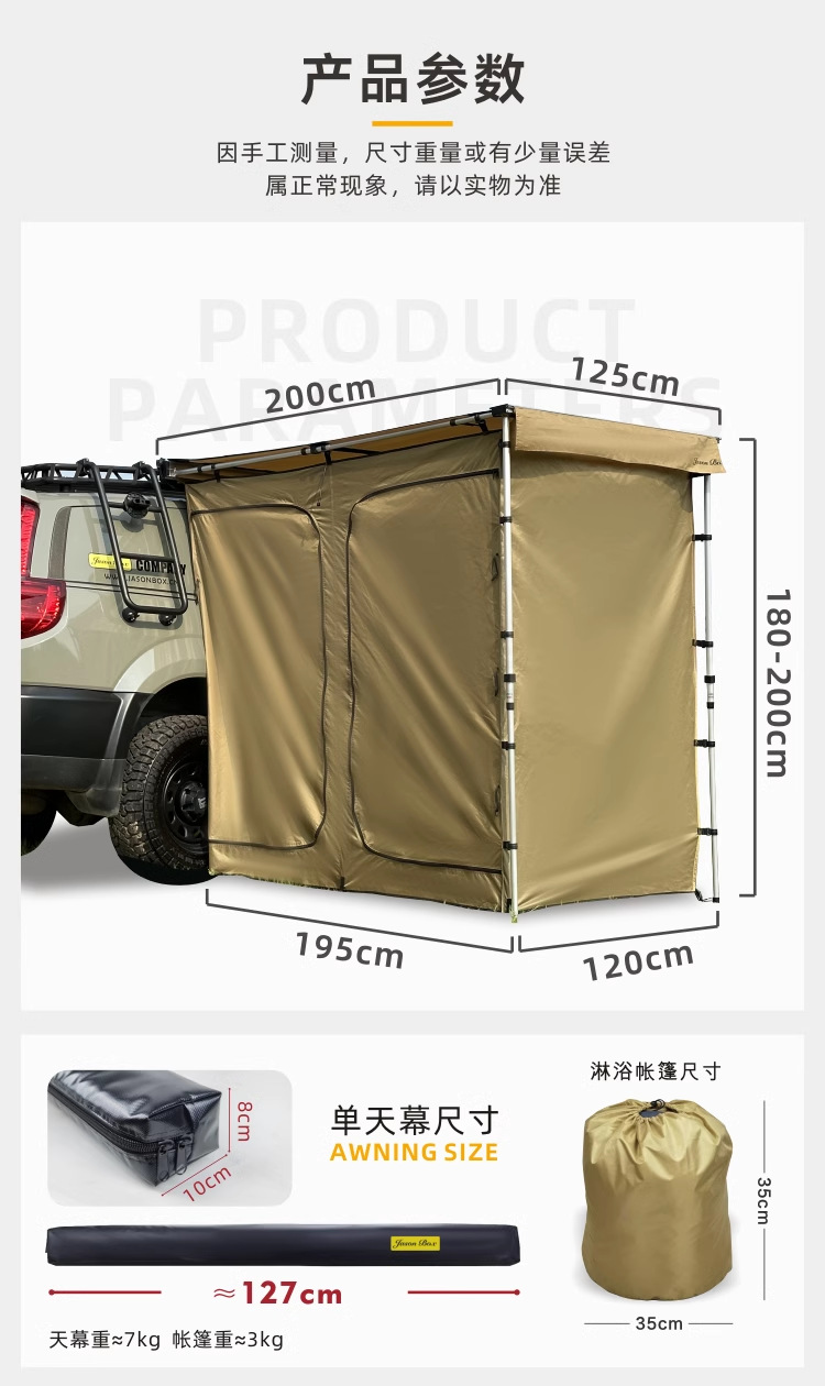 Jensen 야외 자동차 사이드 샤워 계정 자동차 스카이 커튼 사이드 텐트 캠핑 화장실 습식 및 드라이 드레싱 룸 욕조 화장실스토어 가기
