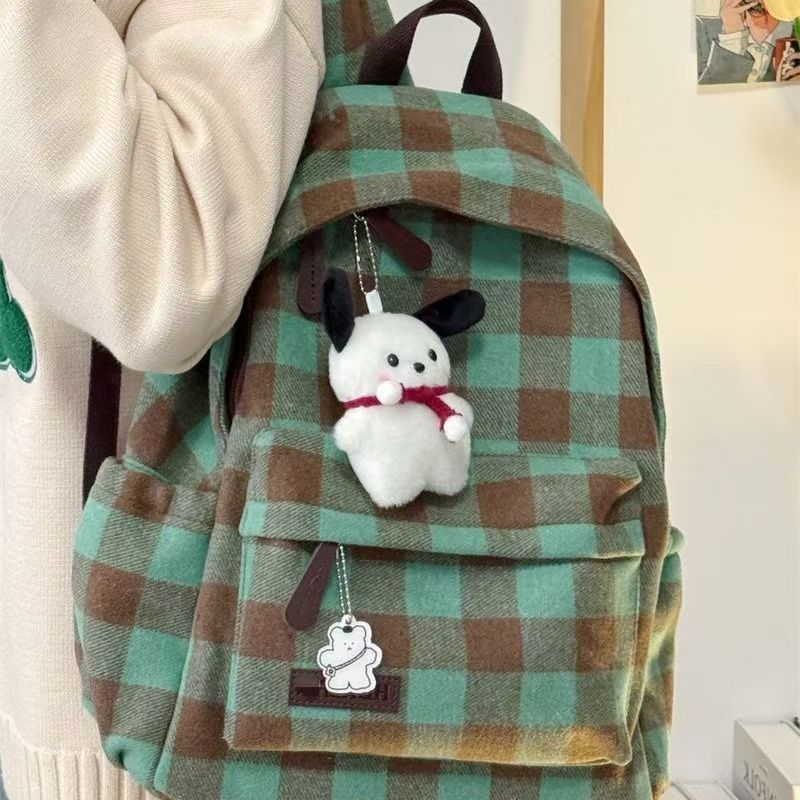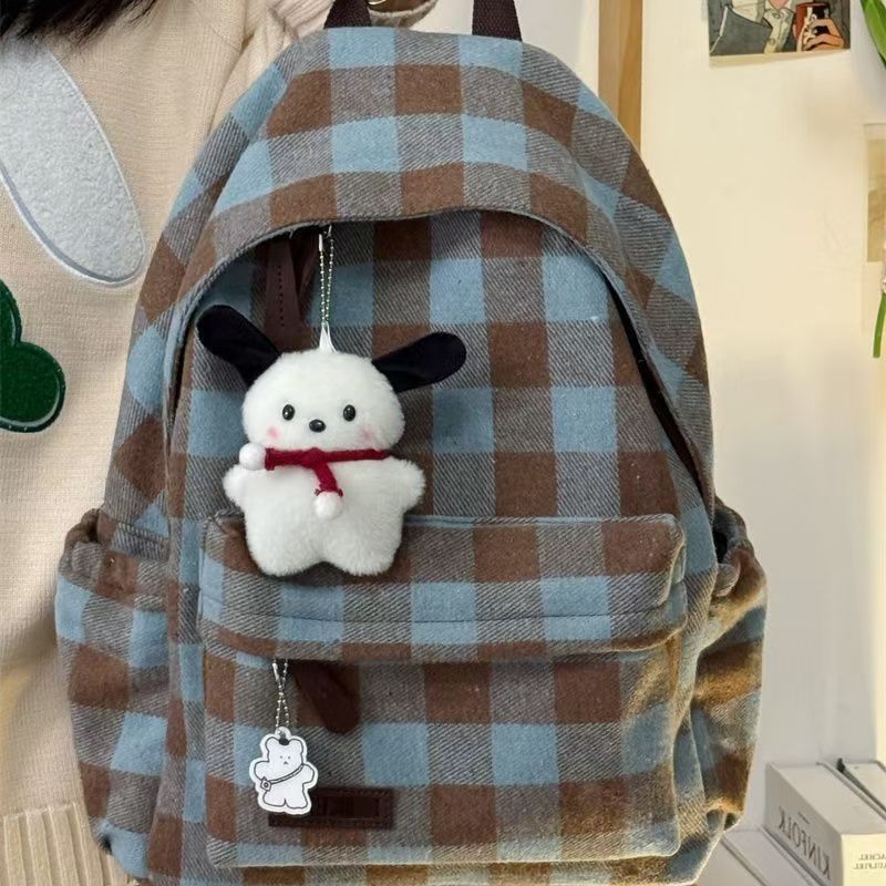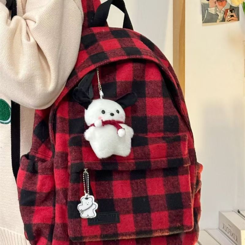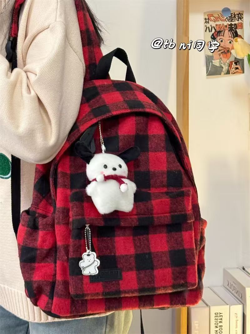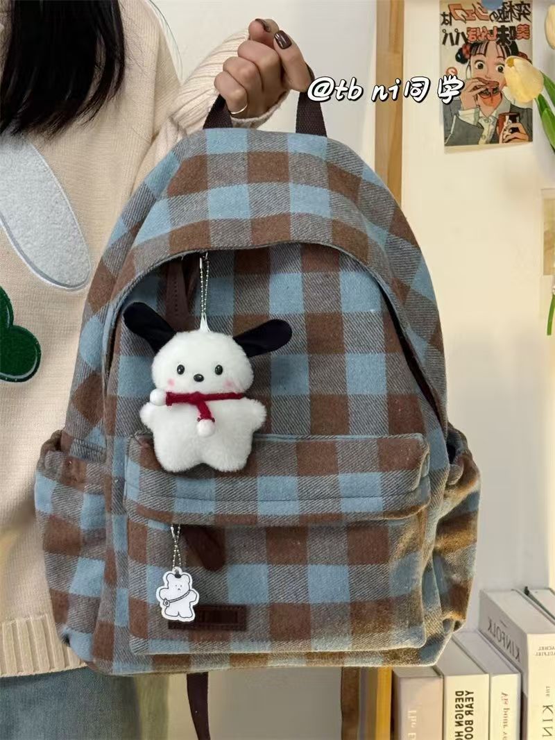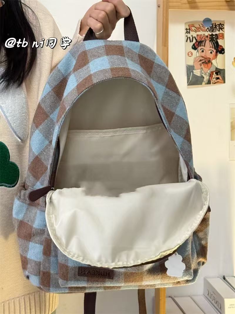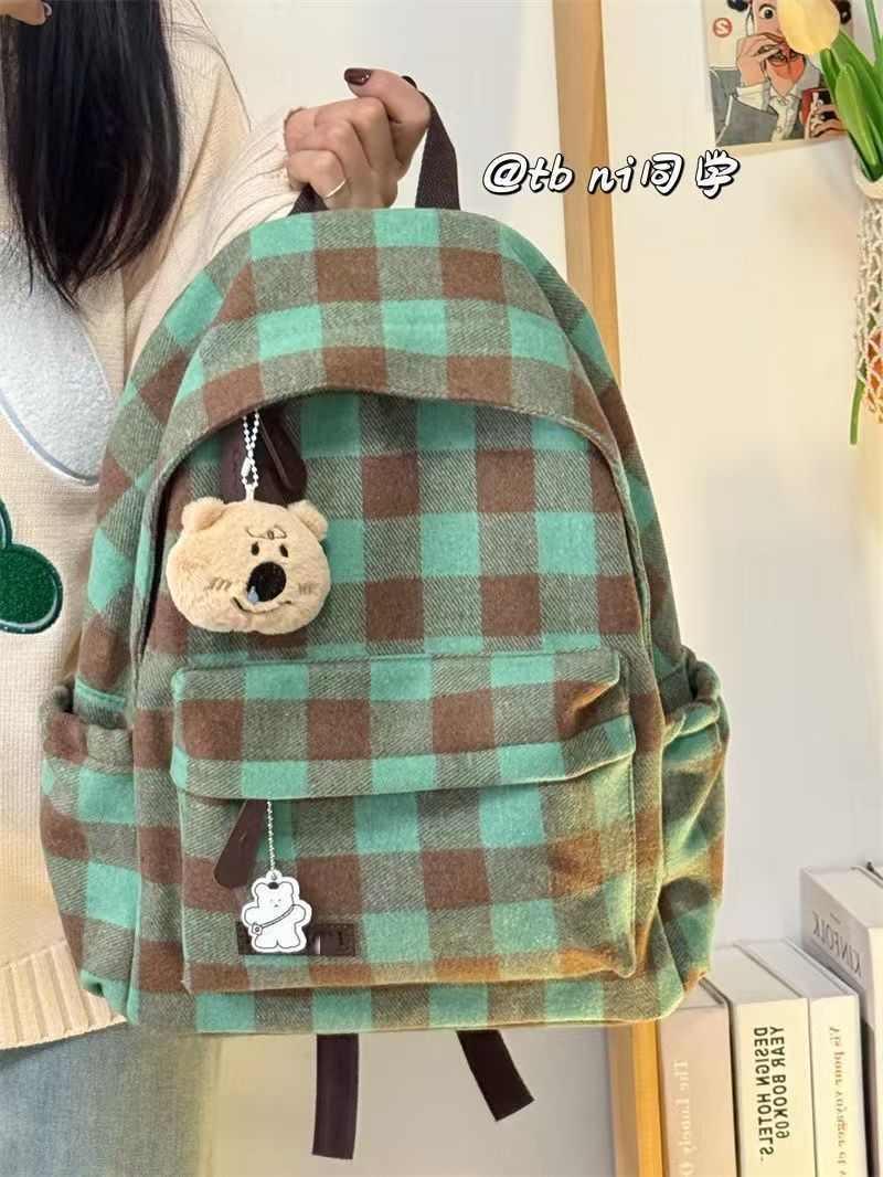 2024年冬季格子帆布背包女中学生初中生双肩包大学生简约可爱书包