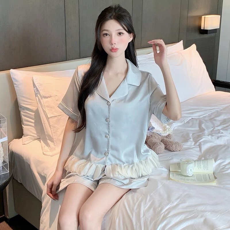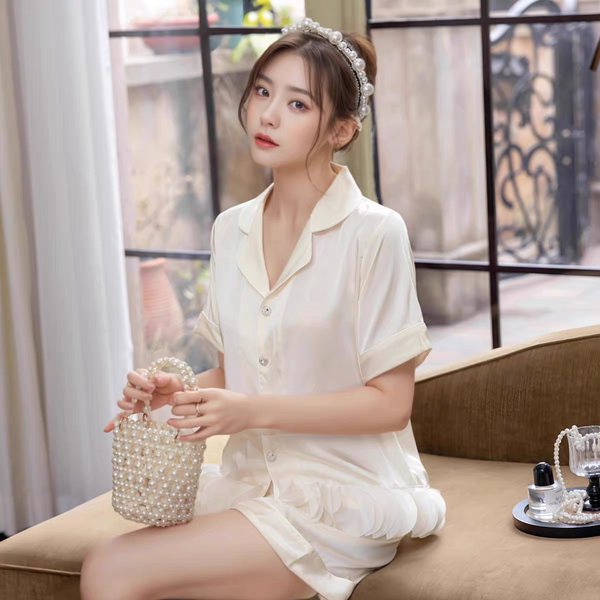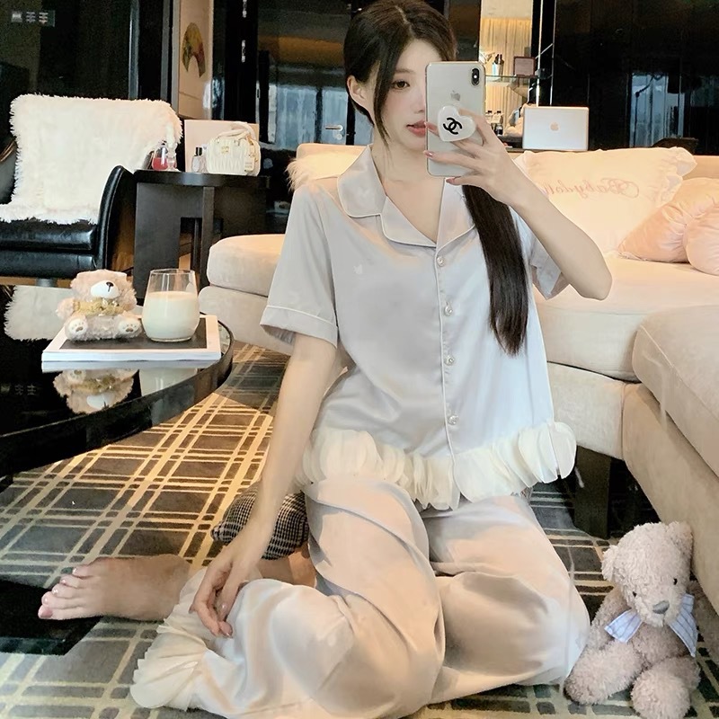 [샹들라] 25 봄 새 프랑스 아이스 실크 파자마 여성 러플 순수 분위기 고급 홈 옷스토어 가기
