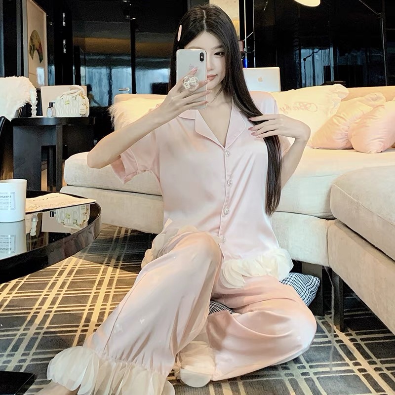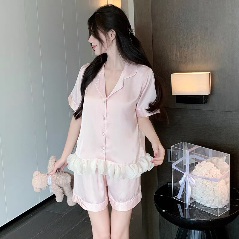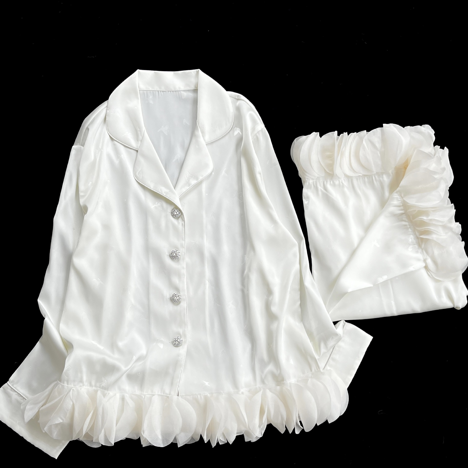[샹들라] 25 봄 새 프랑스 아이스 실크 파자마 여성 러플 순수 분위기 고급 홈 옷