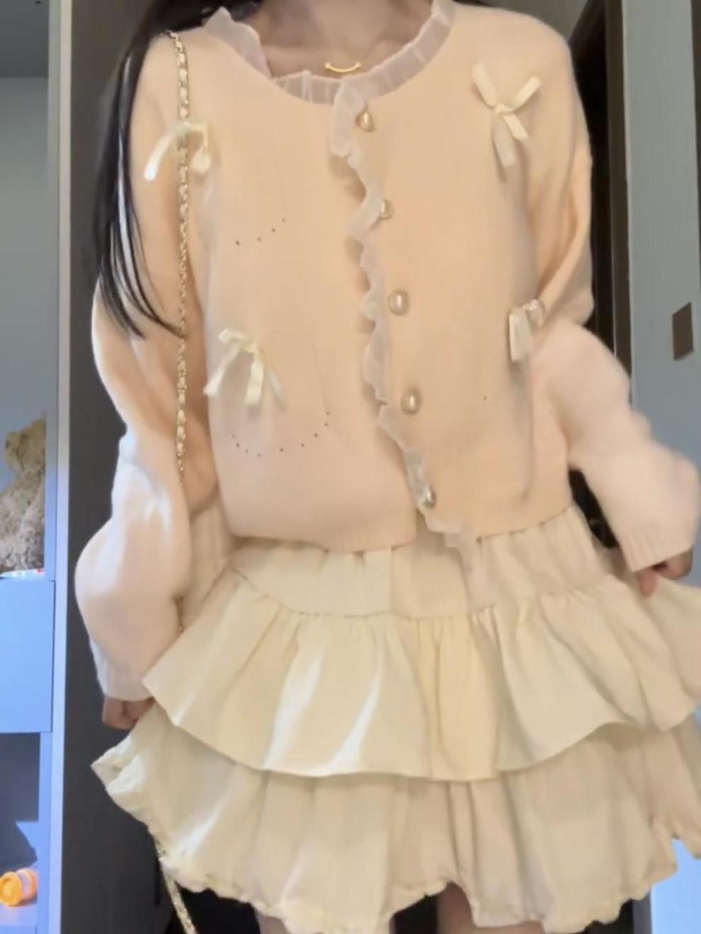 달콤한 핑크 레이스 바느질 스웨터 카디건 여성의 이른 봄 가을과 겨울 활 느슨한 니트 작은 착용스토어 가기