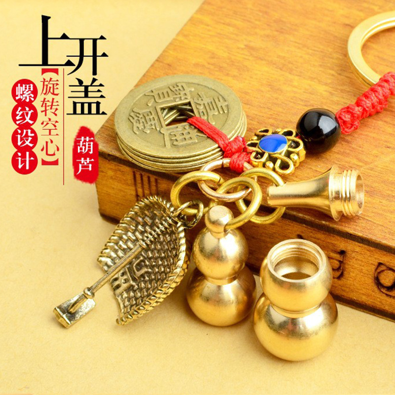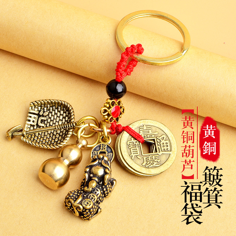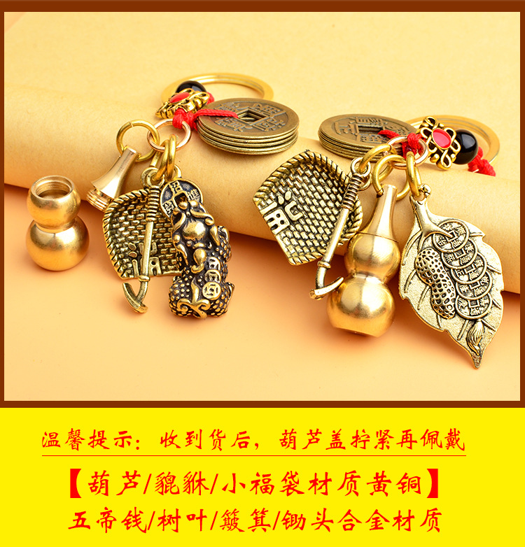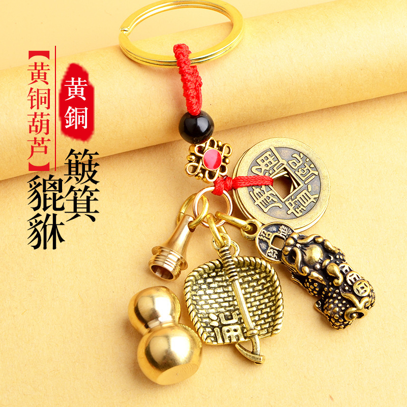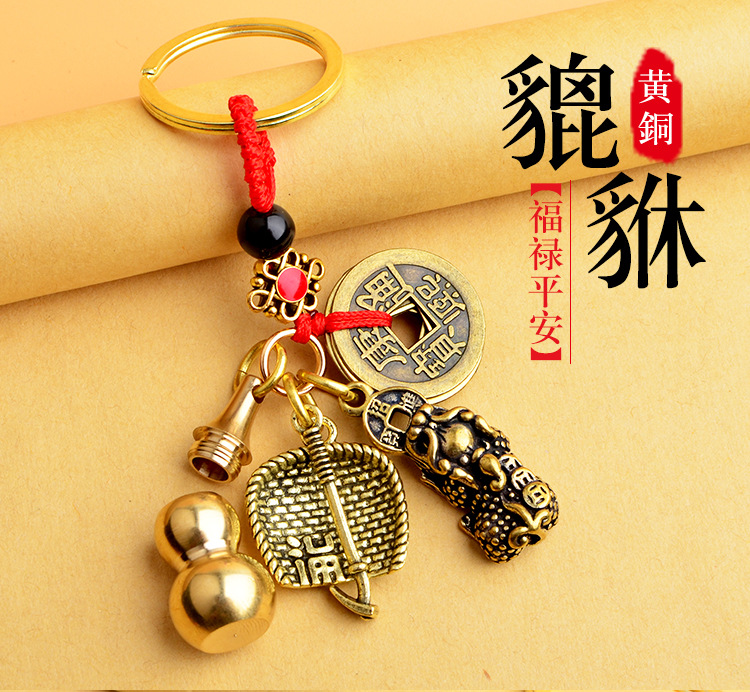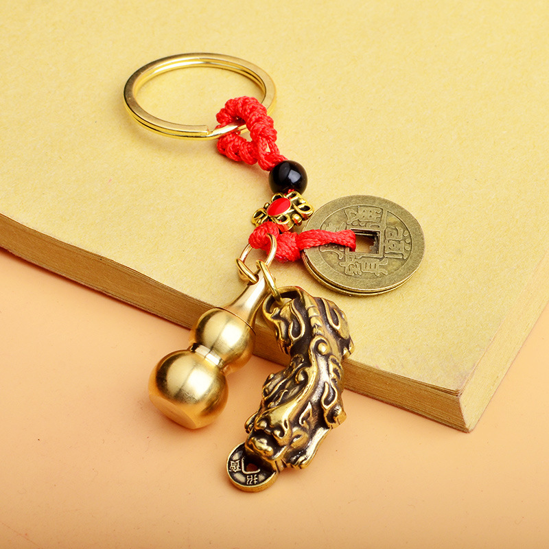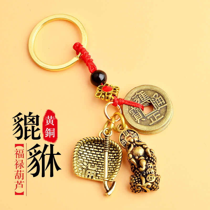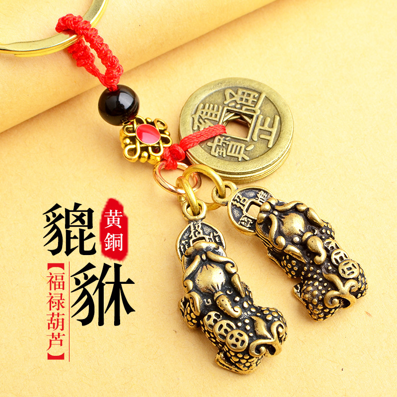 순수 황동 오 황제 돈 Pixiu 키 체인 더블 Pixiu 조롱박 펜던트 펜던트 남성과 여성 쌍 구리 동전 Pixiu스토어 가기