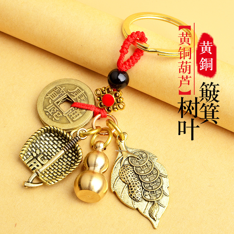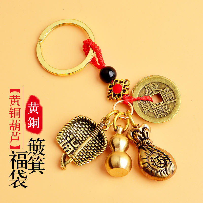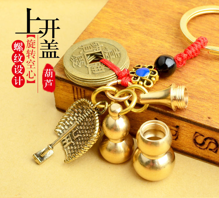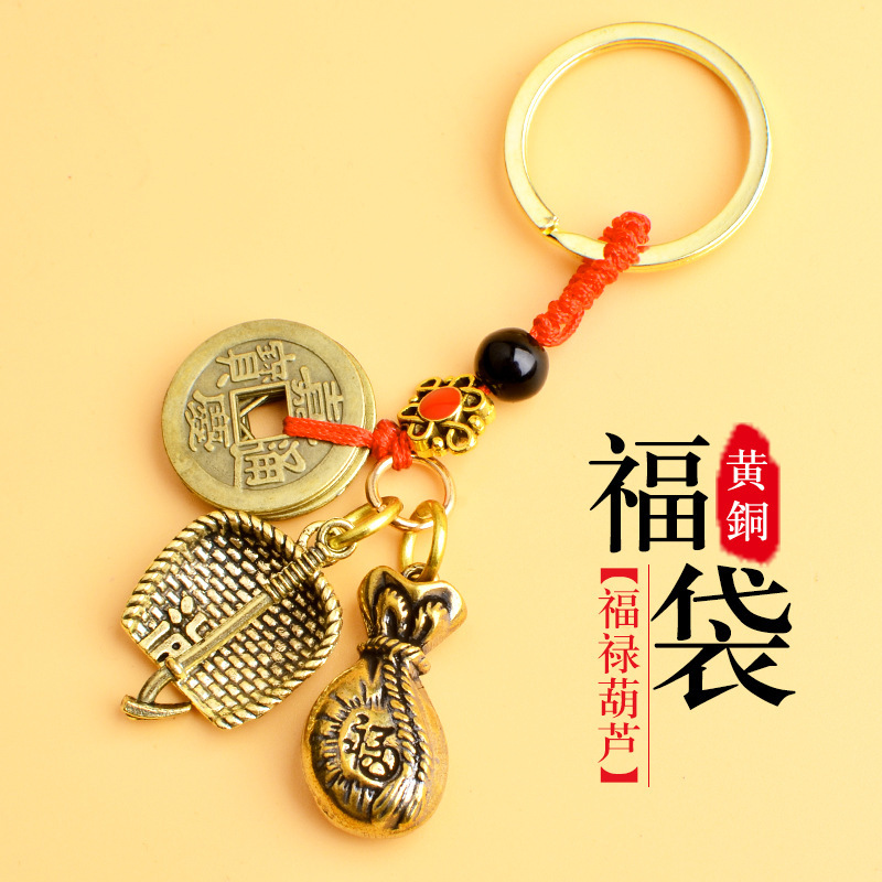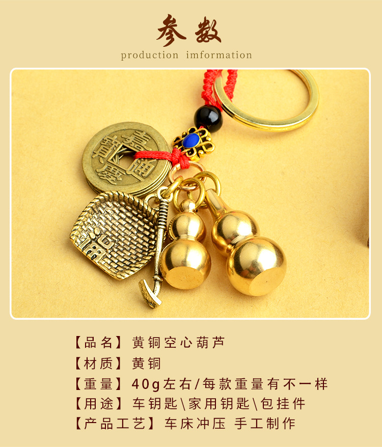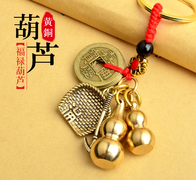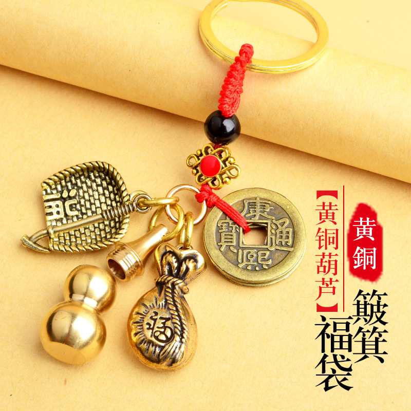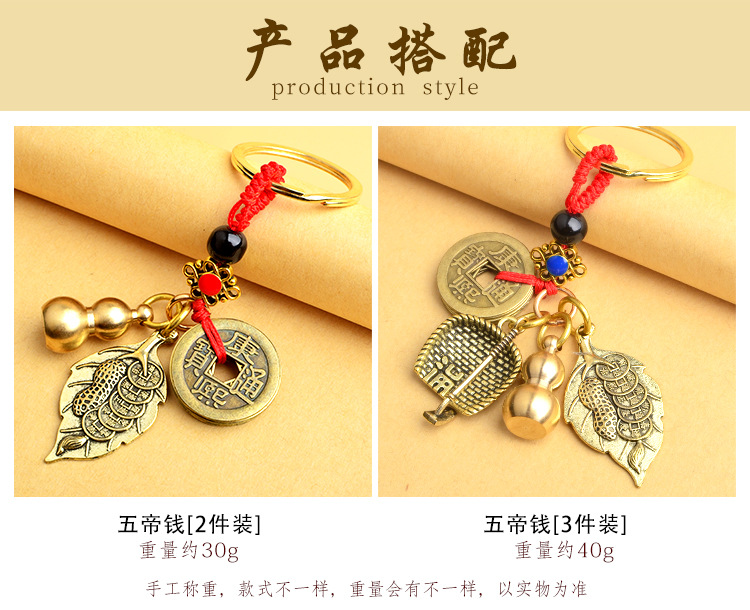 순수 황동 오 황제 돈 Pixiu 키 체인 더블 Pixiu 조롱박 펜던트 펜던트 남성과 여성 쌍 구리 동전 Pixiu스토어 가기