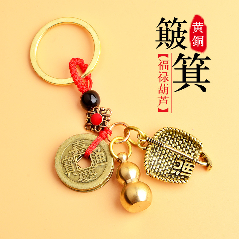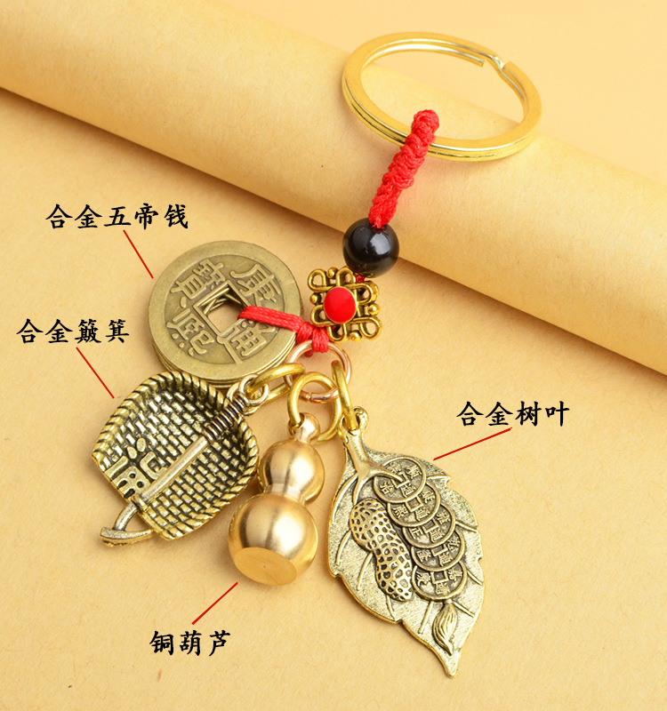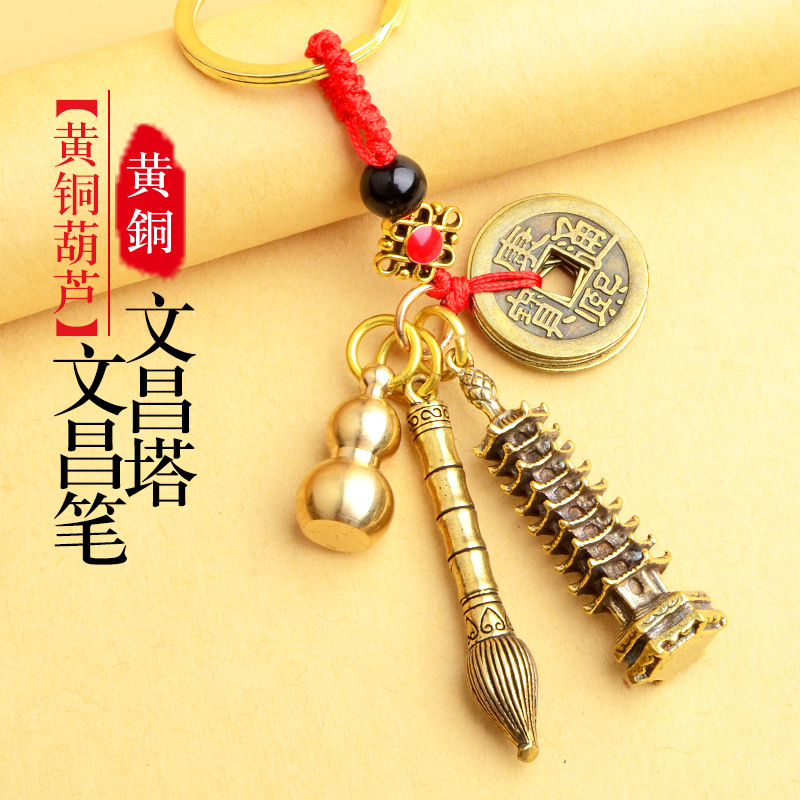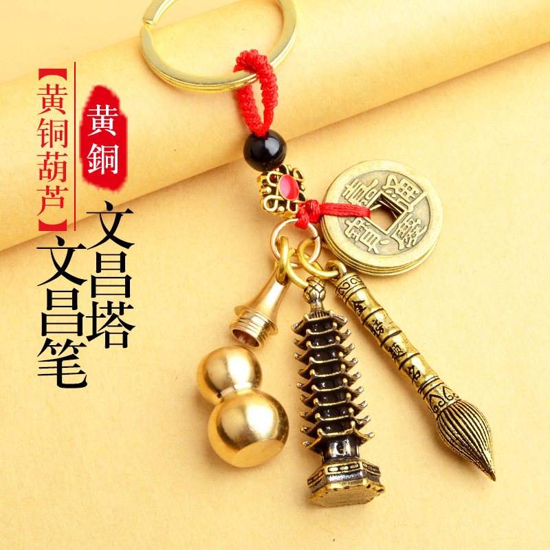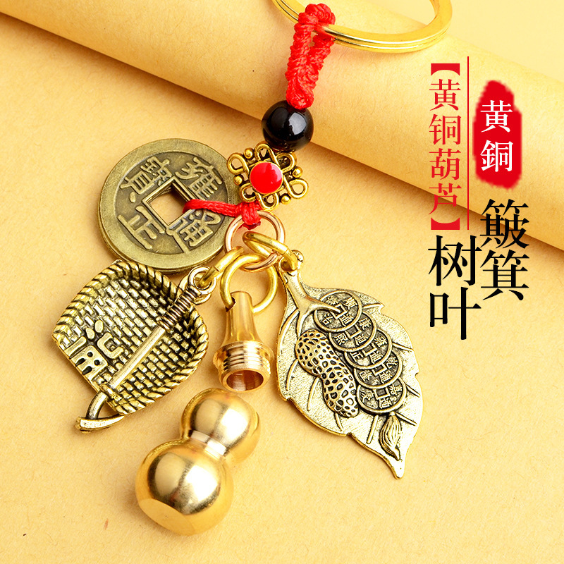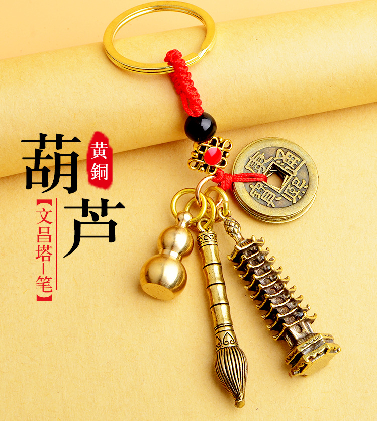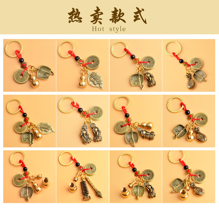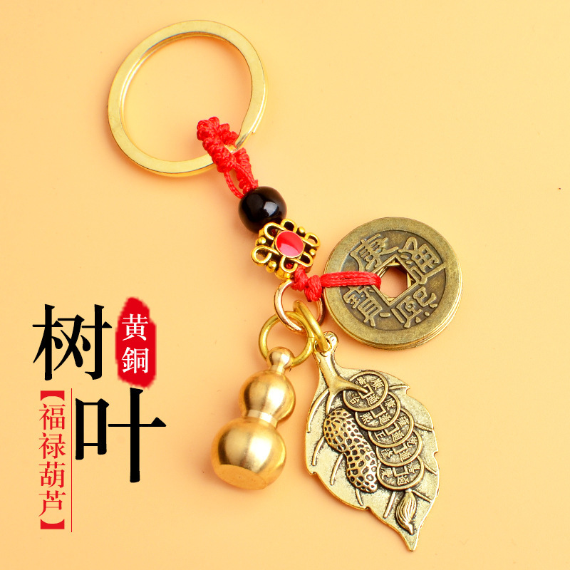 순수 황동 오 황제 돈 Pixiu 키 체인 더블 Pixiu 조롱박 펜던트 펜던트 남성과 여성 쌍 구리 동전 Pixiu스토어 가기