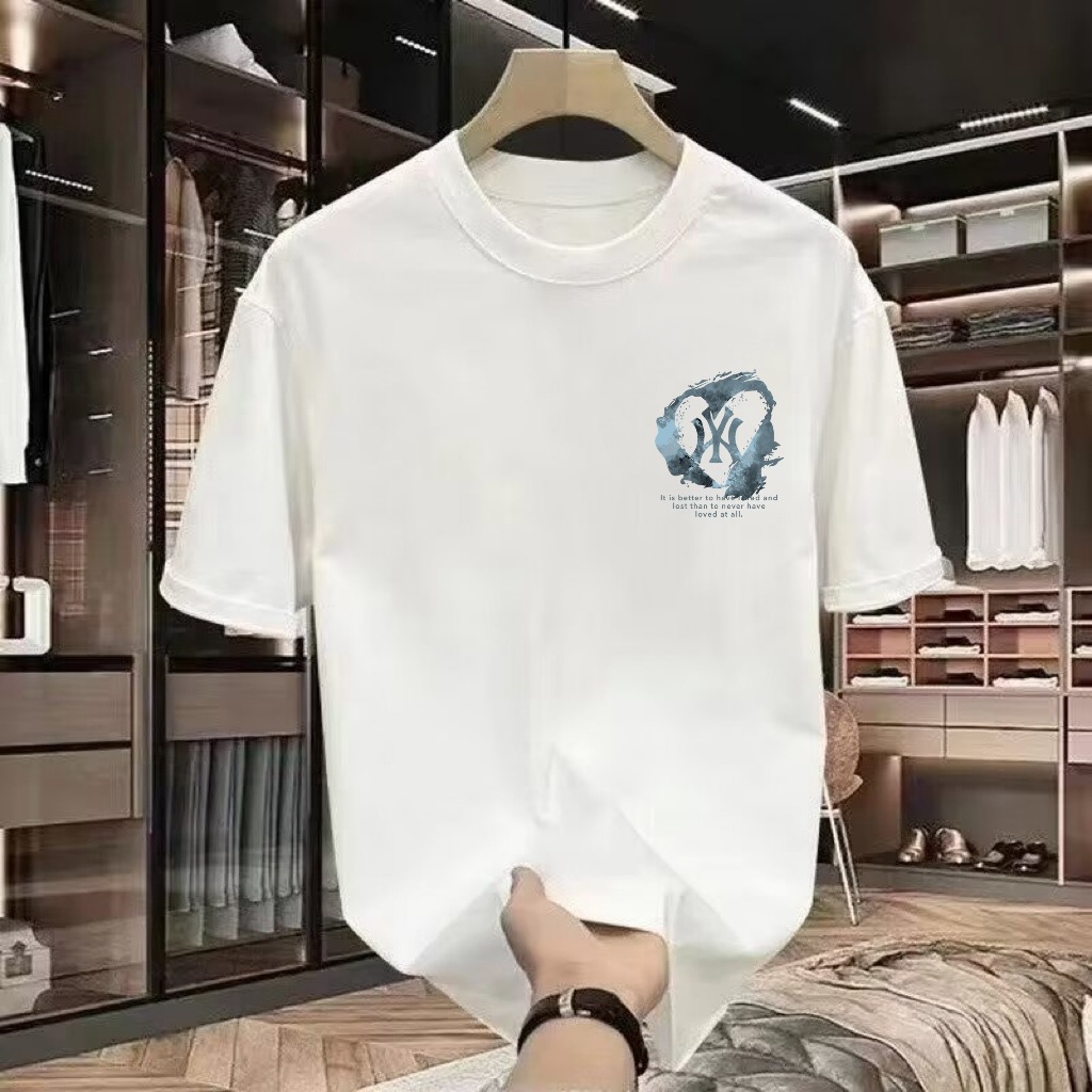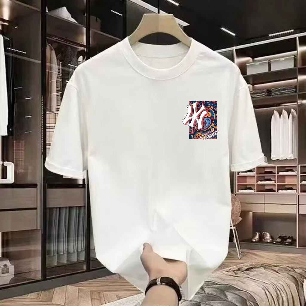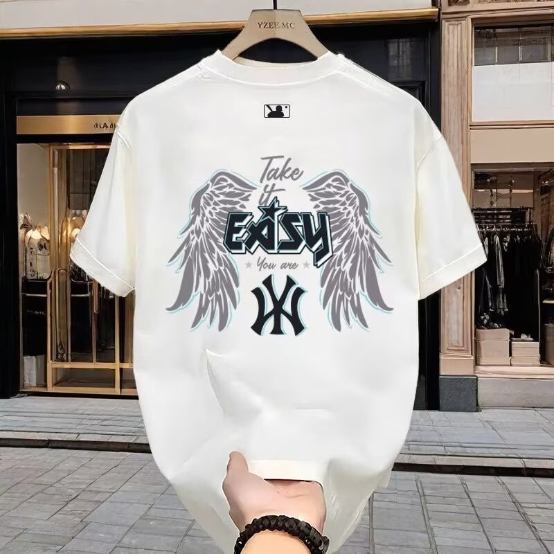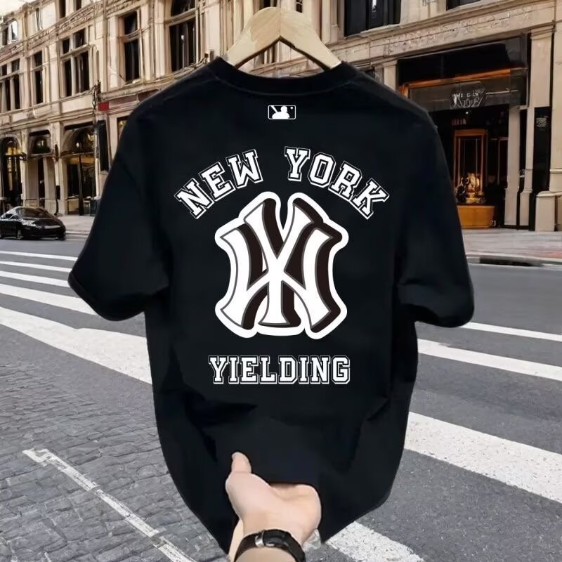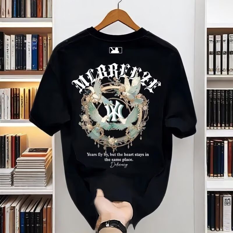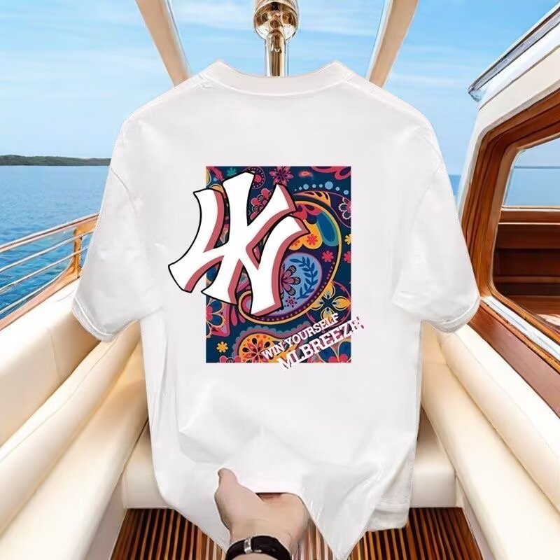 중국 스타일의 트렌디 브랜드 2025 여름 반팔 티셔츠 남성용 프린트 라운드 넥 티셔츠 십대 루즈 베이스 셔츠 티셔츠스토어 가기