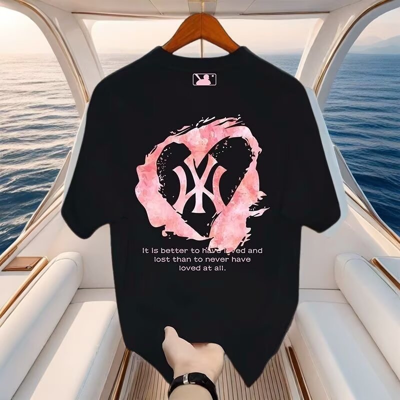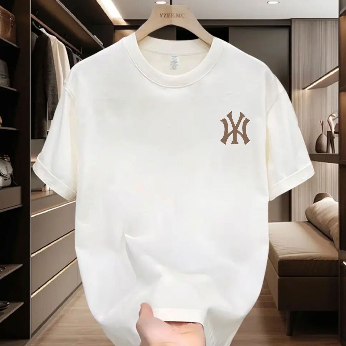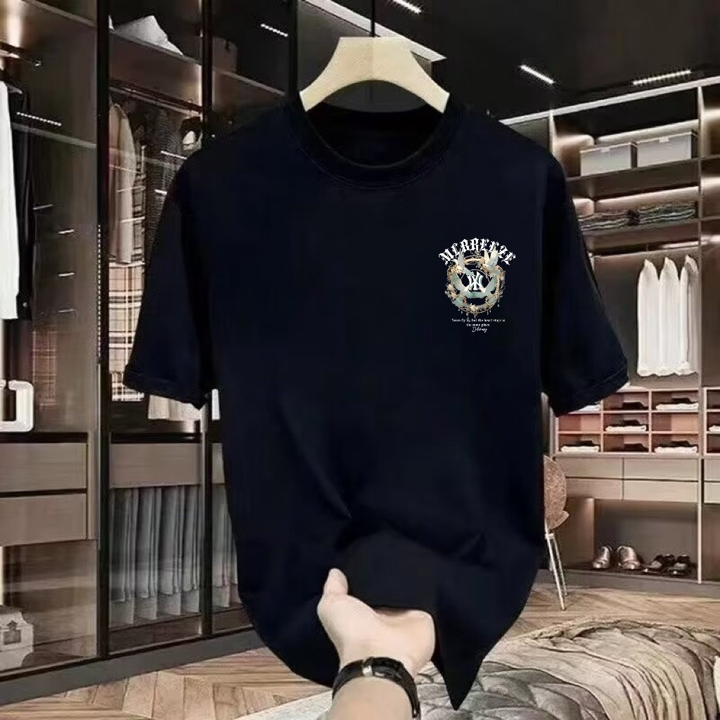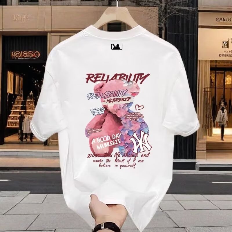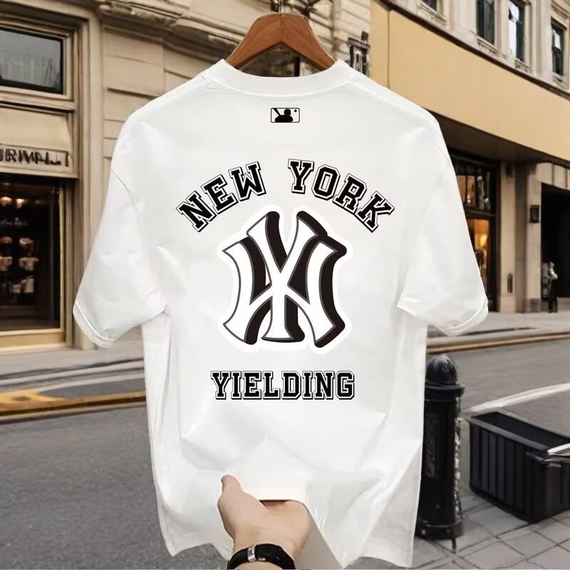 중국 스타일의 트렌디 브랜드 2025 여름 반팔 티셔츠 남성용 프린트 라운드 넥 티셔츠 십대 루즈 베이스 셔츠 티셔츠스토어 가기
