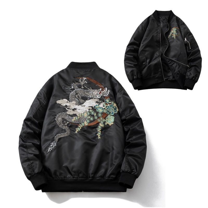 2025 봄과 가을 느슨한 유행 브랜드 중국 스타일 중공업 자수 야구 세트 비행사 자켓 남녀 커플 세트스토어 가기