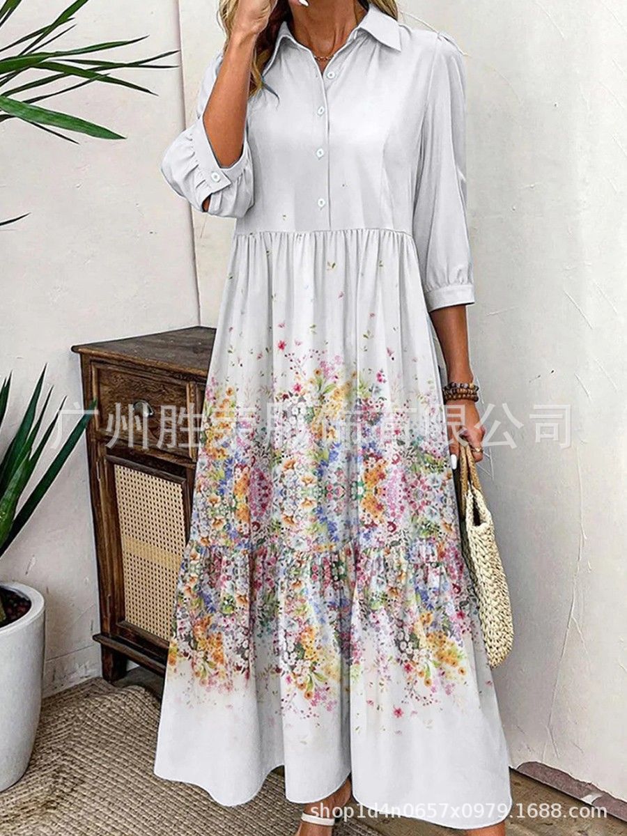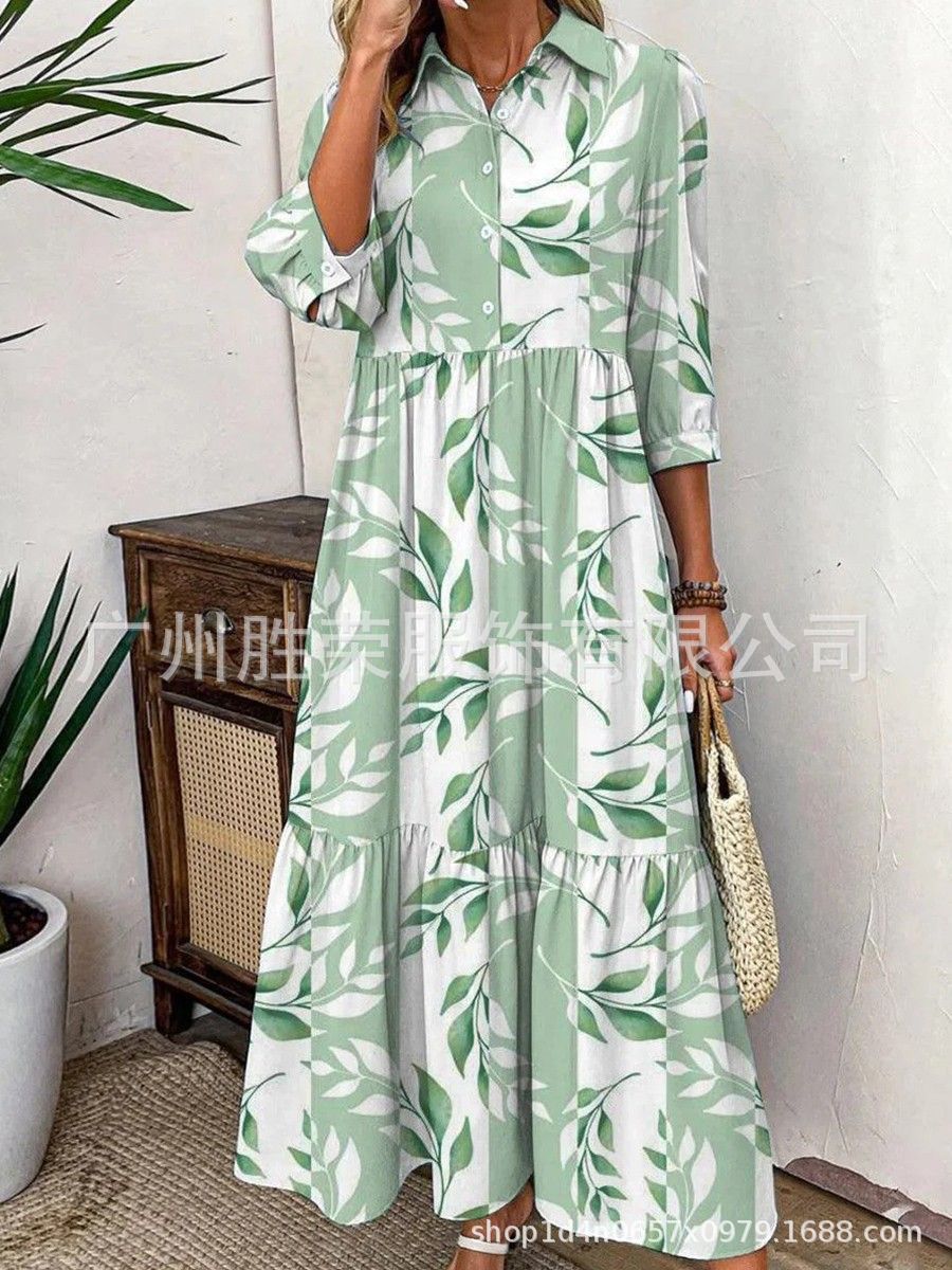 2025 새로운 국경 대외 무역 유럽과 미국 여성의 재고 봄과 여름 긴 디지털 인쇄 슬림 허리 원피스스토어 가기