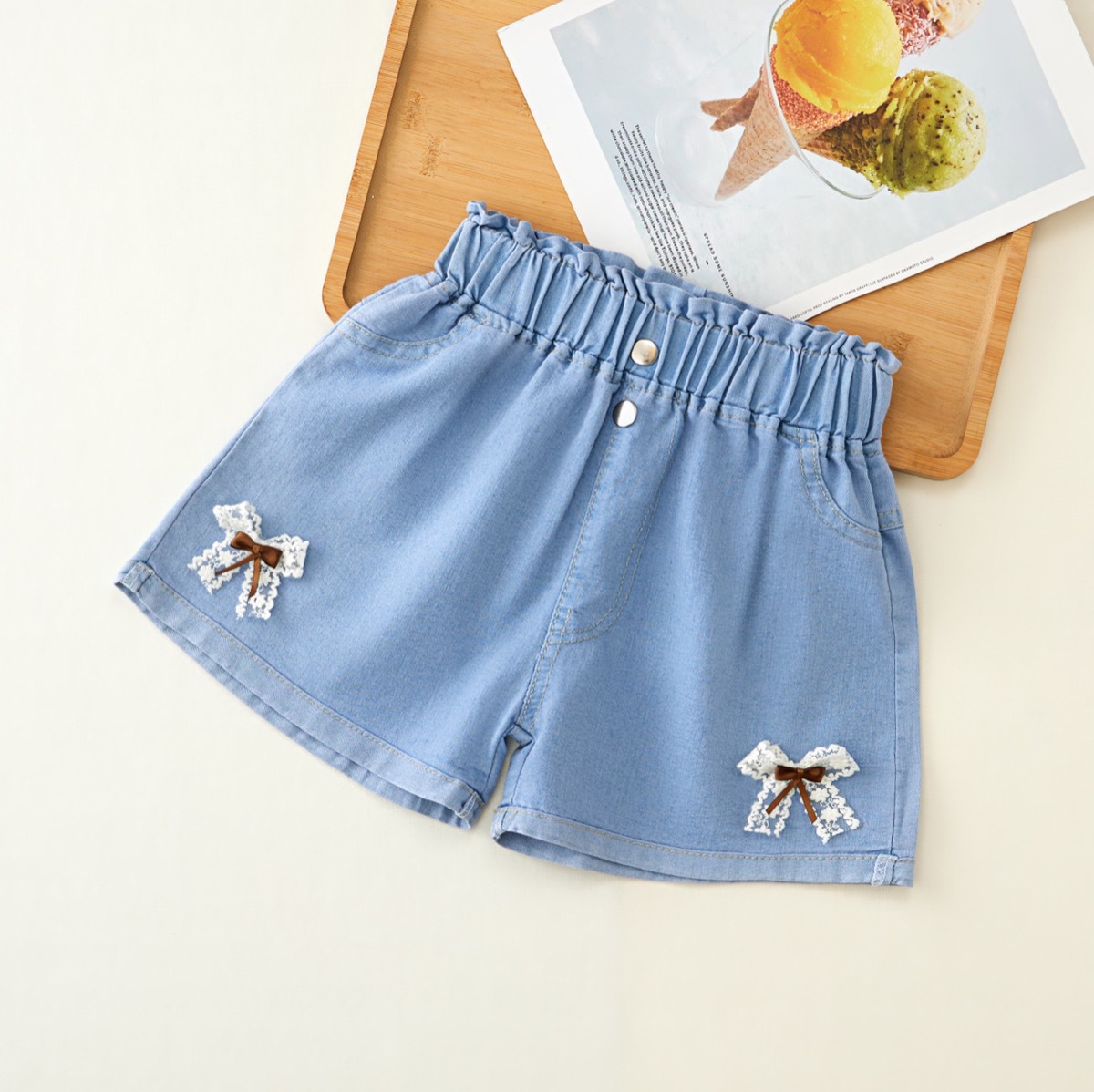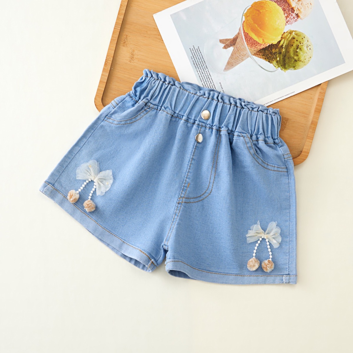 여아 데님 반바지 여름 2025 새로운 겉옷 바지 아기 소녀 여름 얇은 중대형 어린이 반바지스토어 가기