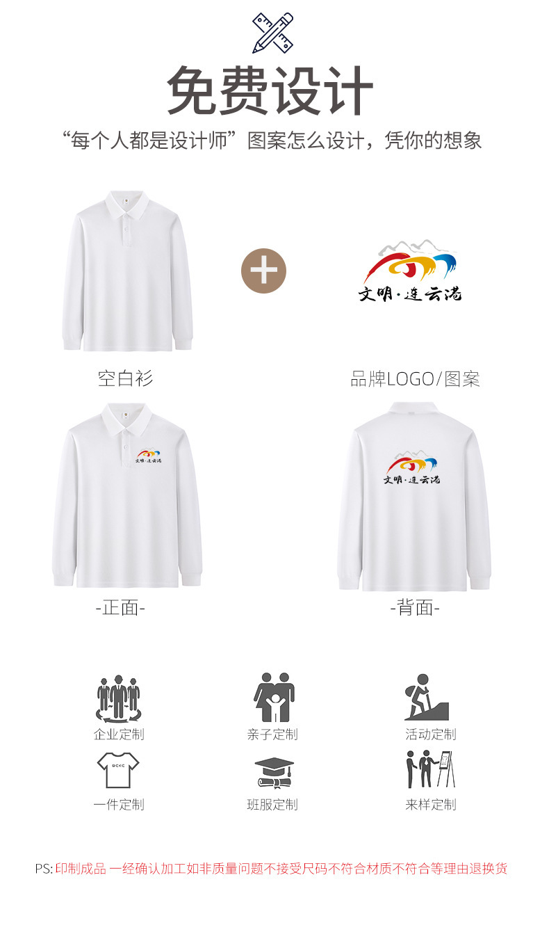 儿童长绒棉翻领长袖印字logo团体服表演服logo