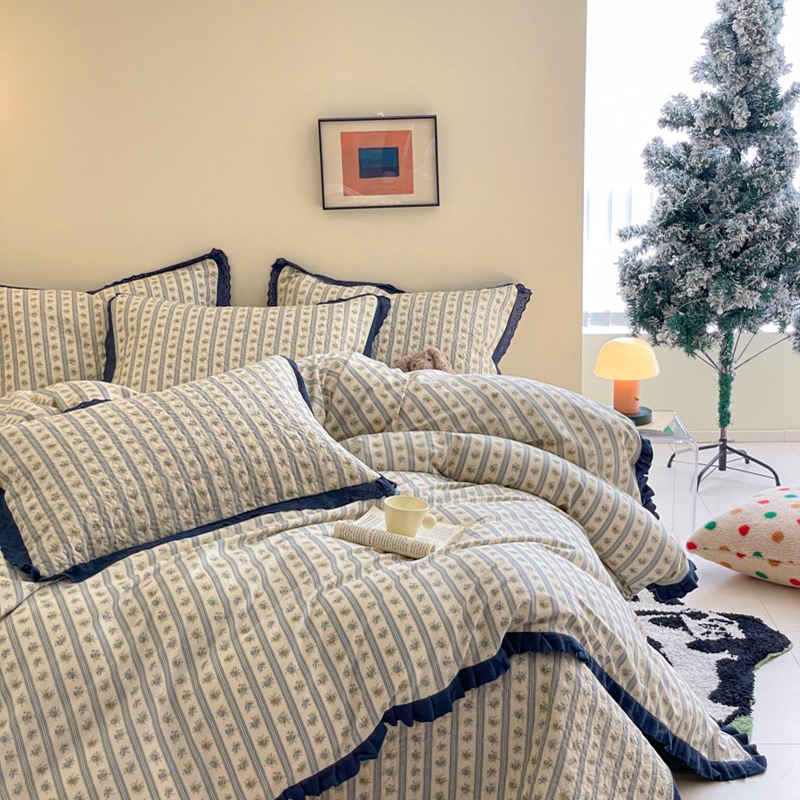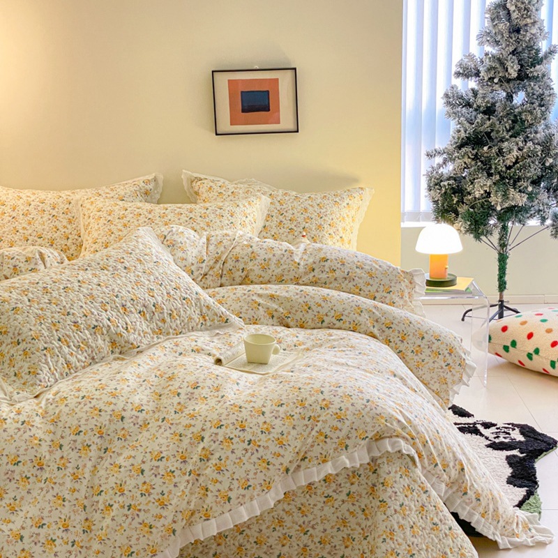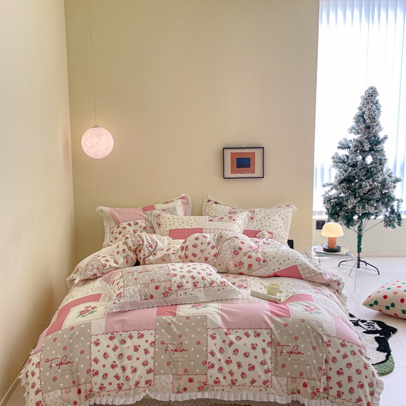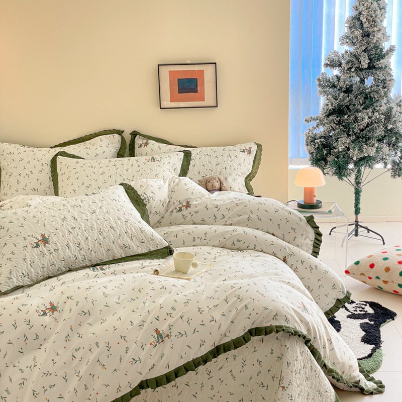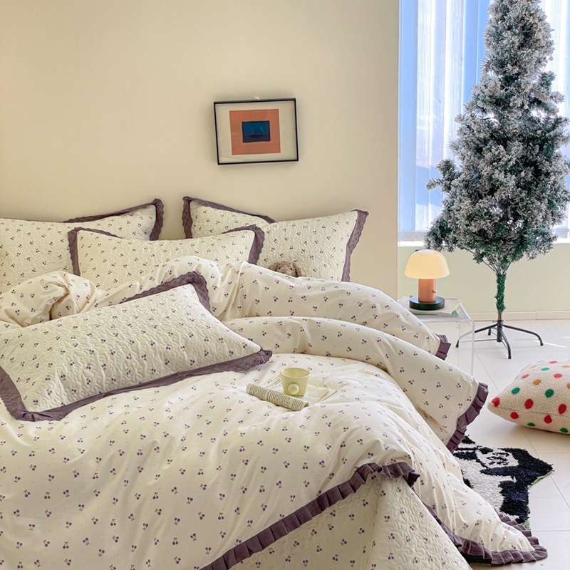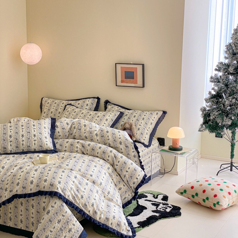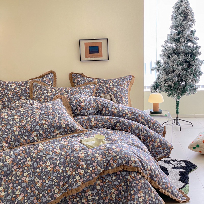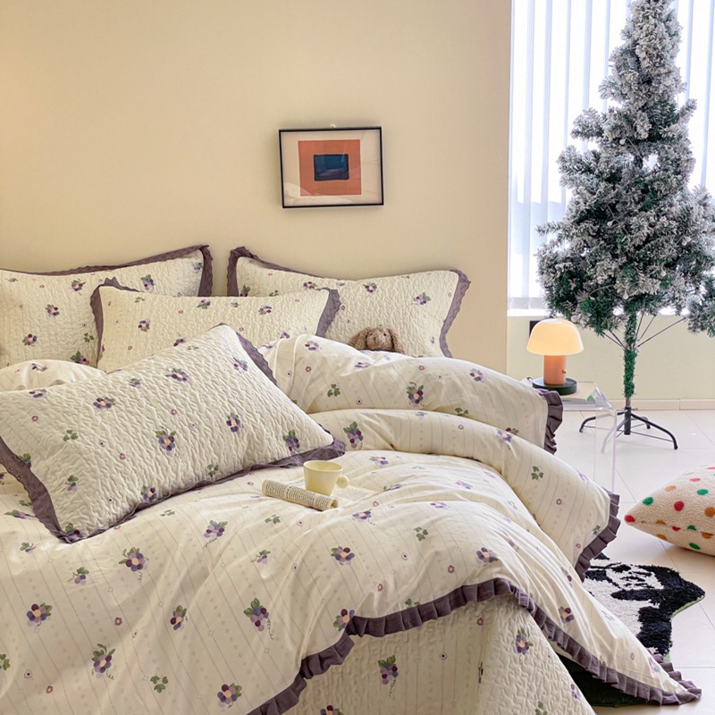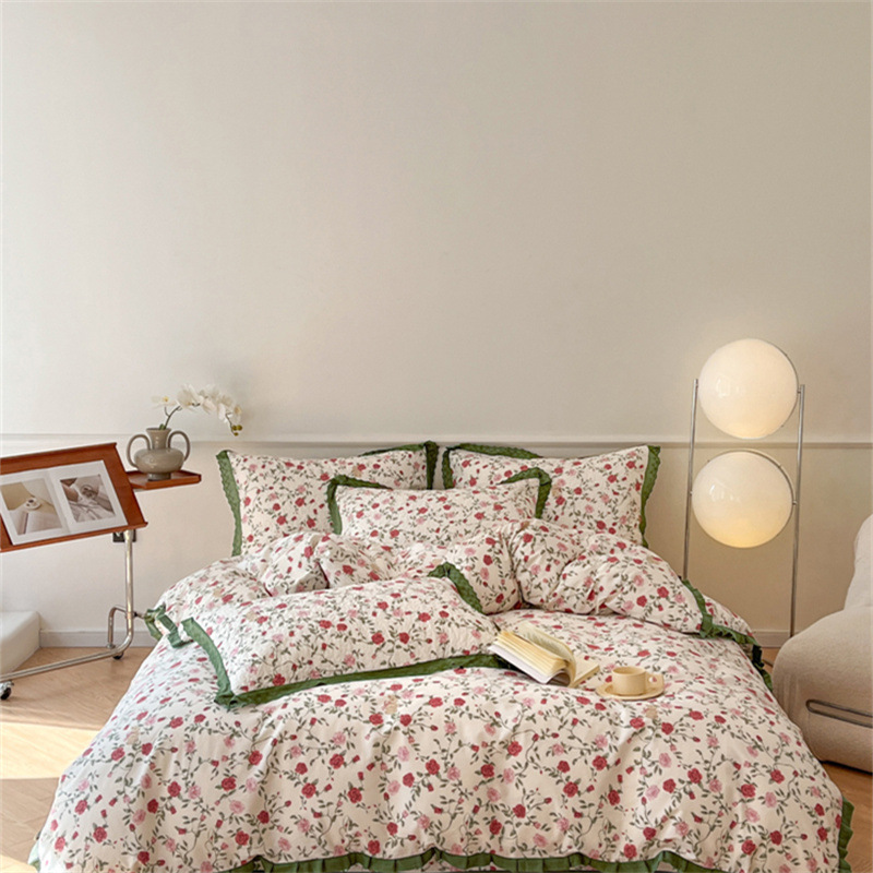 프렌치 스타일 코튼 침대 커버 4 피스 세트 퓨어 코튼 클래스 3 피스 세트 가정용 침구 키트 싱글 침대 커버 작은 꽃 침대 커버스토어 가기