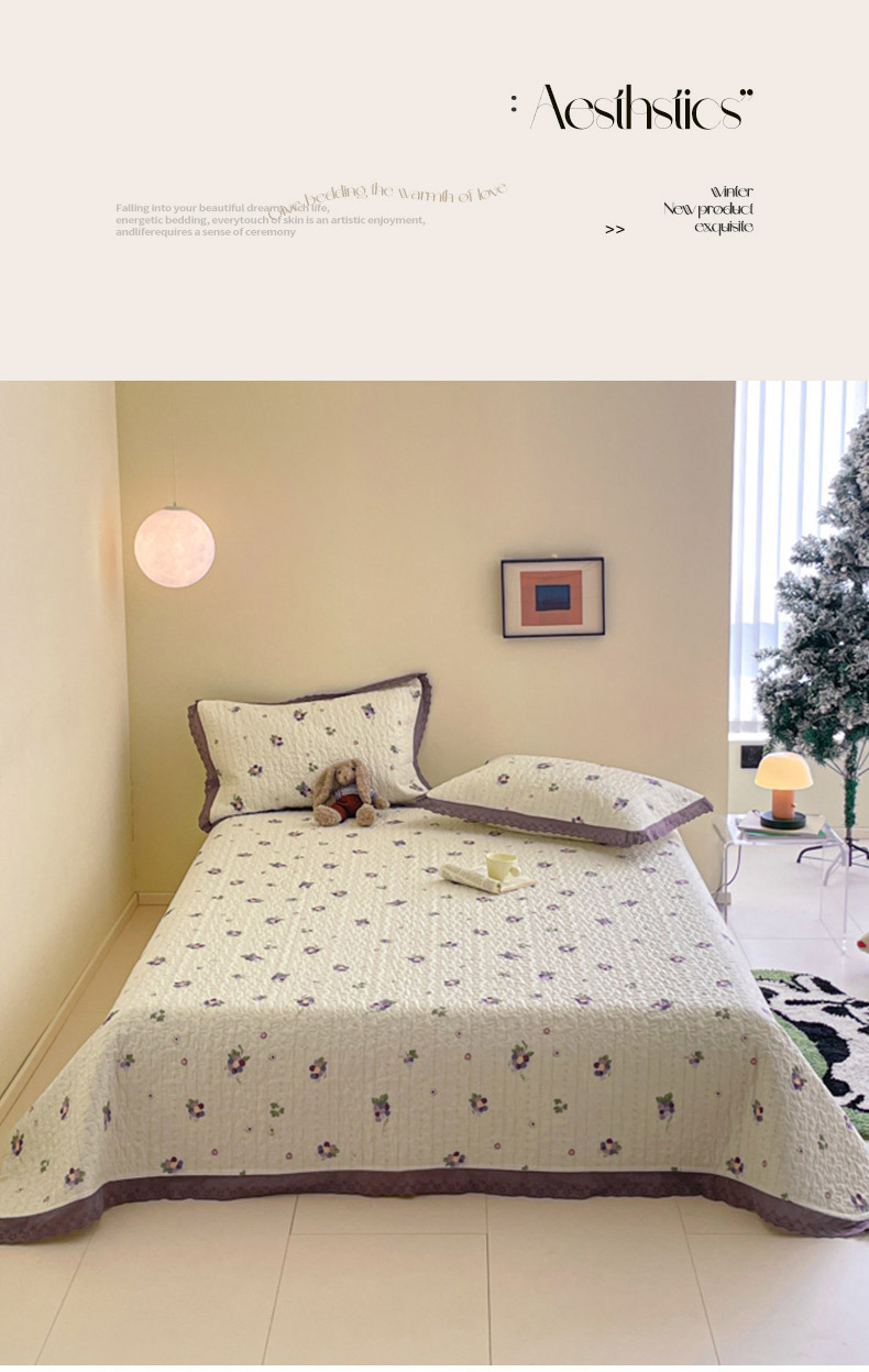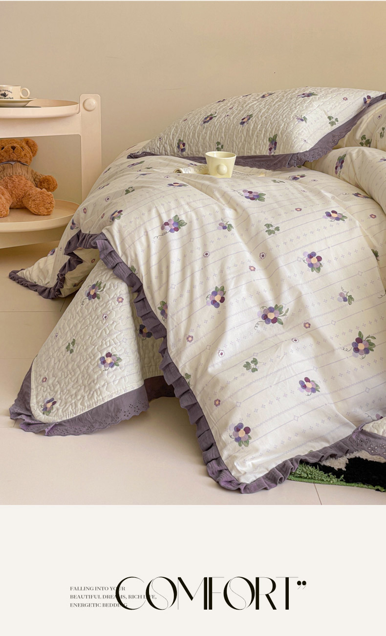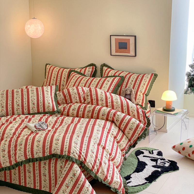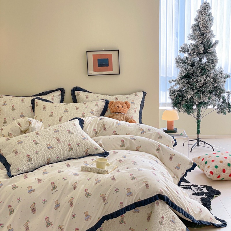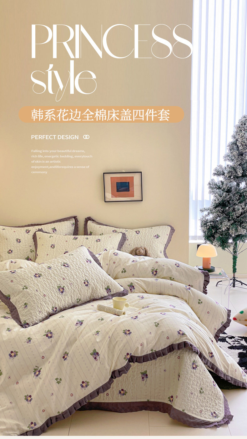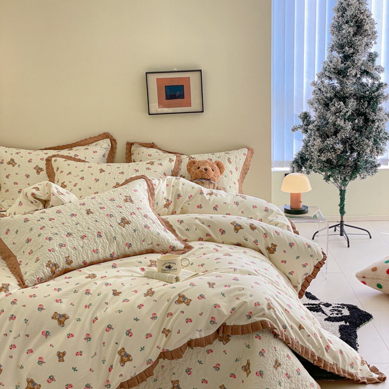 프렌치 스타일 코튼 침대 커버 4 피스 세트 퓨어 코튼 클래스 3 피스 세트 가정용 침구 키트 싱글 침대 커버 작은 꽃 침대 커버스토어 가기