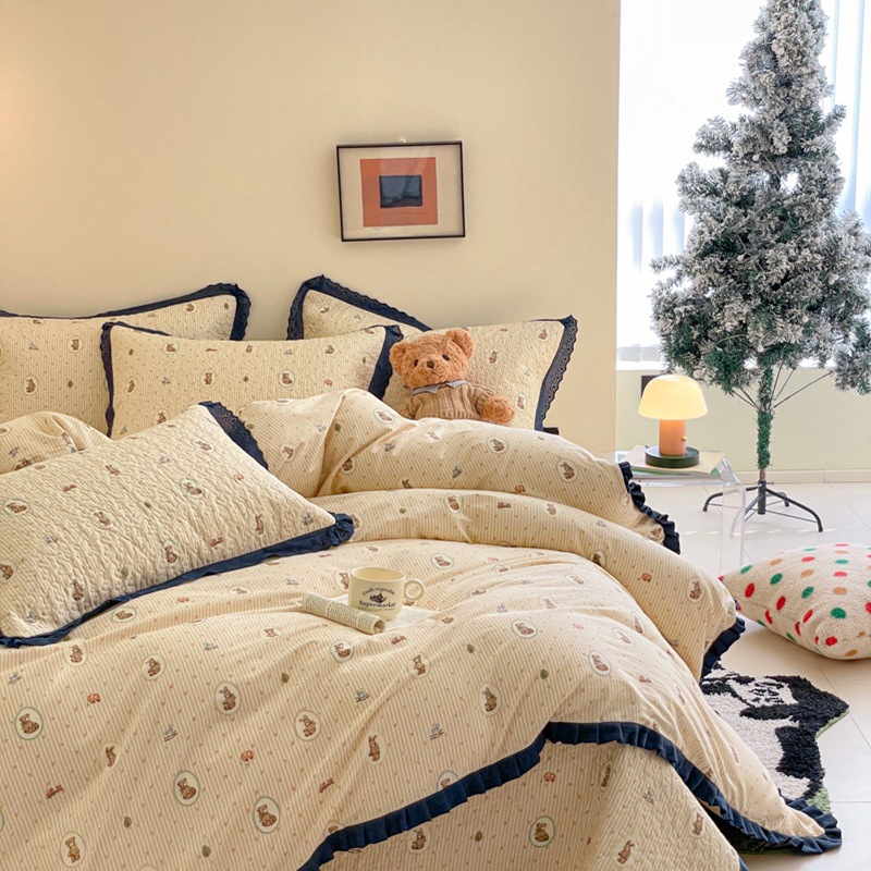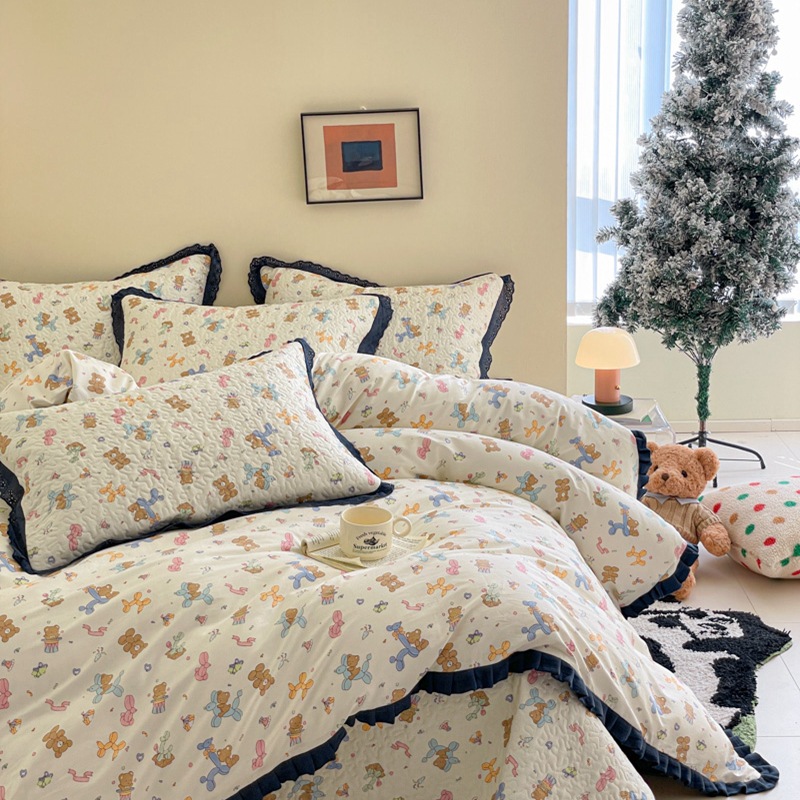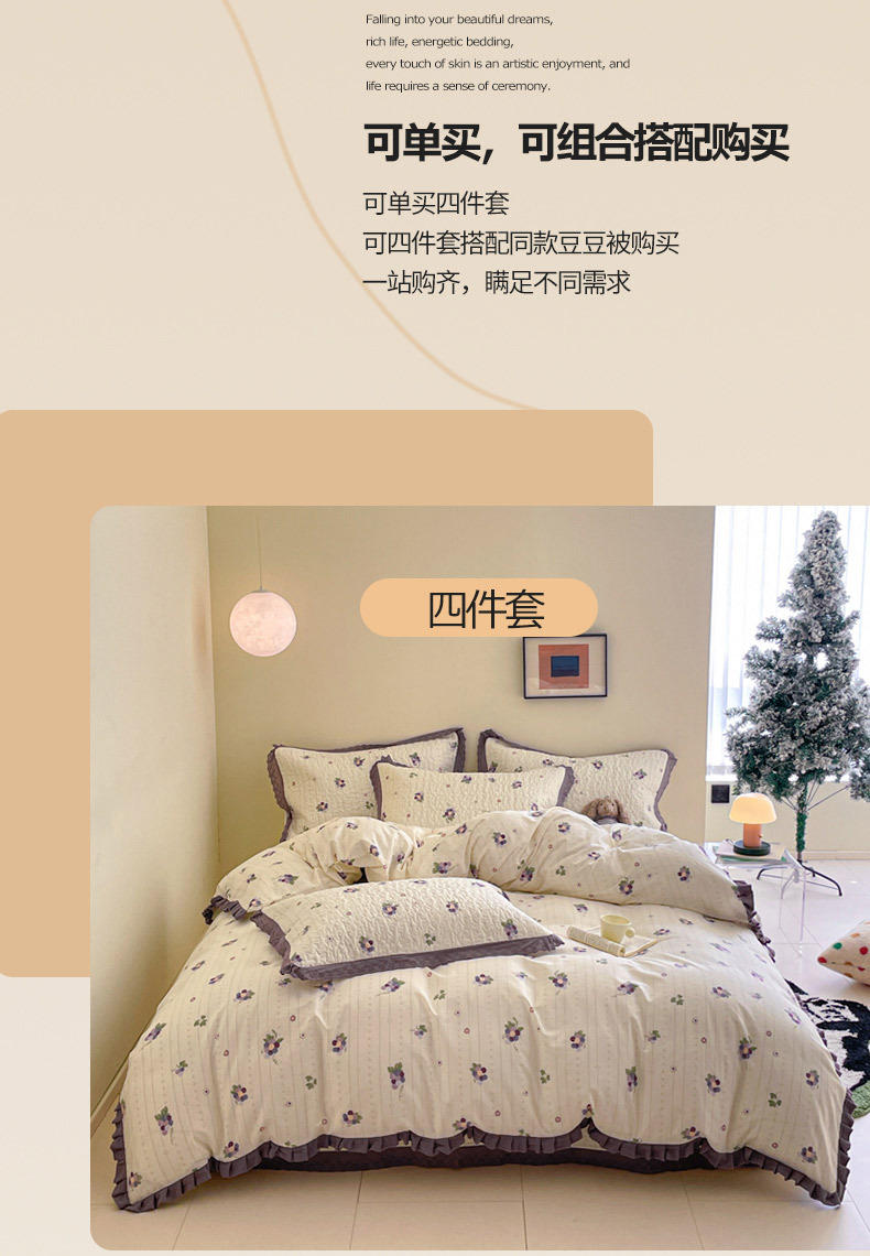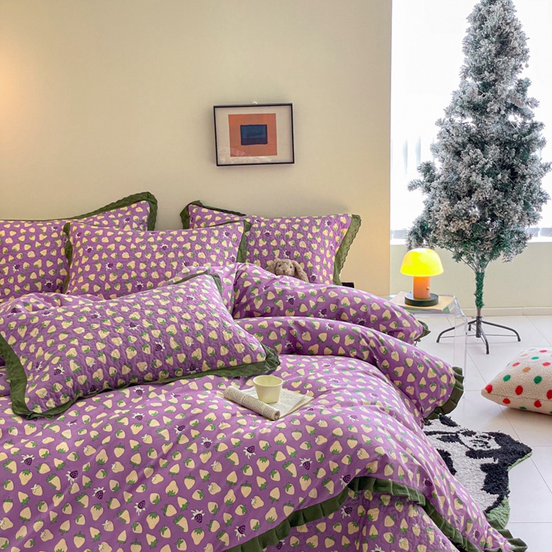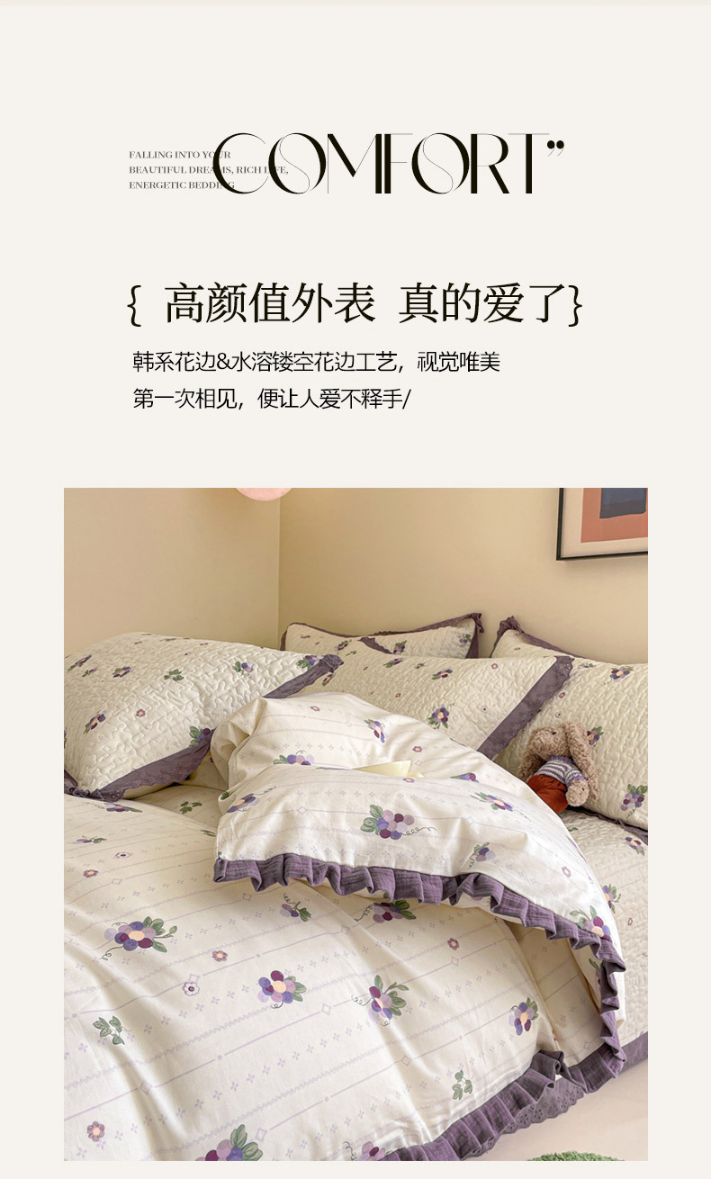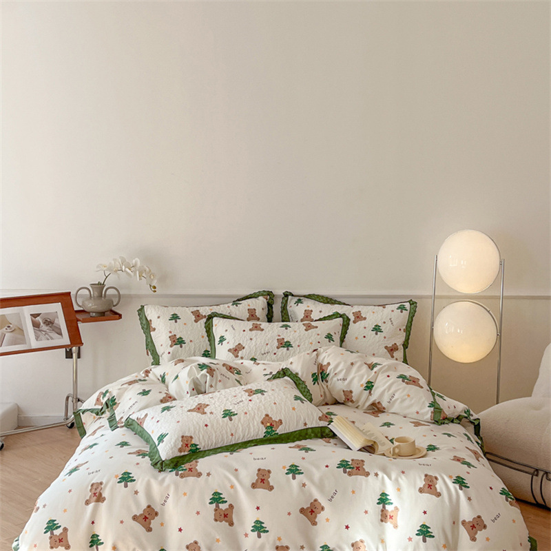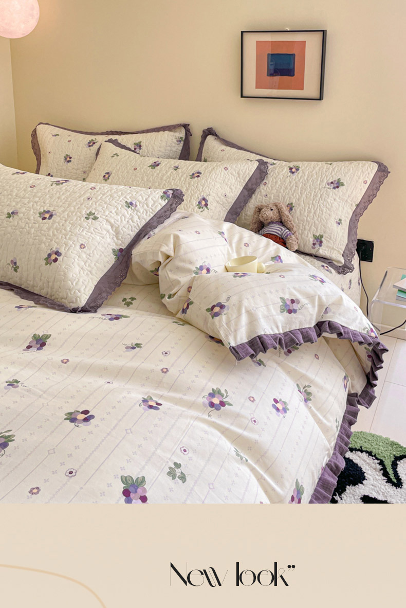 프렌치 스타일 코튼 침대 커버 4 피스 세트 퓨어 코튼 클래스 3 피스 세트 가정용 침구 키트 싱글 침대 커버 작은 꽃 침대 커버스토어 가기