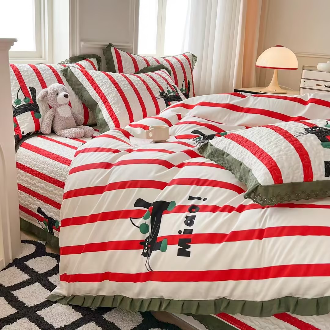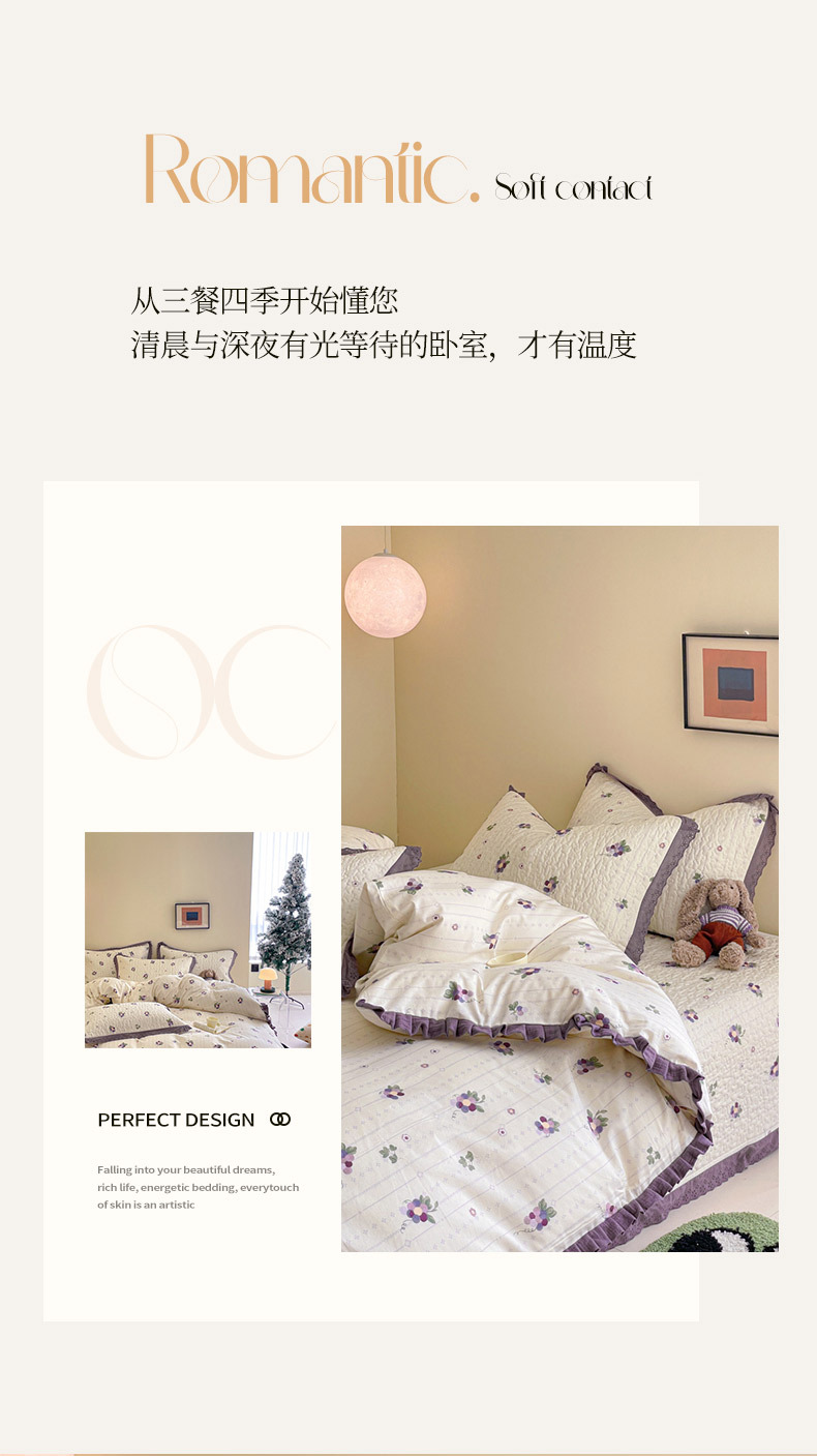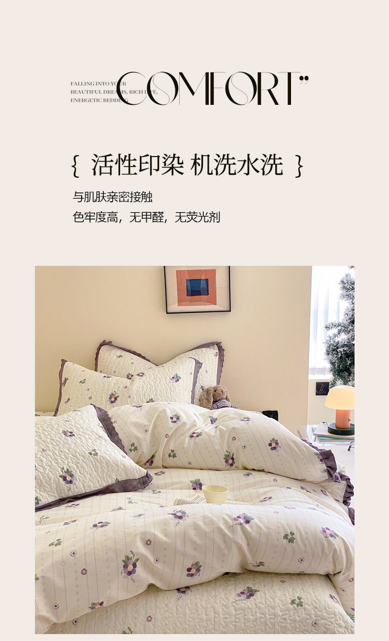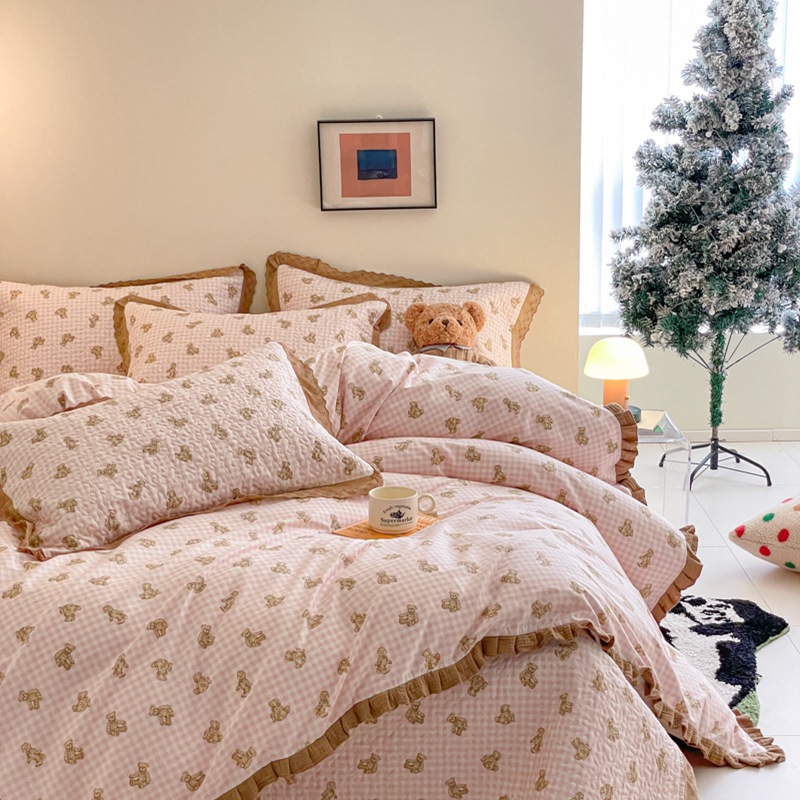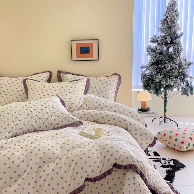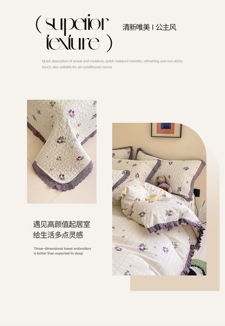 프렌치 스타일 코튼 침대 커버 4 피스 세트 퓨어 코튼 클래스 3 피스 세트 가정용 침구 키트 싱글 침대 커버 작은 꽃 침대 커버스토어 가기