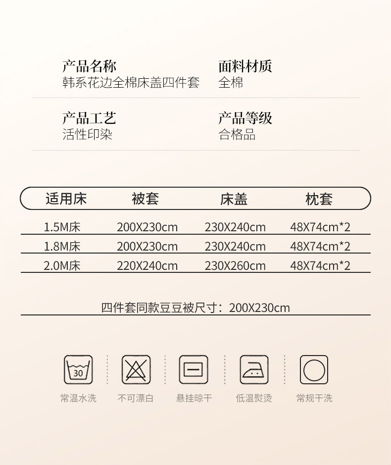 • 230*260cm 침대커버 4피스 이불커버 200*230cm)
