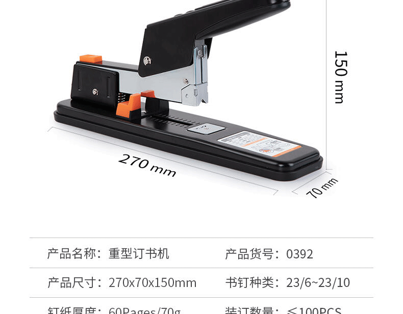 델리 0392 (블랙) 대형 두꺼운 스테이플러 큰 노동 절약 두꺼운 스테이플러 60 페이지 바인딩 머신스토어 가기