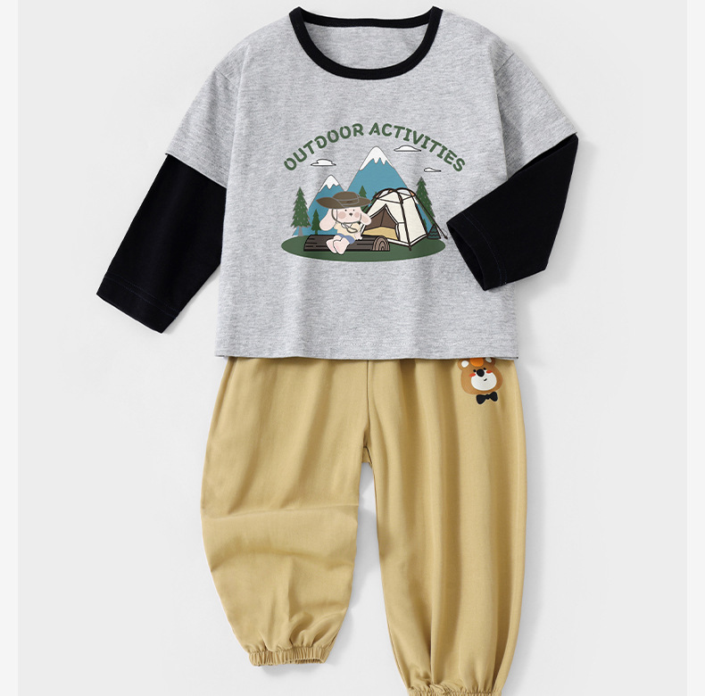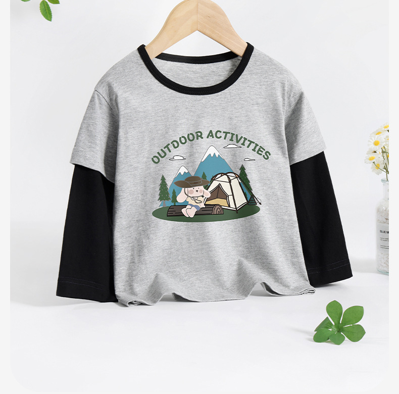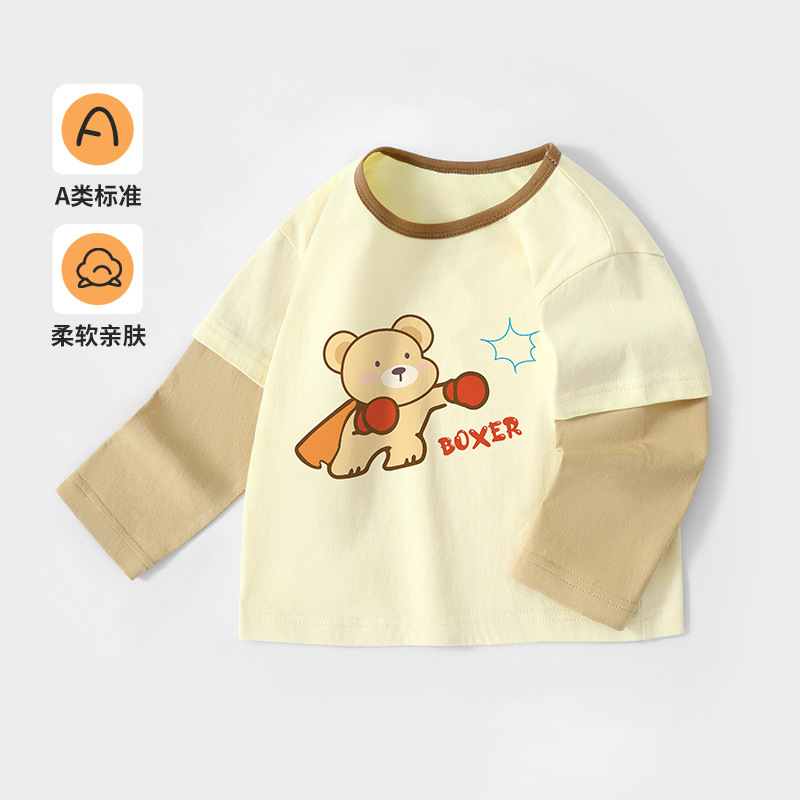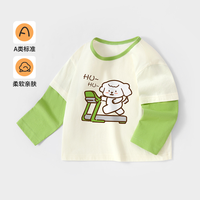 아기의 순수한면베이스 셔츠 긴팔 티셔츠 어린이 캐주얼 가짜 투피스 봄과 가을 새로운 스타일 최고 유행 소년 소녀스토어 가기