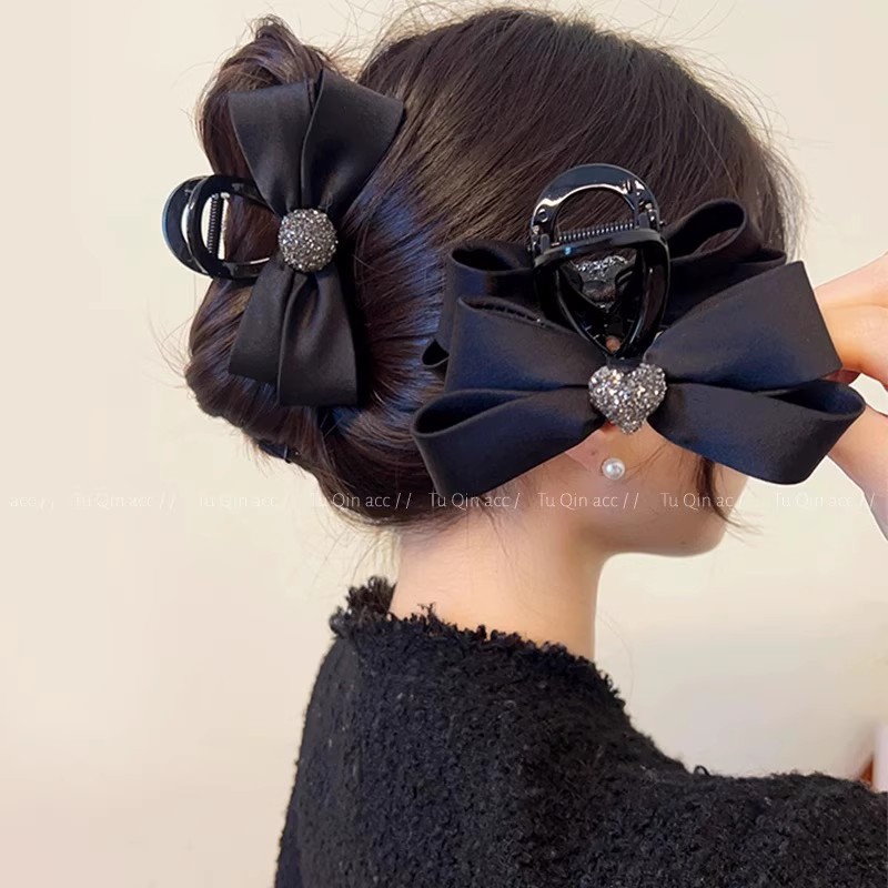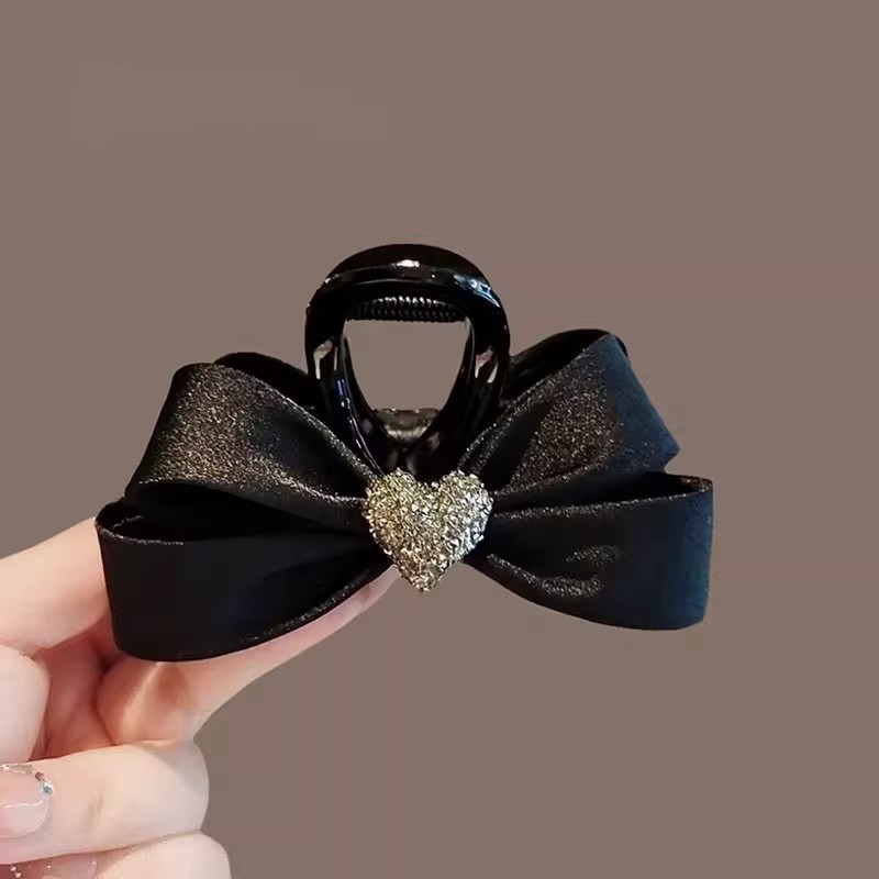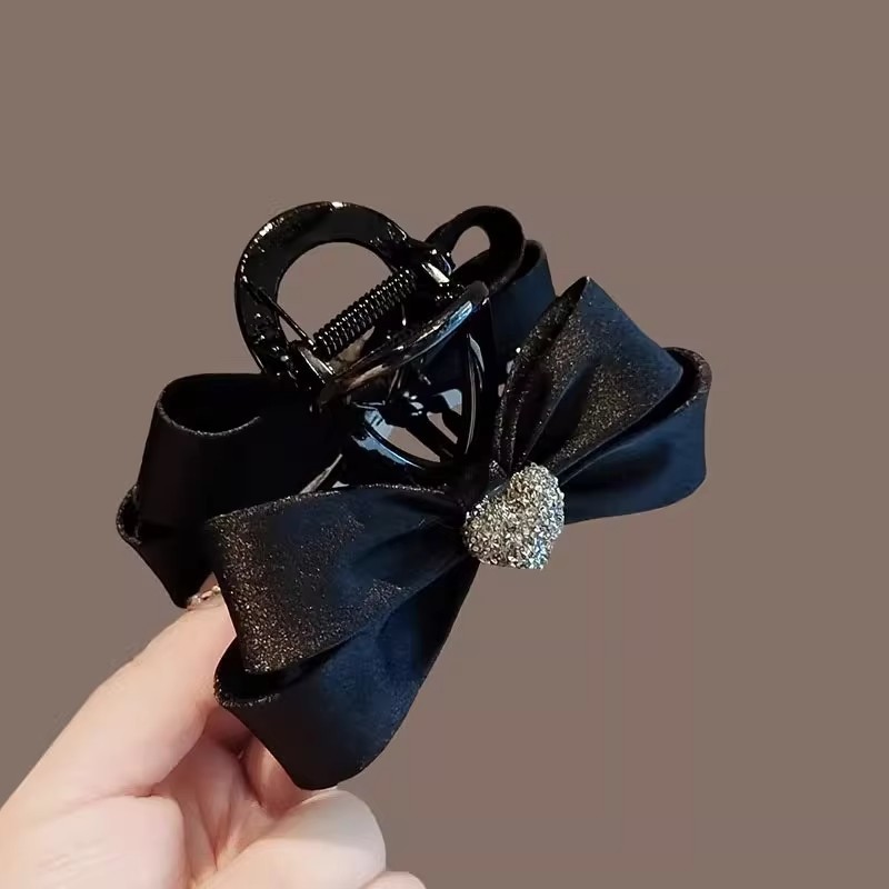 고급 라인스톤 러브 보우 그랩 클립 하이 엔드 백 헤드 헤어핀 레트로 우아한 상어 클립 헤드웨어 여성스토어 가기