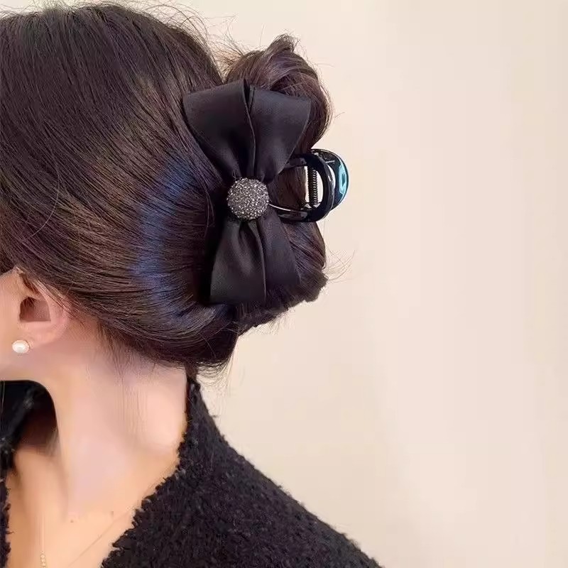 고급 라인스톤 러브 보우 그랩 클립 하이 엔드 백 헤드 헤어핀 레트로 우아한 상어 클립 헤드웨어 여성