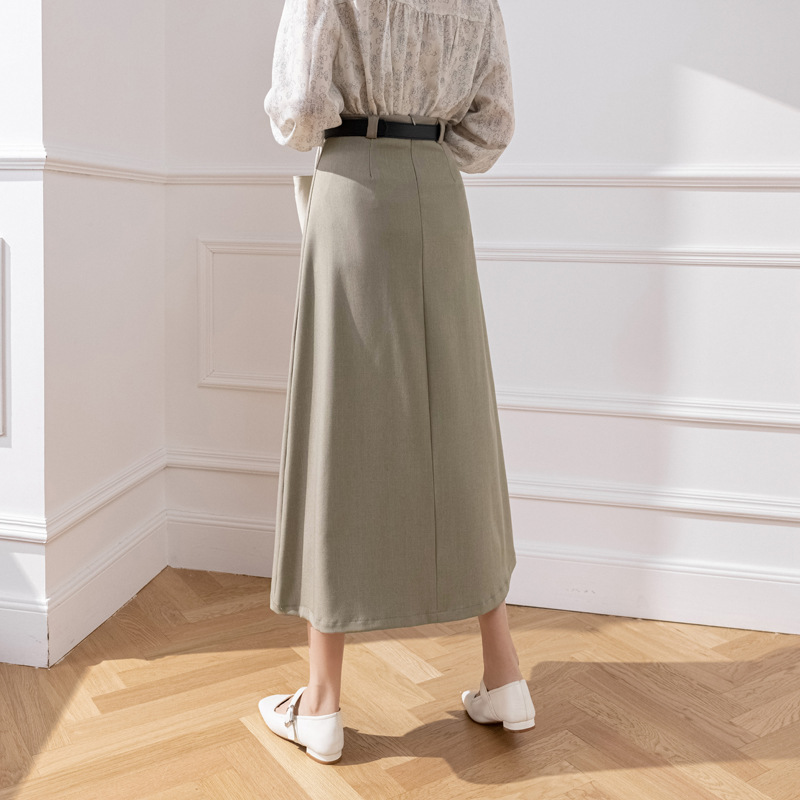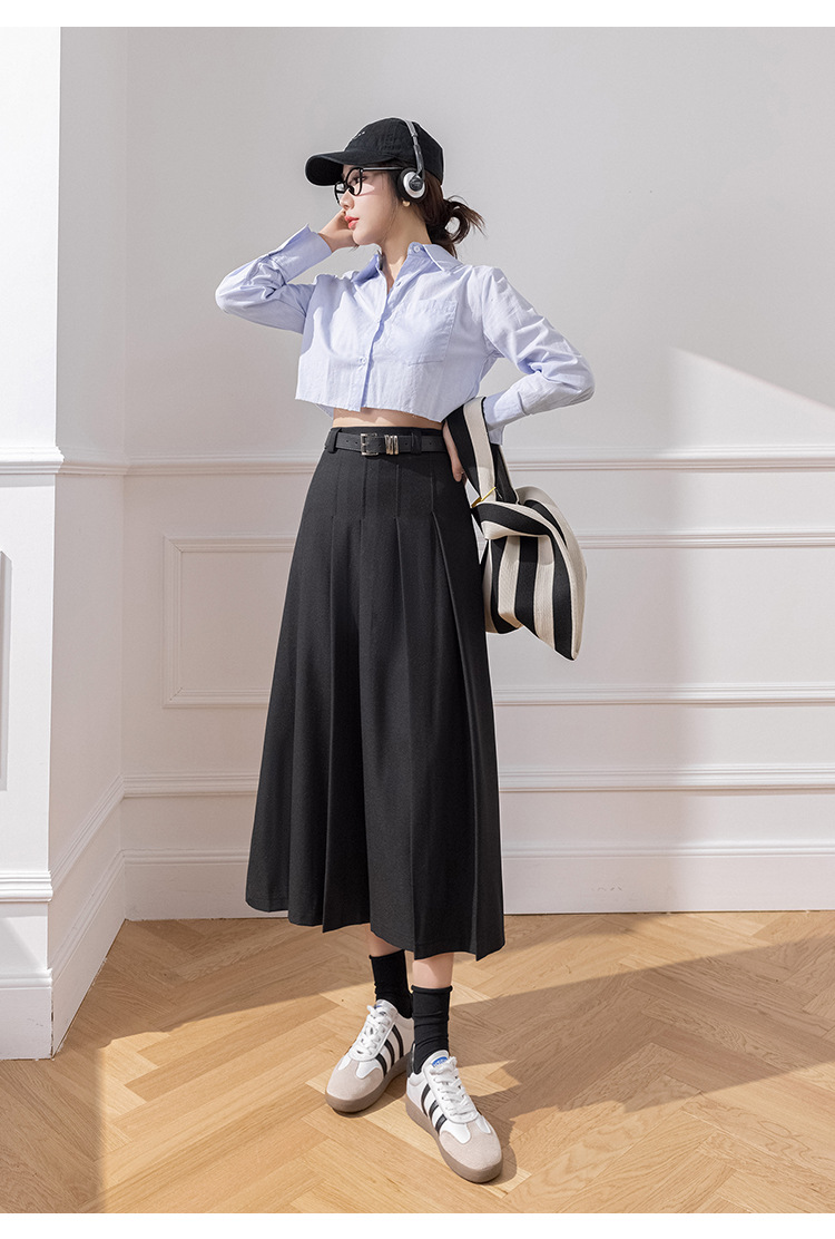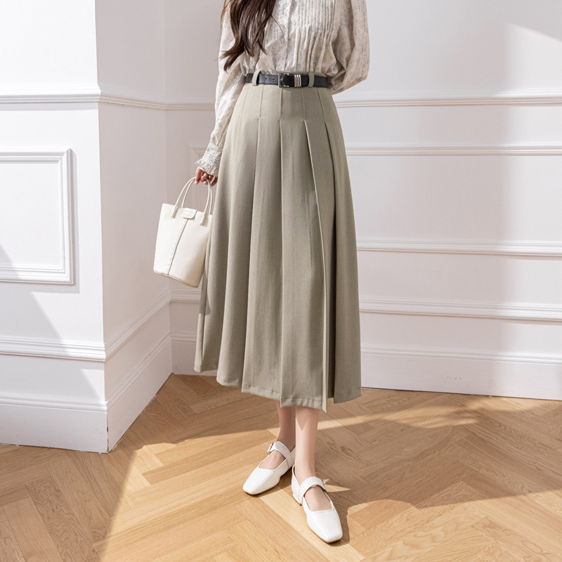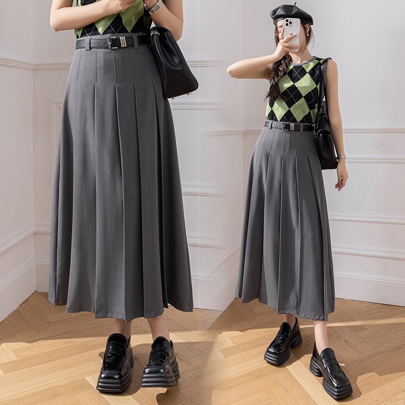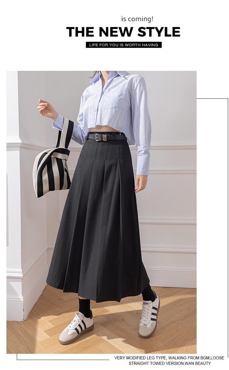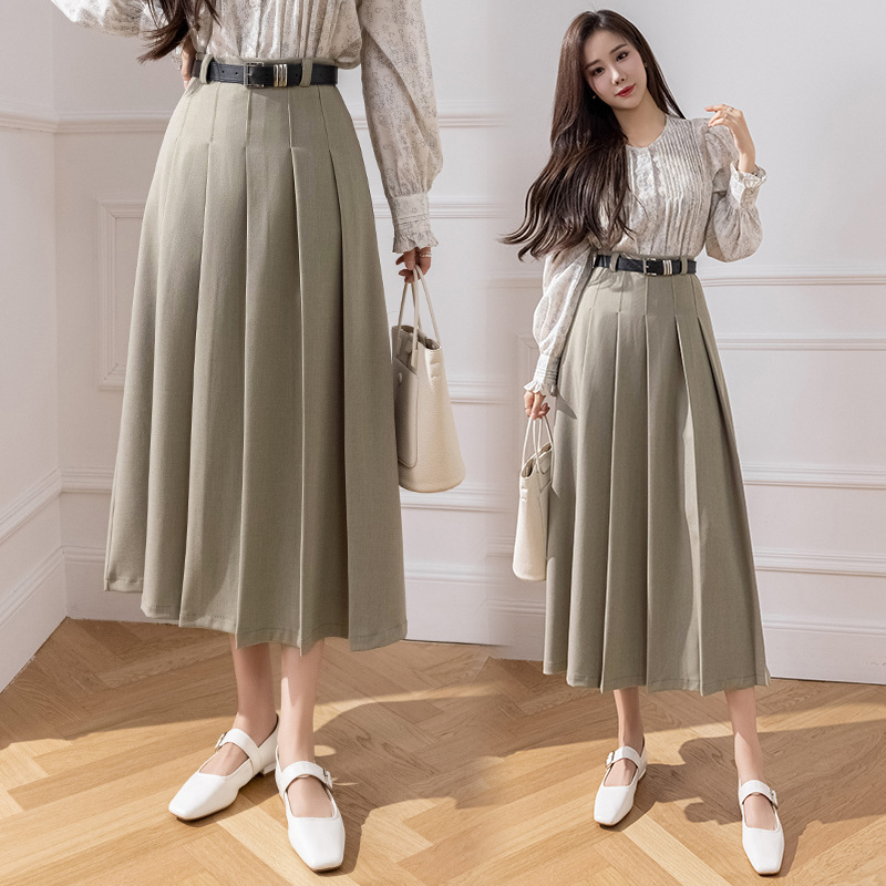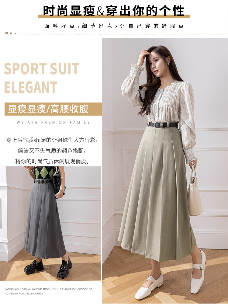 재고 큰 스윙 주름 엉덩이 덮기 캐주얼 세트 긴 스커트 봄과 여름 2025 새로운 높은 허리 중간 길이의 주름 치마