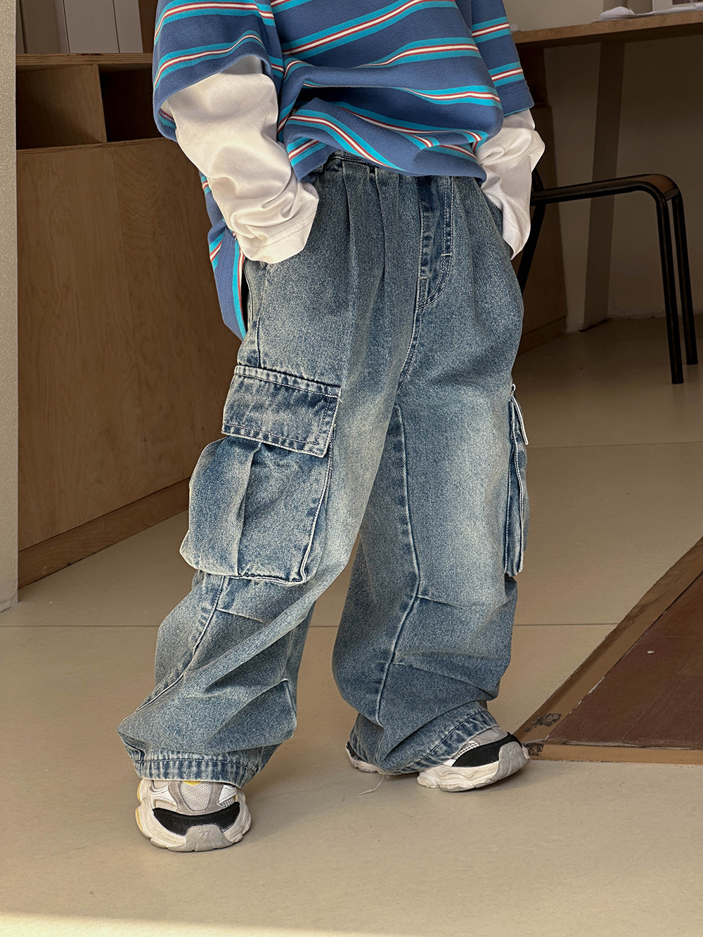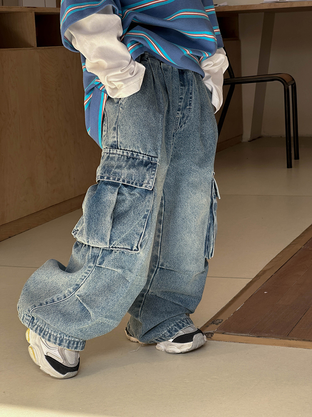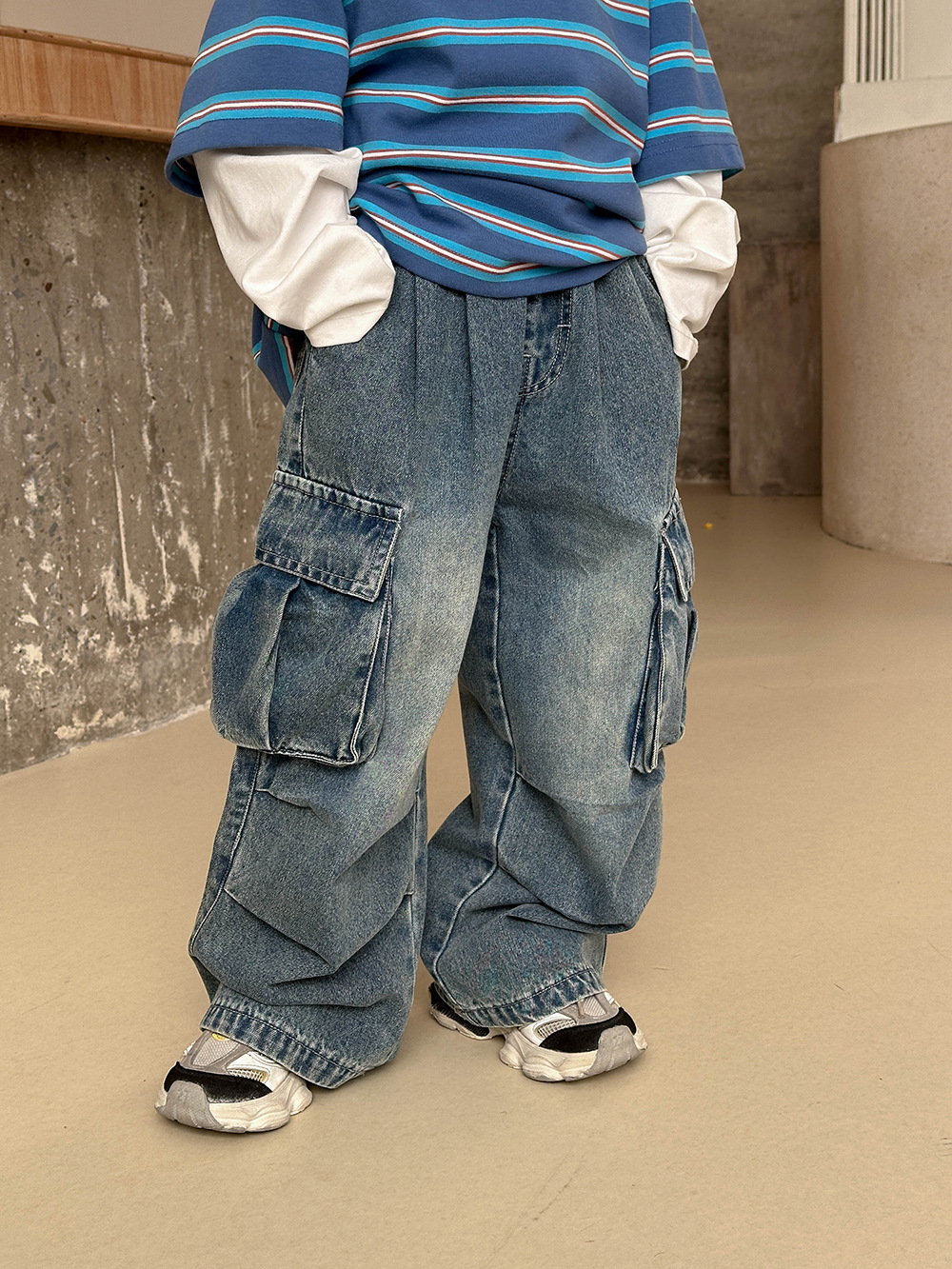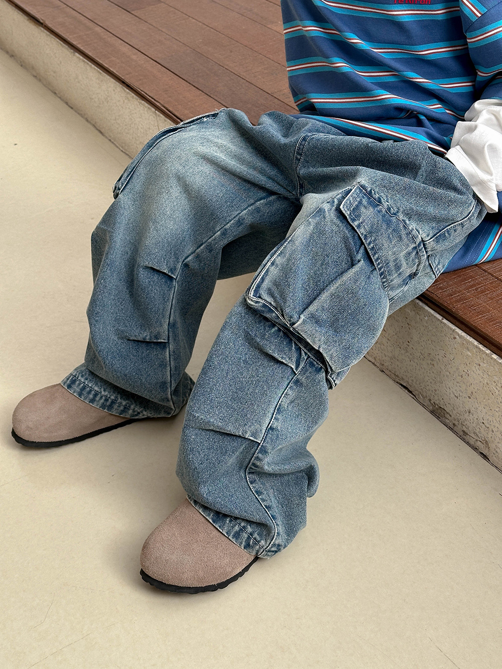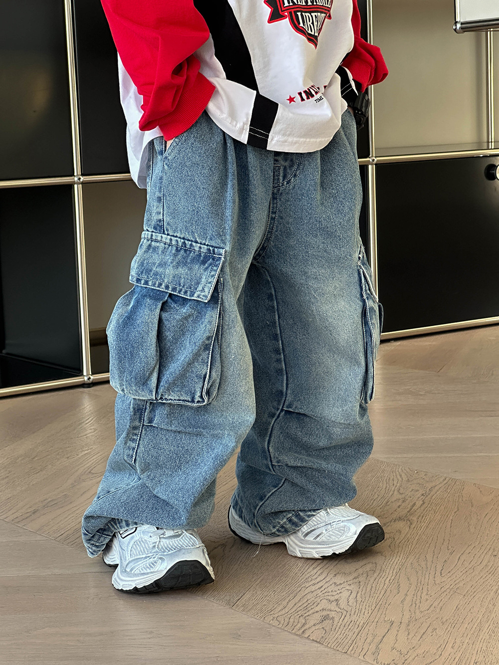 소년 봄옷 청바지 레트로 어린이 2025 새로운 패션 브랜드 프라이드 스트리트 크라우드 수트 바지 어린이 봄과 가을 스트레이트 바지스토어 가기