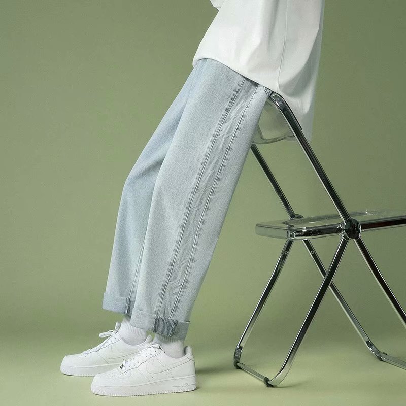 봄과 가을 청바지 남성 스트레이트 루즈 레트로 패션 웨스턴 스타일 2021 새로운 하이 웨이스트 스키니 바지스토어 가기