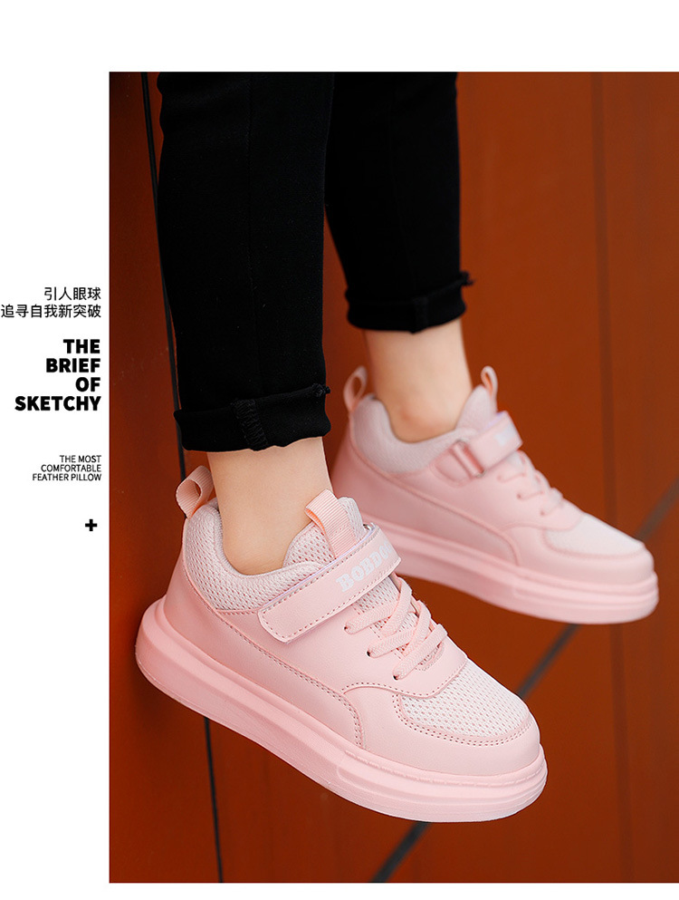 Babu Bean 여성 신발 봄과 가을 새로운 메쉬 통기성 어린이 운동화 가죽 학교 흰색 신발 소년 운동화