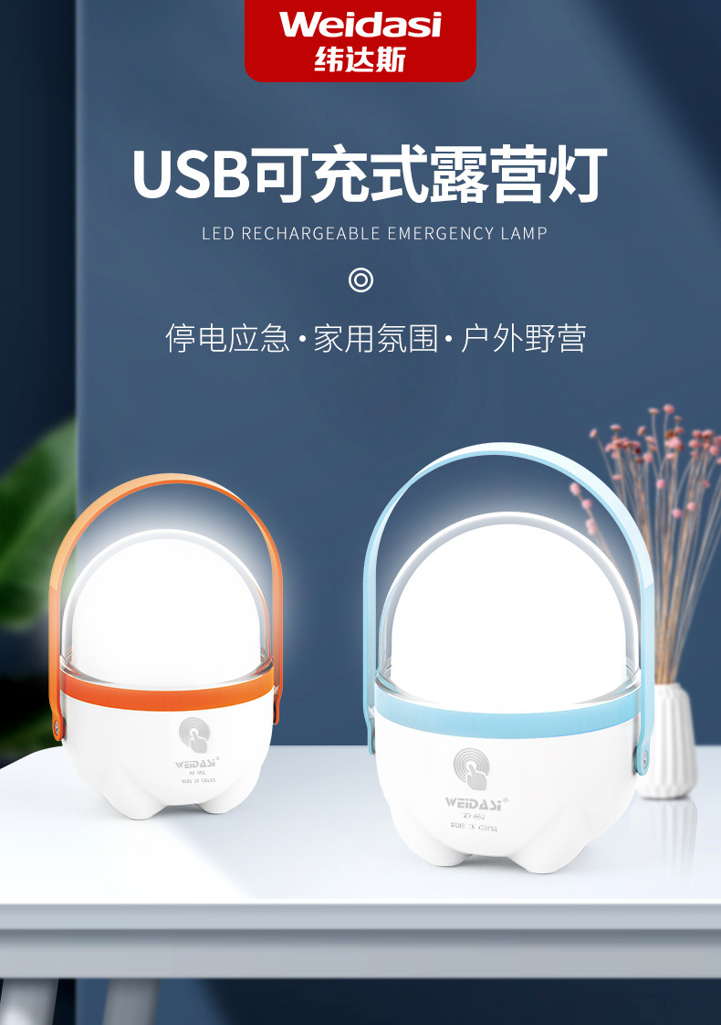 전원 오프 보물 USB 충전 야외 캠핑 LED 랜턴 장비 조명 캠핑 휴대용 비상 조명 WD-861 국경스토어 가기