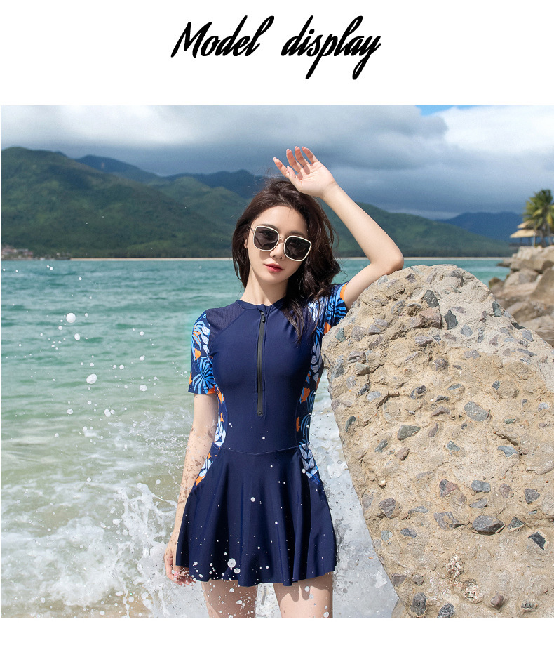 공장 직판 여성 수영복 빅사이즈 원피스 스커트형 배 가리기 슬림 효과 온천용 보수적 스포츠 수영복스토어 가기