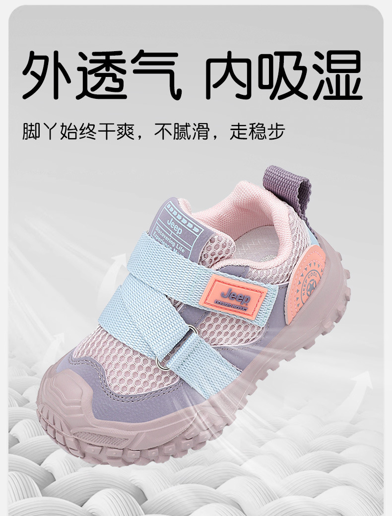 지프 벨크로 2025 새로운 어린이 아기 신발 킥 방지 소년의 통기성 운동화 봄 경량 여성 신발
