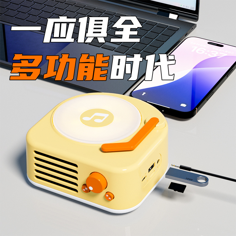 H8 빈티지 빈티지 블랙 접착제 라이트 레코드 플레이어 블루투스 스피커 미니 귀여운 작은 오디오 선물 소년 소녀