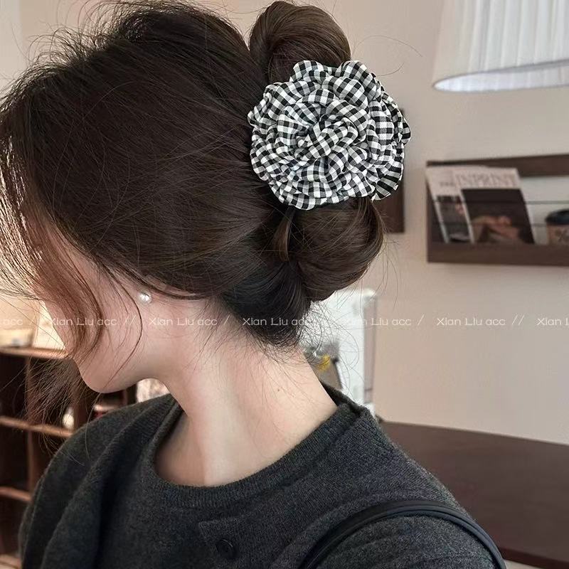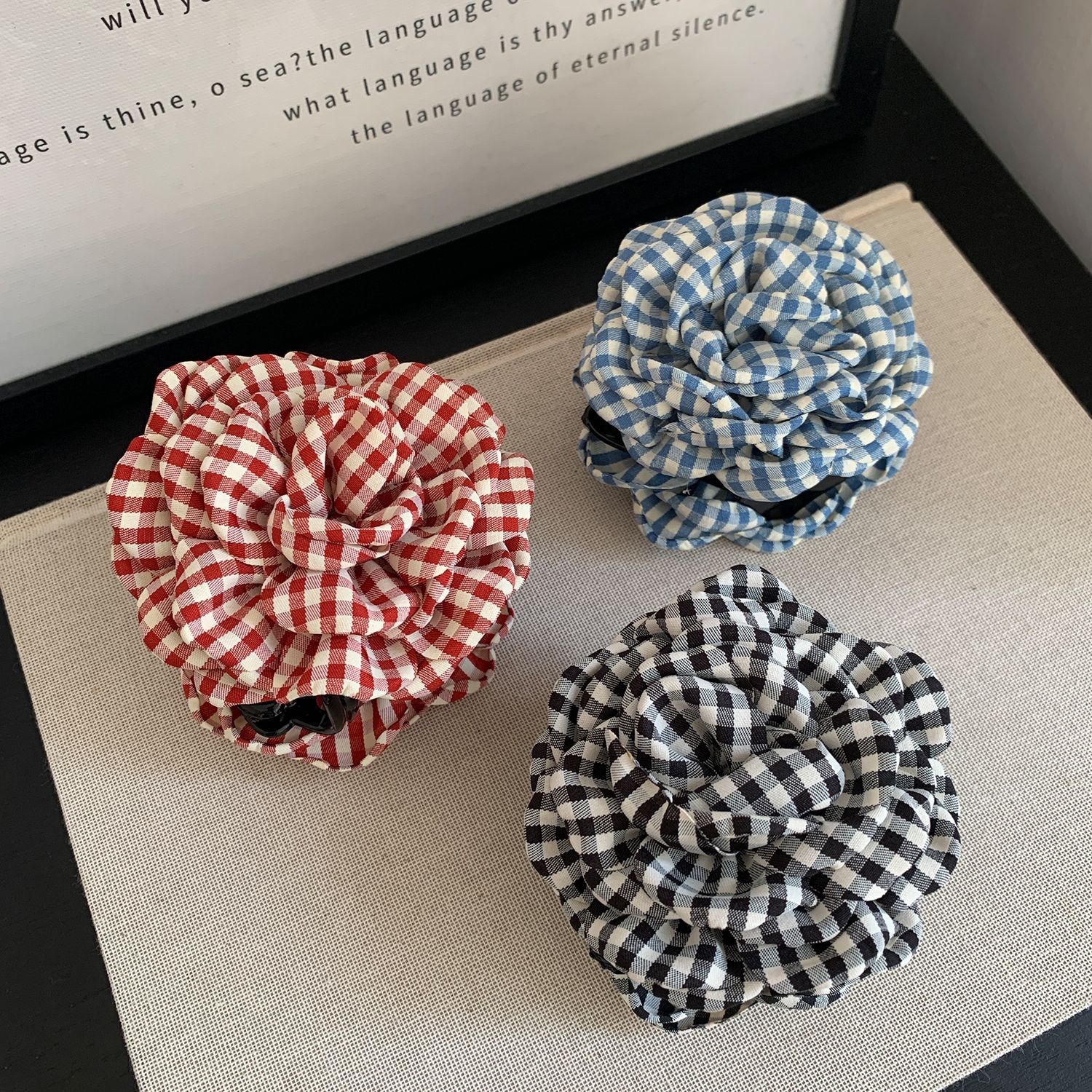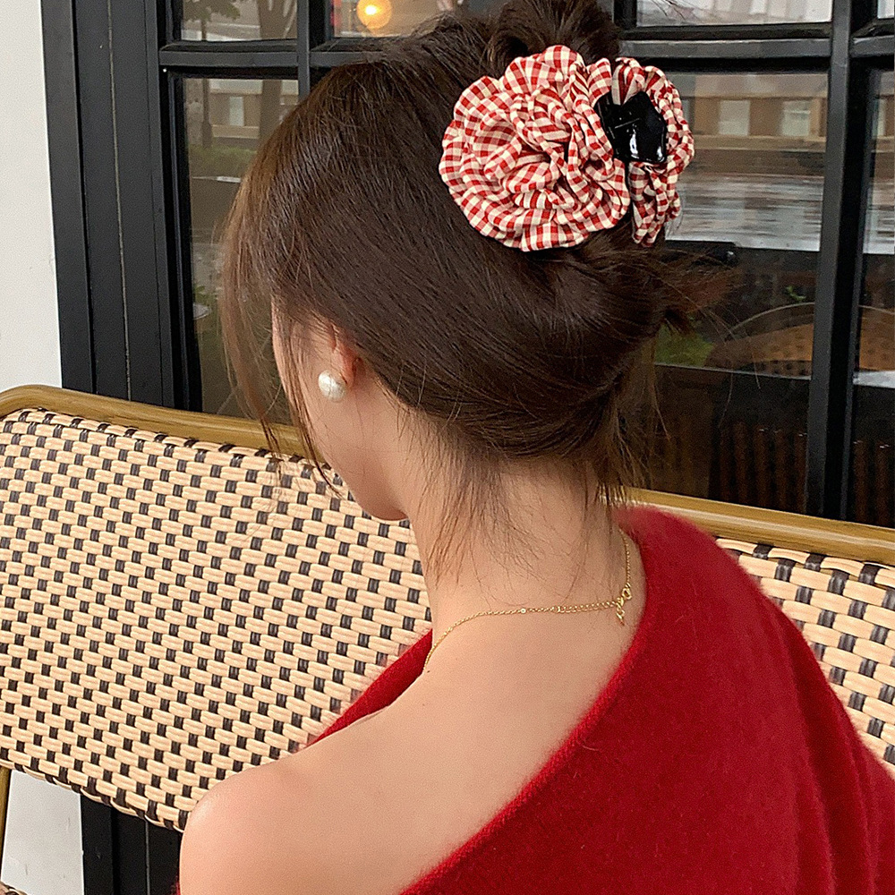 Houndstooth Floral Full Hairpin 여성의 새로운 하이 엔드 헤드 클립 우아한 올 매치 상어 클립 헤어 액세서리스토어 가기