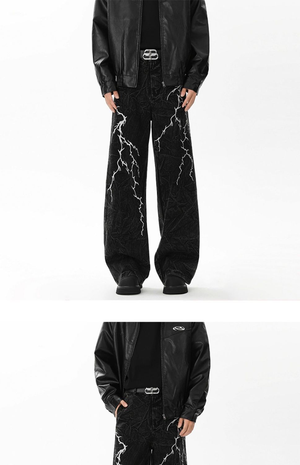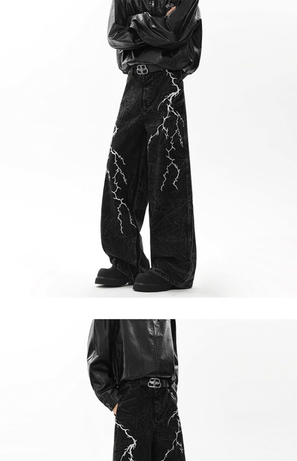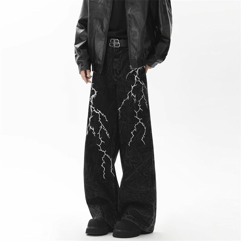 틈새 번개 자수 넓은 다리 청바지 남성 봄과 가을 미국 스타일 거리 느슨한 캐주얼 디자인 워시 바지