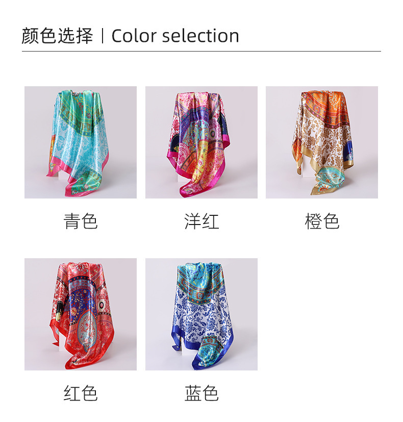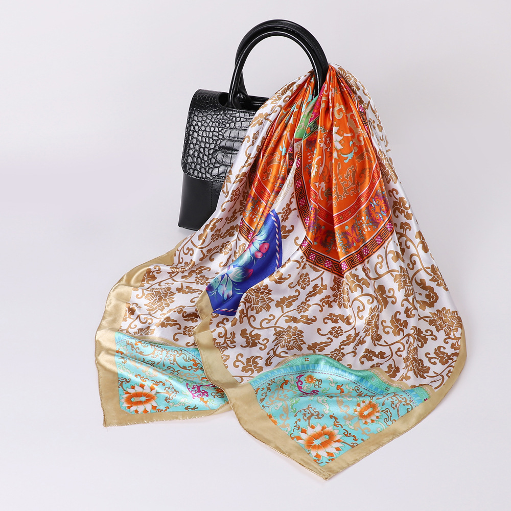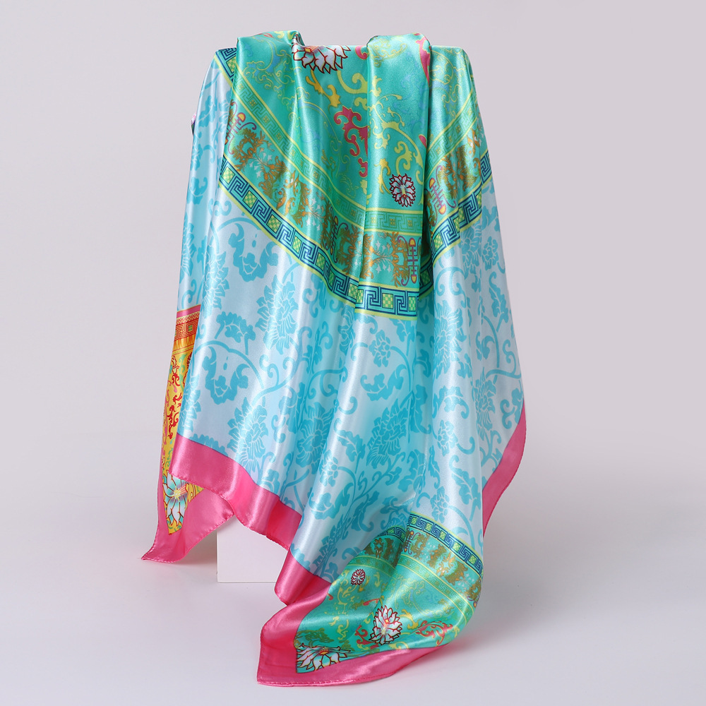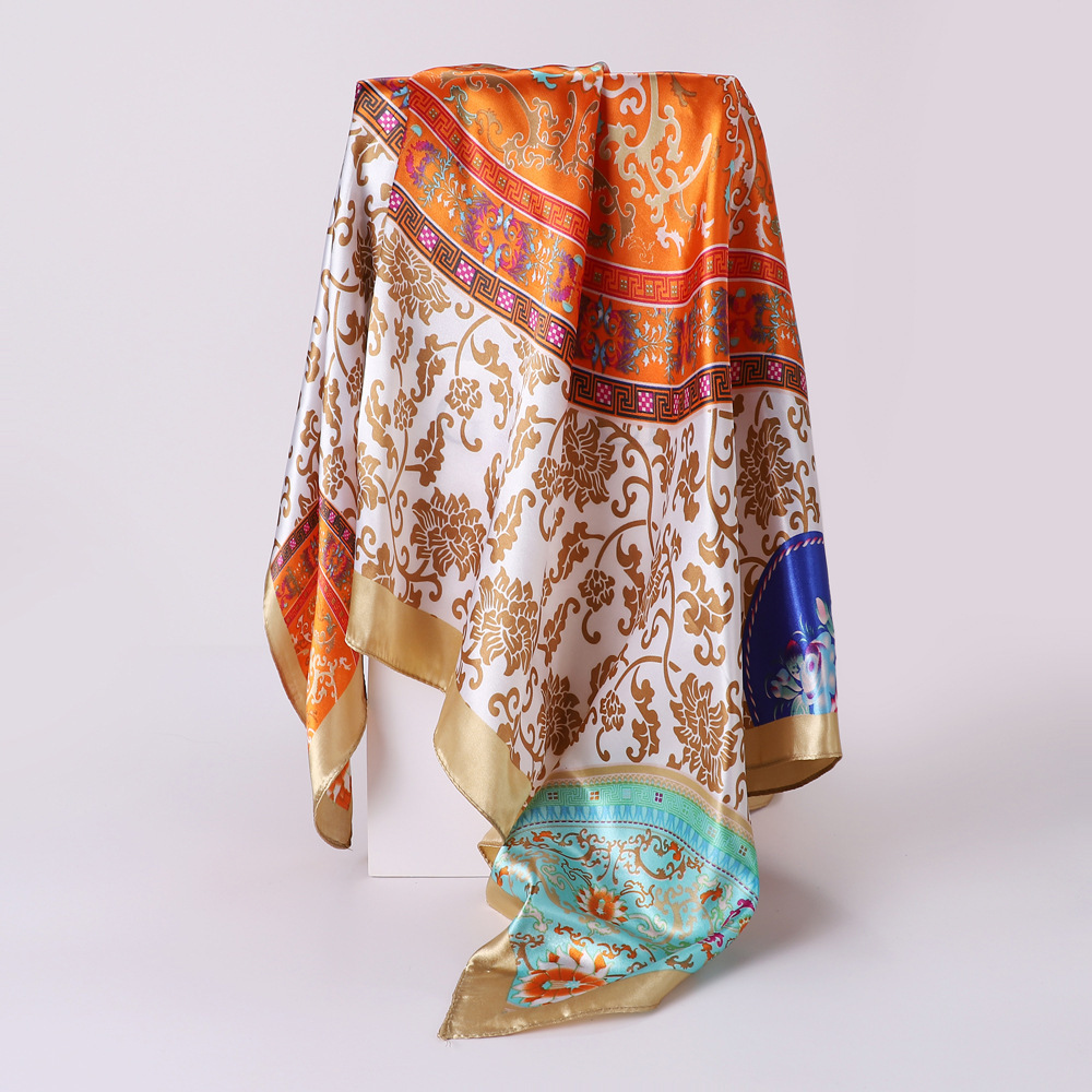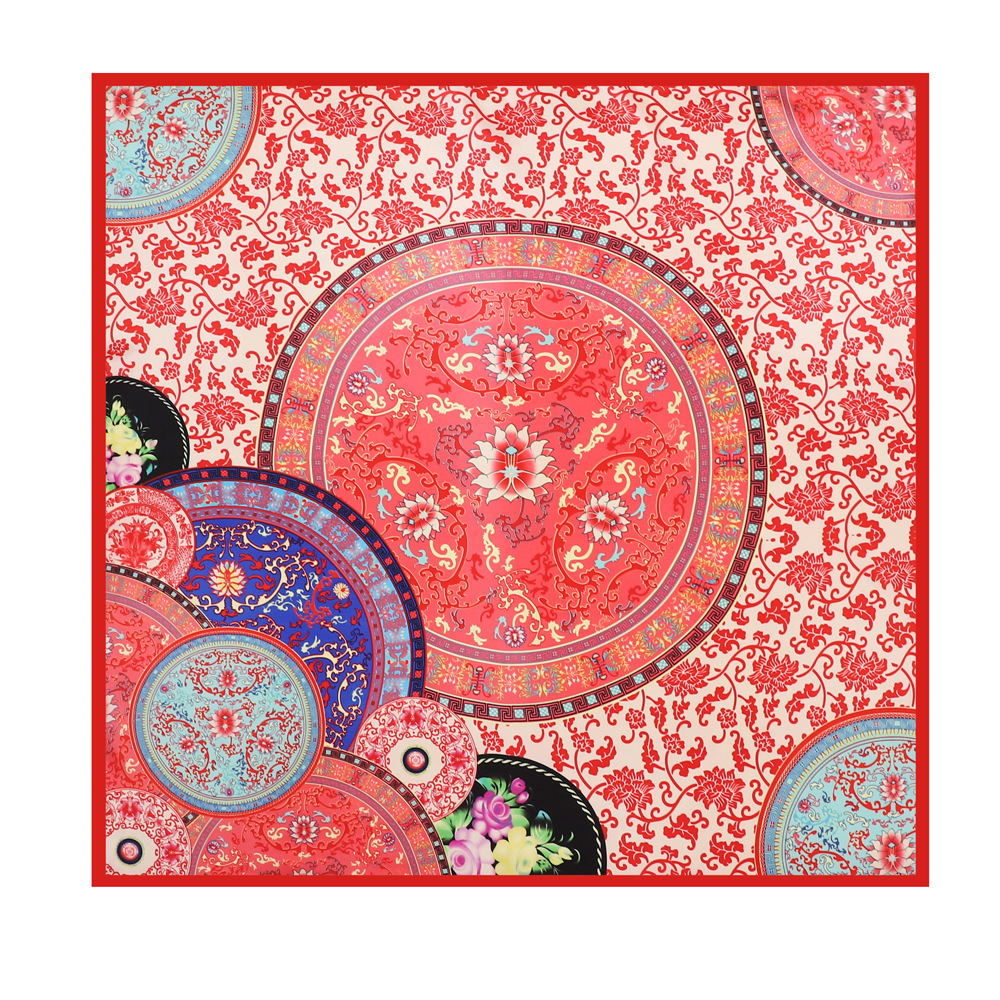 국가 의식 파란색과 흰색 도자기 스카프 여성의 인쇄 고급 대형 광장 스카프 실크 염색 스카프 목도리 도매