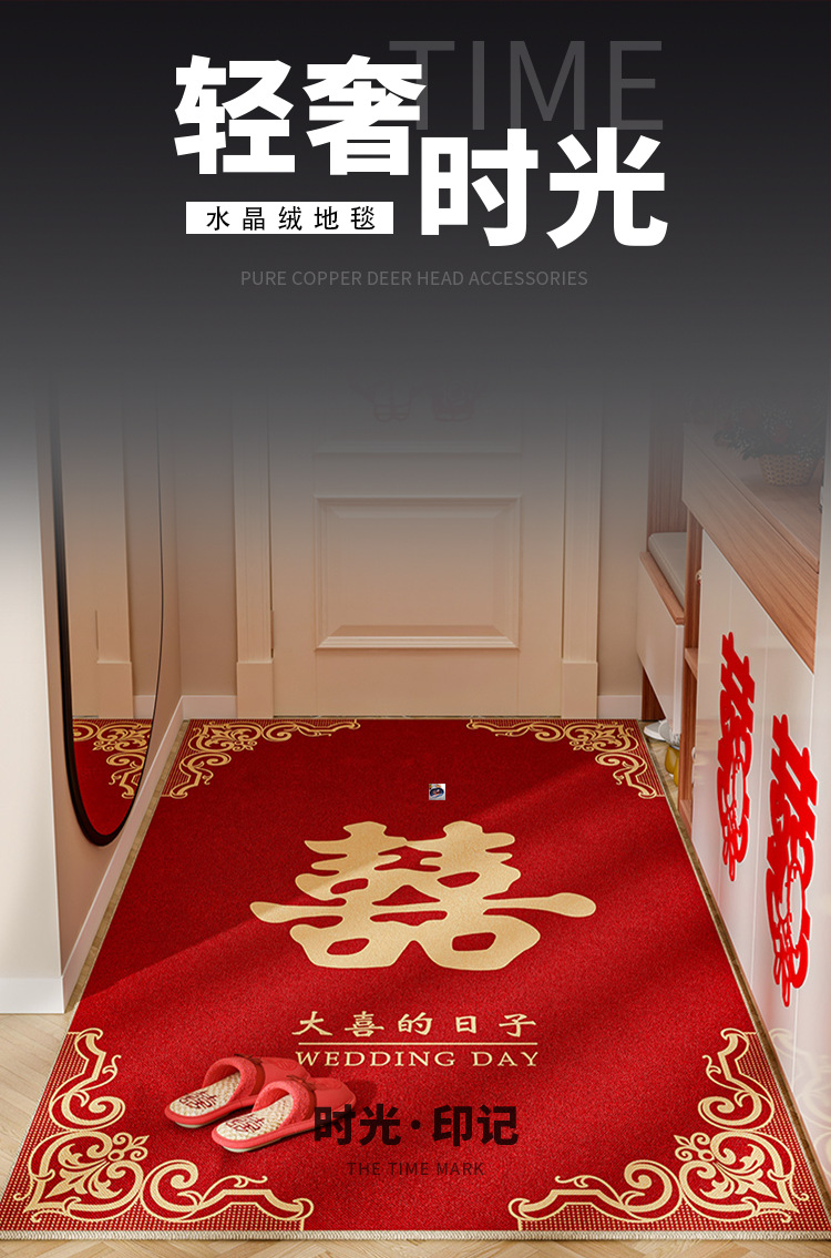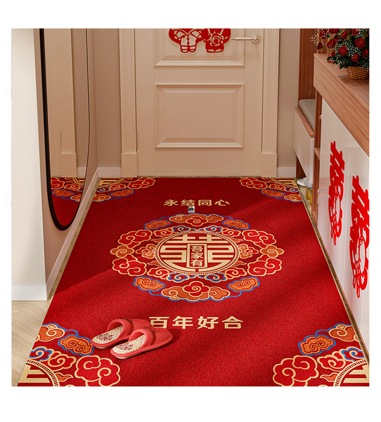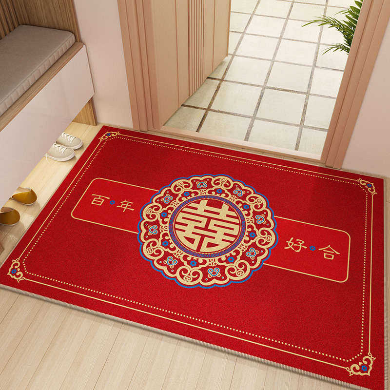 레드 웨딩 매트 크리스탈 벨벳 도어 매트 먼지 방지 및 좋은 관리 발 매트 홈 축제 입구 문 매트