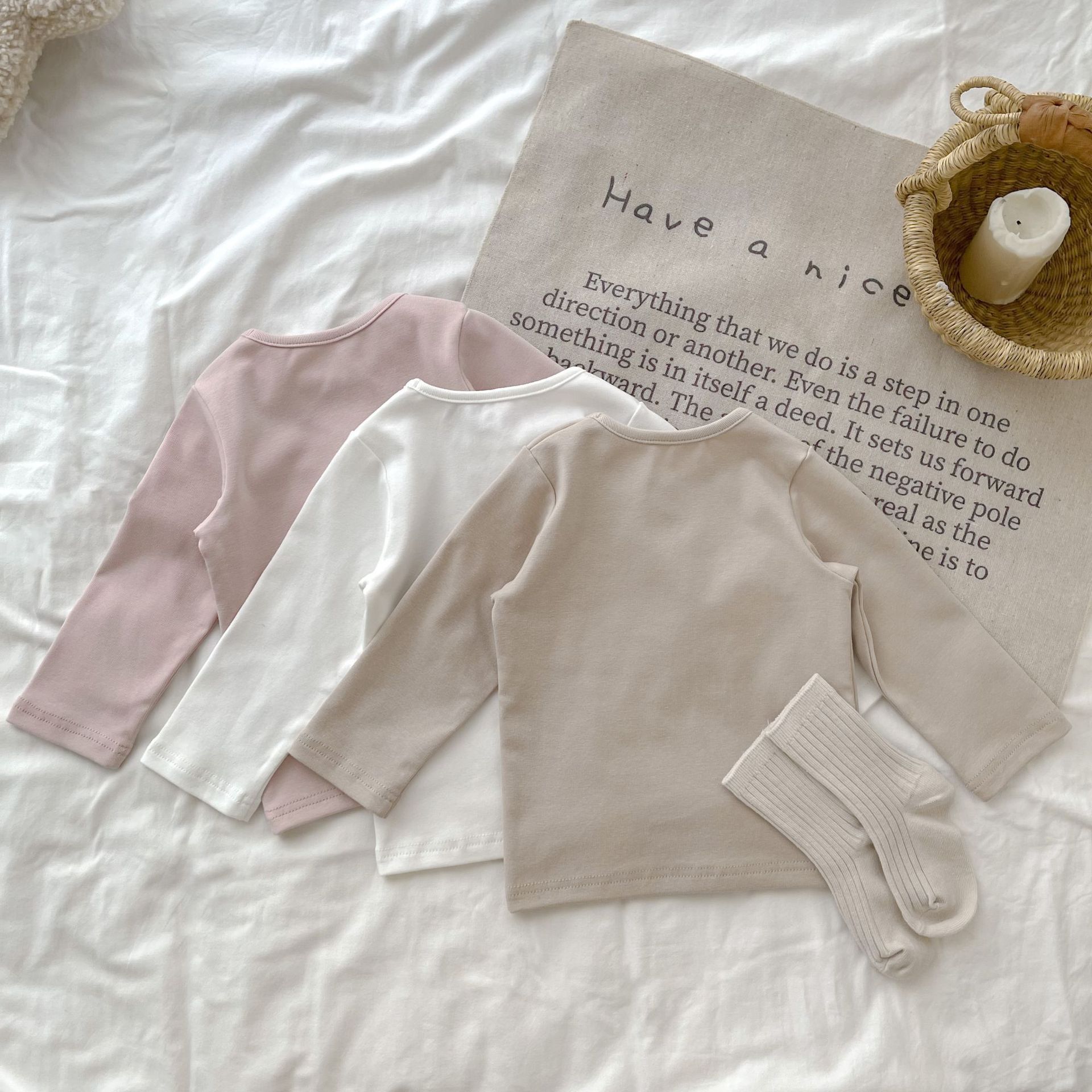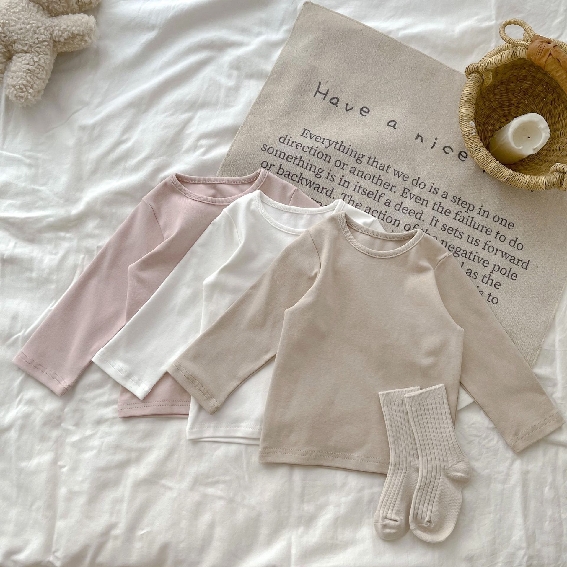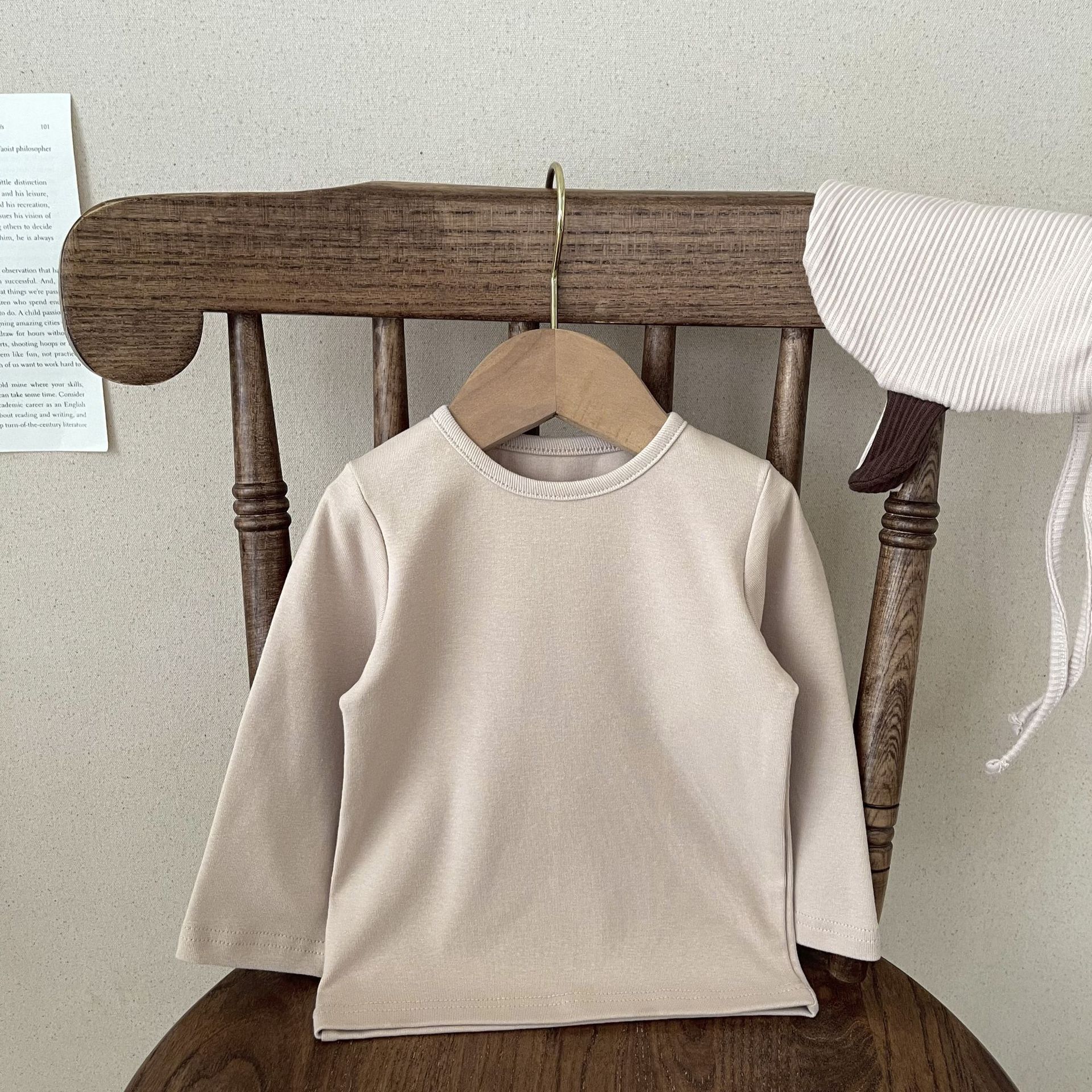 25 봄 새 어린이 긴팔베이스 셔츠 인스 타 그램 어린이 둥근 목 티셔츠 봄과 가을 두꺼운 긴베이스 셔츠스토어 가기