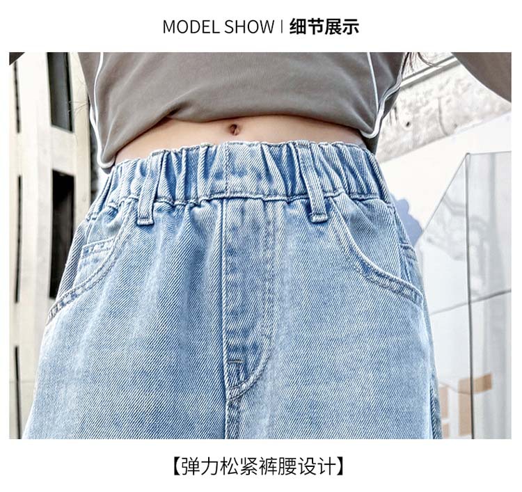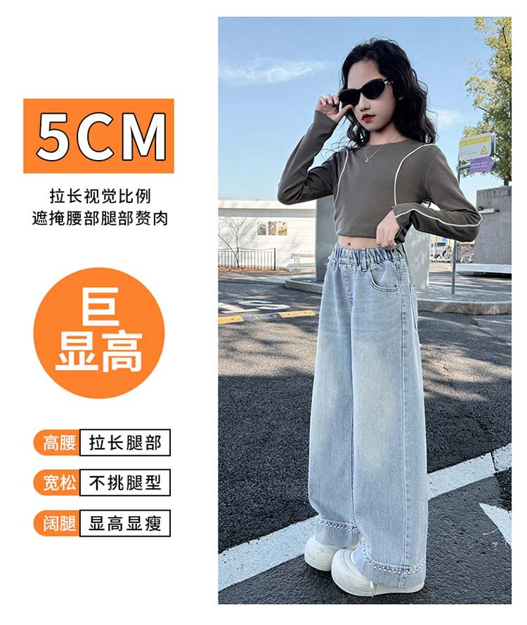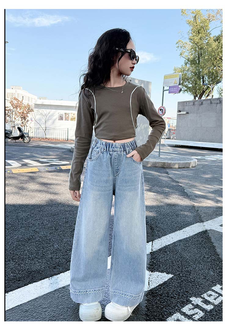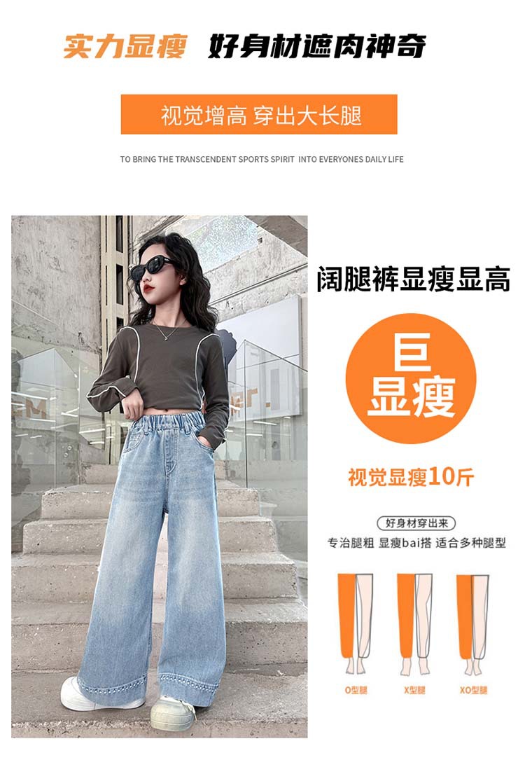 대외 무역 어린이 바지 2025 새로운 봄 소녀 청바지 간단한 조커 자수 넓은 다리 바지 느슨한 바지 도매스토어 가기