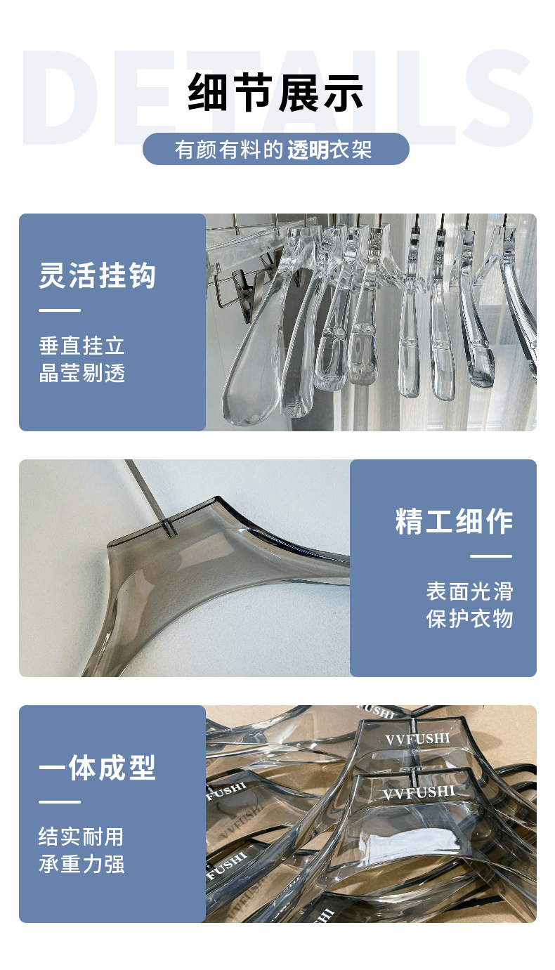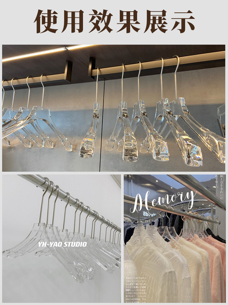 아크릴 크리스탈 투명 옷걸이 의류 매장 특수 의류 지원 남성과 여성의 원활한 플라스틱 의류 클립 도매 의류 교수형스토어 가기