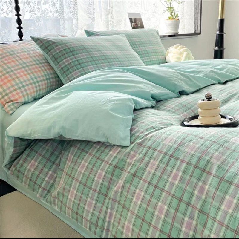 면 세척 코튼 퀼트 커버 단일 조각 100 면 격자 무늬 싱글 및 더블 퀼트 커버 기숙사 150x200x230스토어 가기