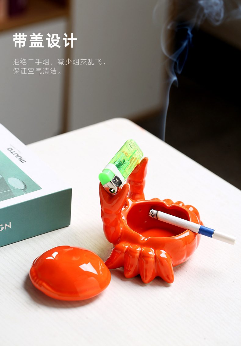 게 세라믹 재떨이 작은 차 애완 동물 사무실 홈 거실 뚜껑 안티 플라이 애쉬 중국 스타일 귀여운 장식