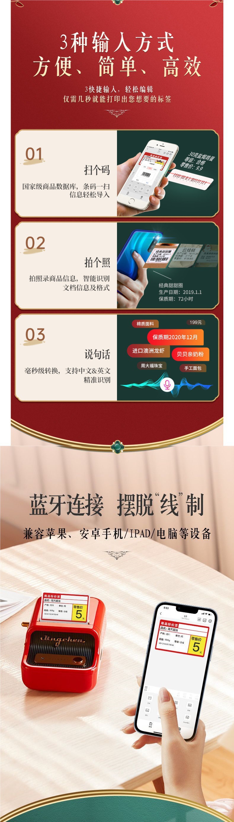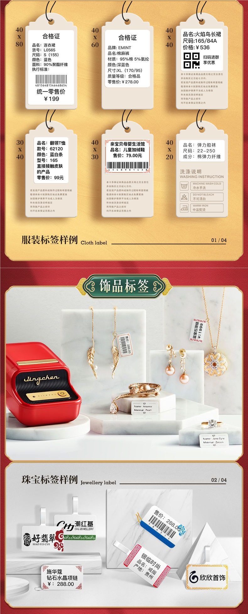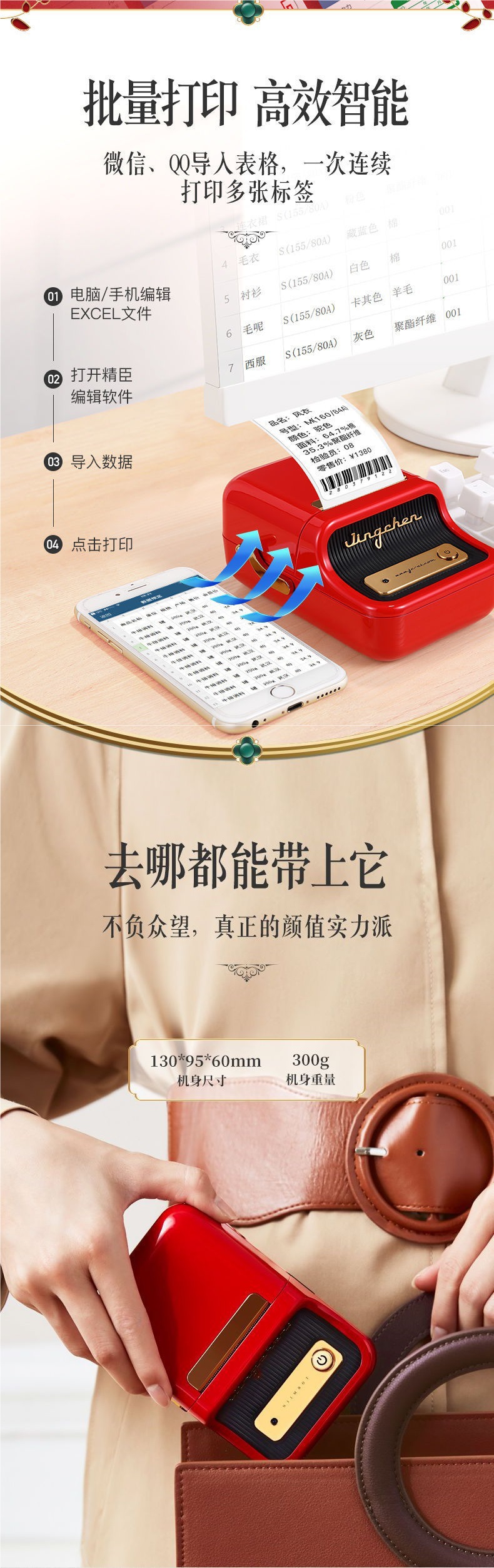 공장 직접 Jingchen 21 열 블루투스 핸드 헬드 라벨 프린터 식품 의류 보석 바코드 슈퍼마켓 가격